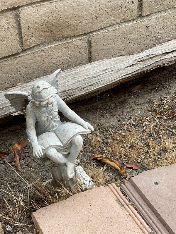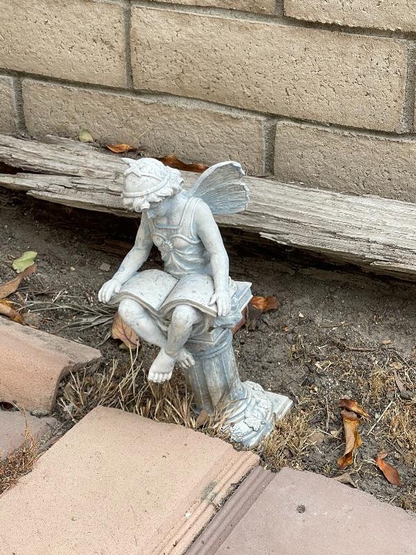 Garden art statue, fairy reading a book
