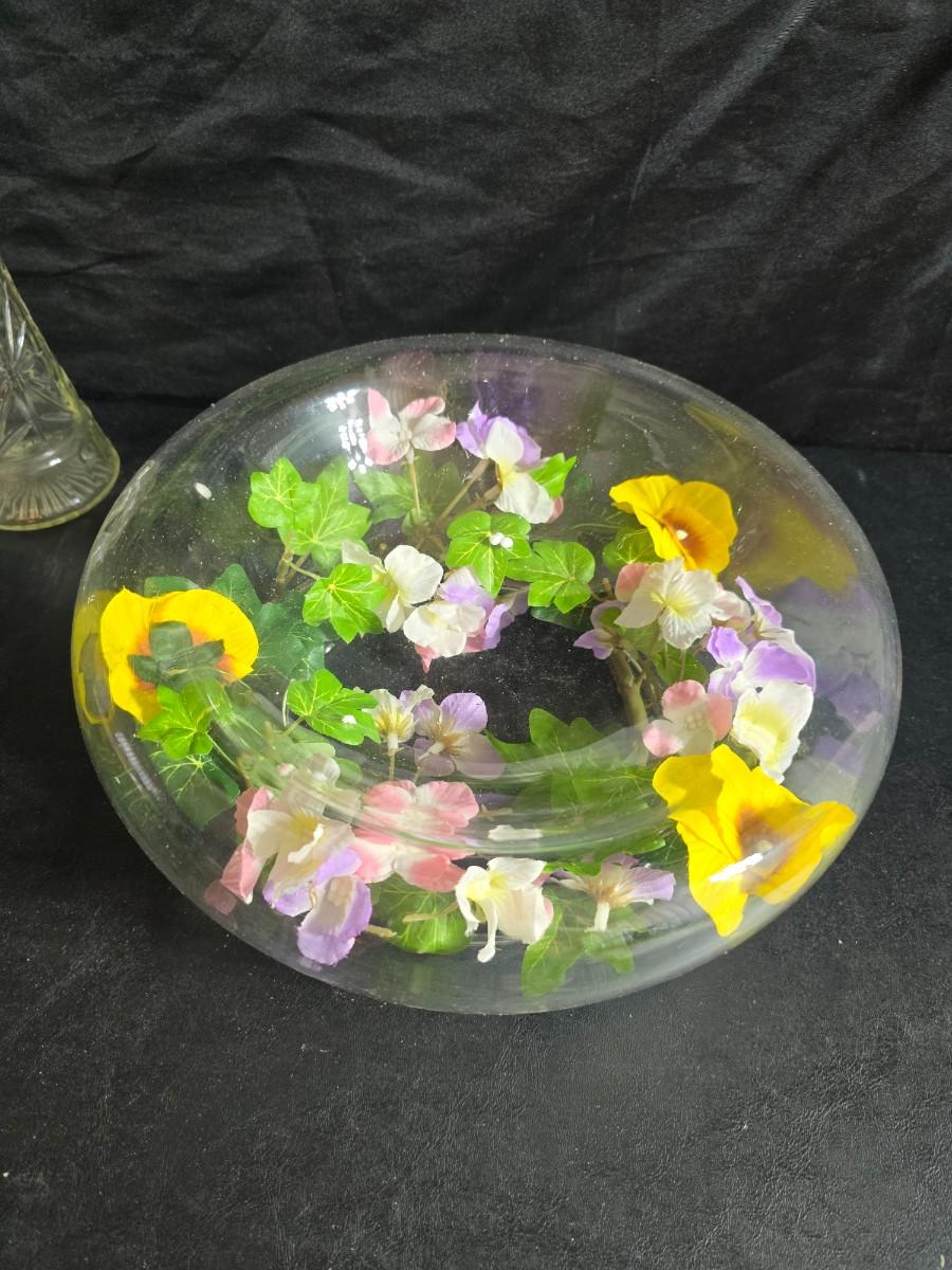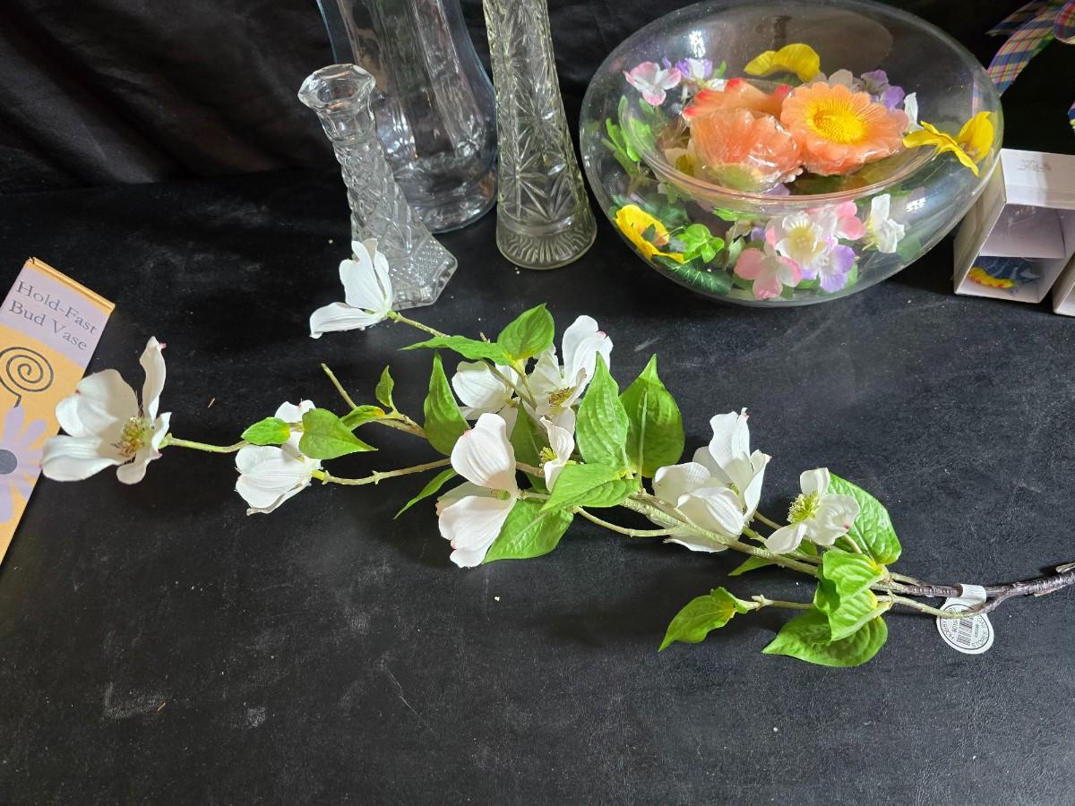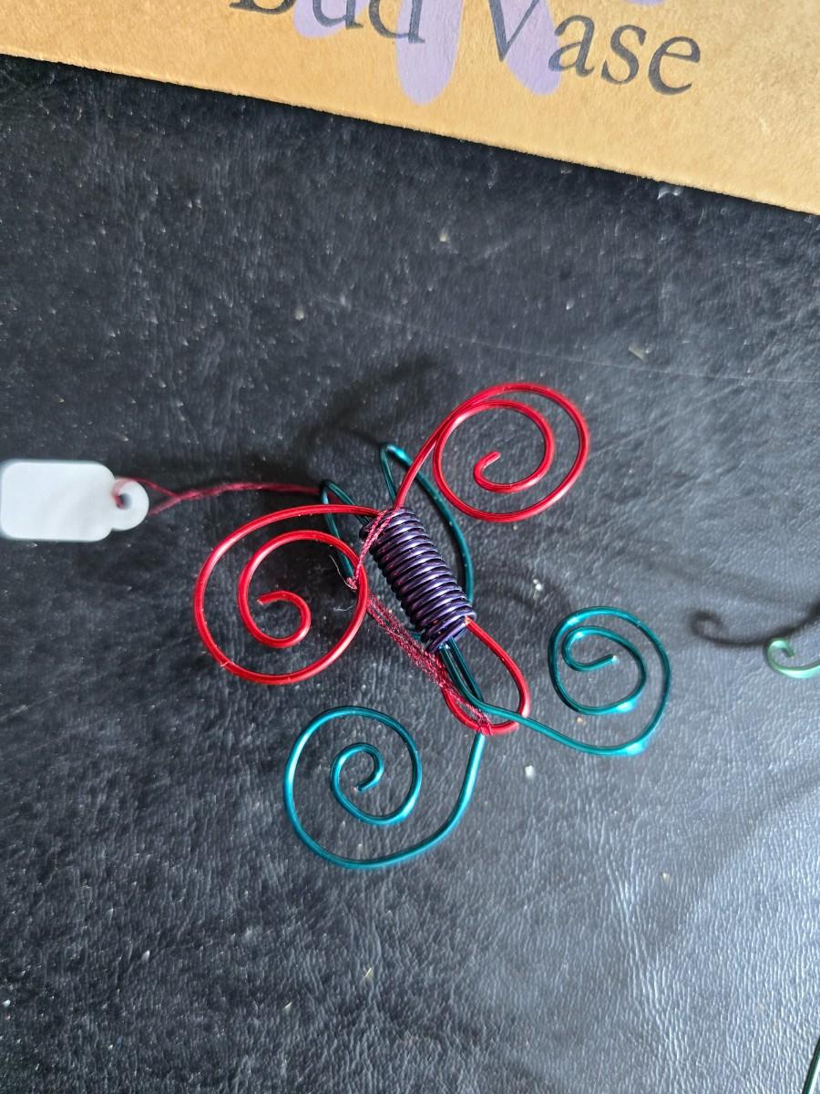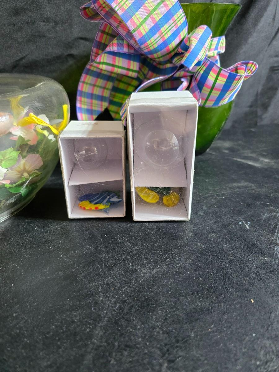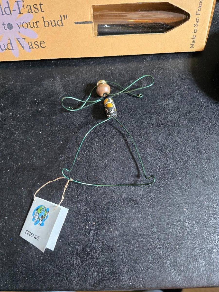 Garden decor - Hanging clothesline bag with new pins - Sunflower wind chime - floating fish - vases and more