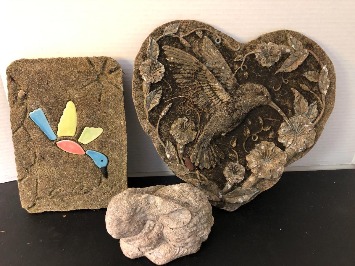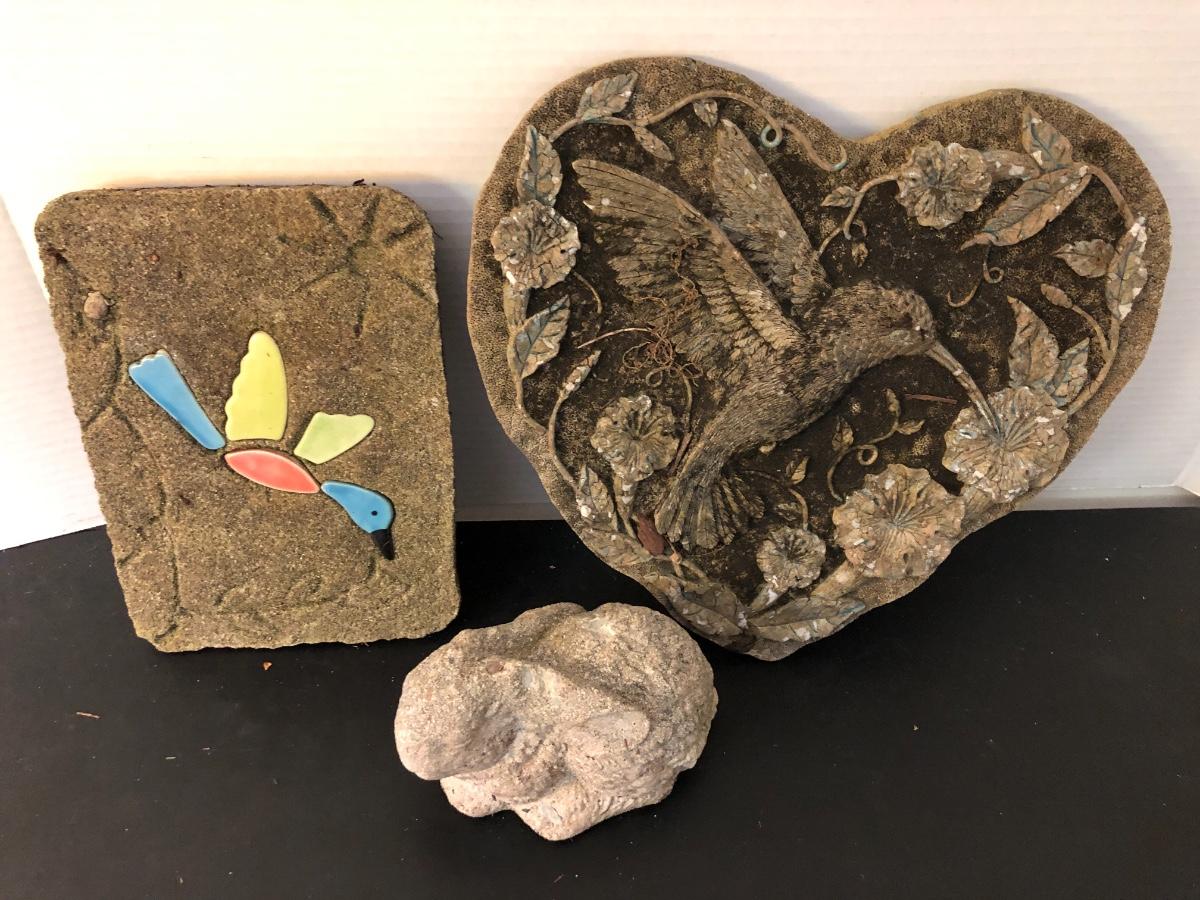 Garden Decor; Two Concrete, Heart is Resin -Lot 295