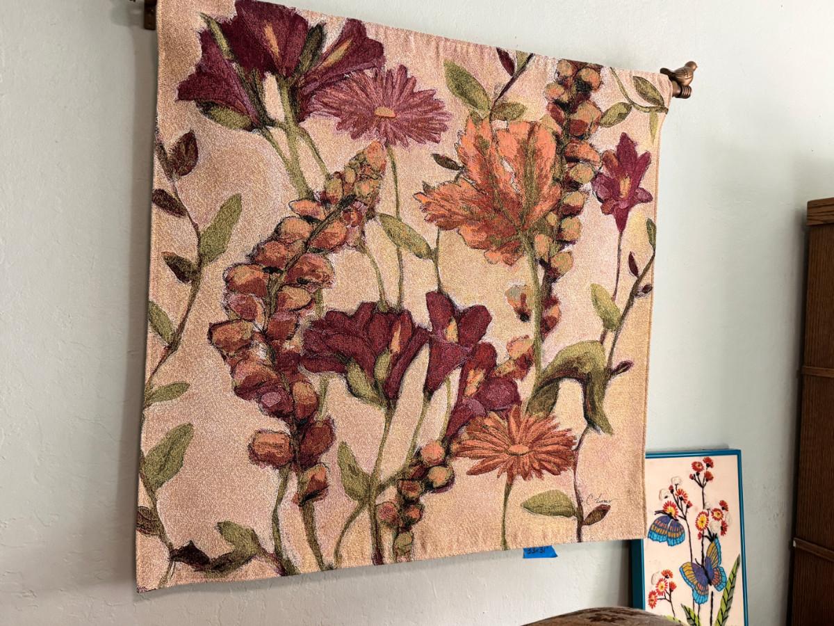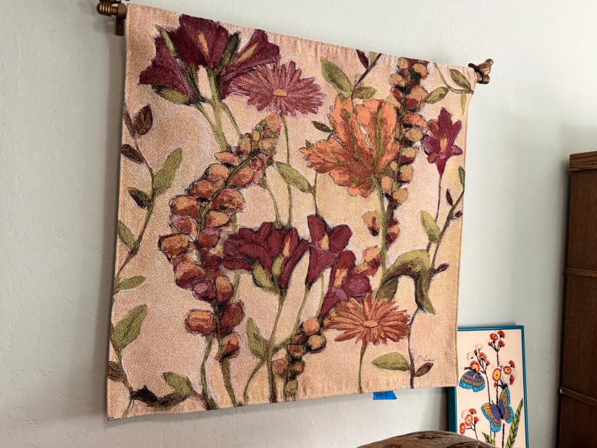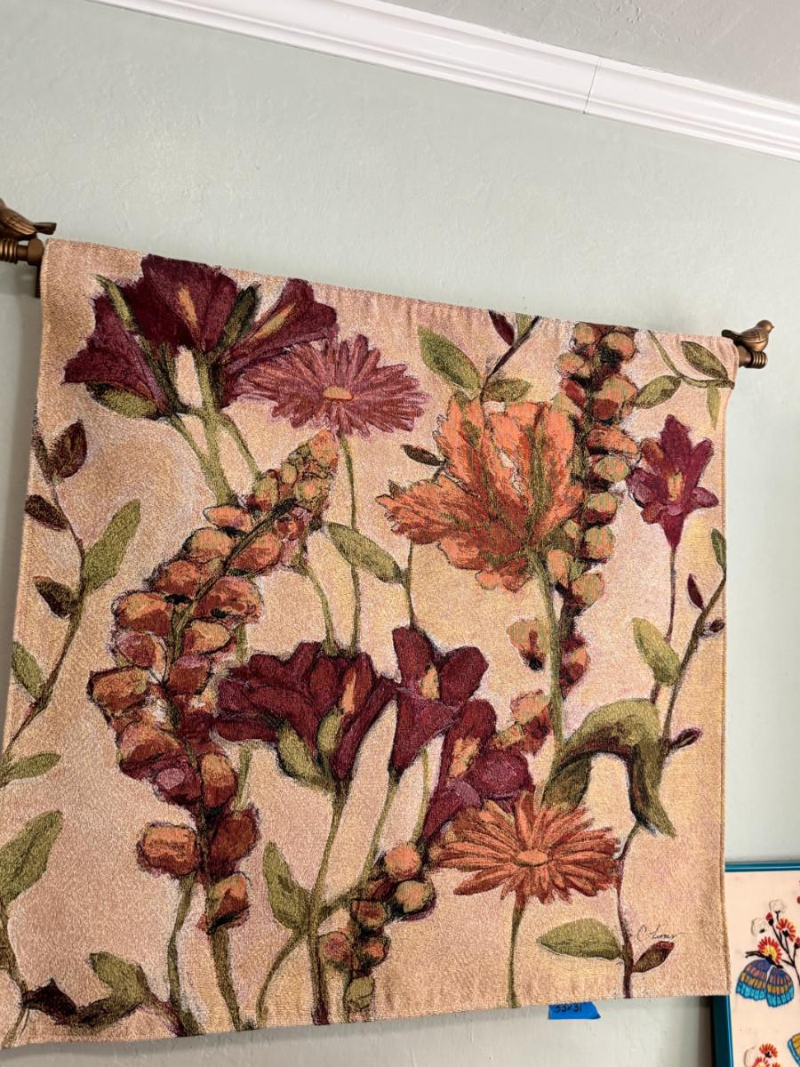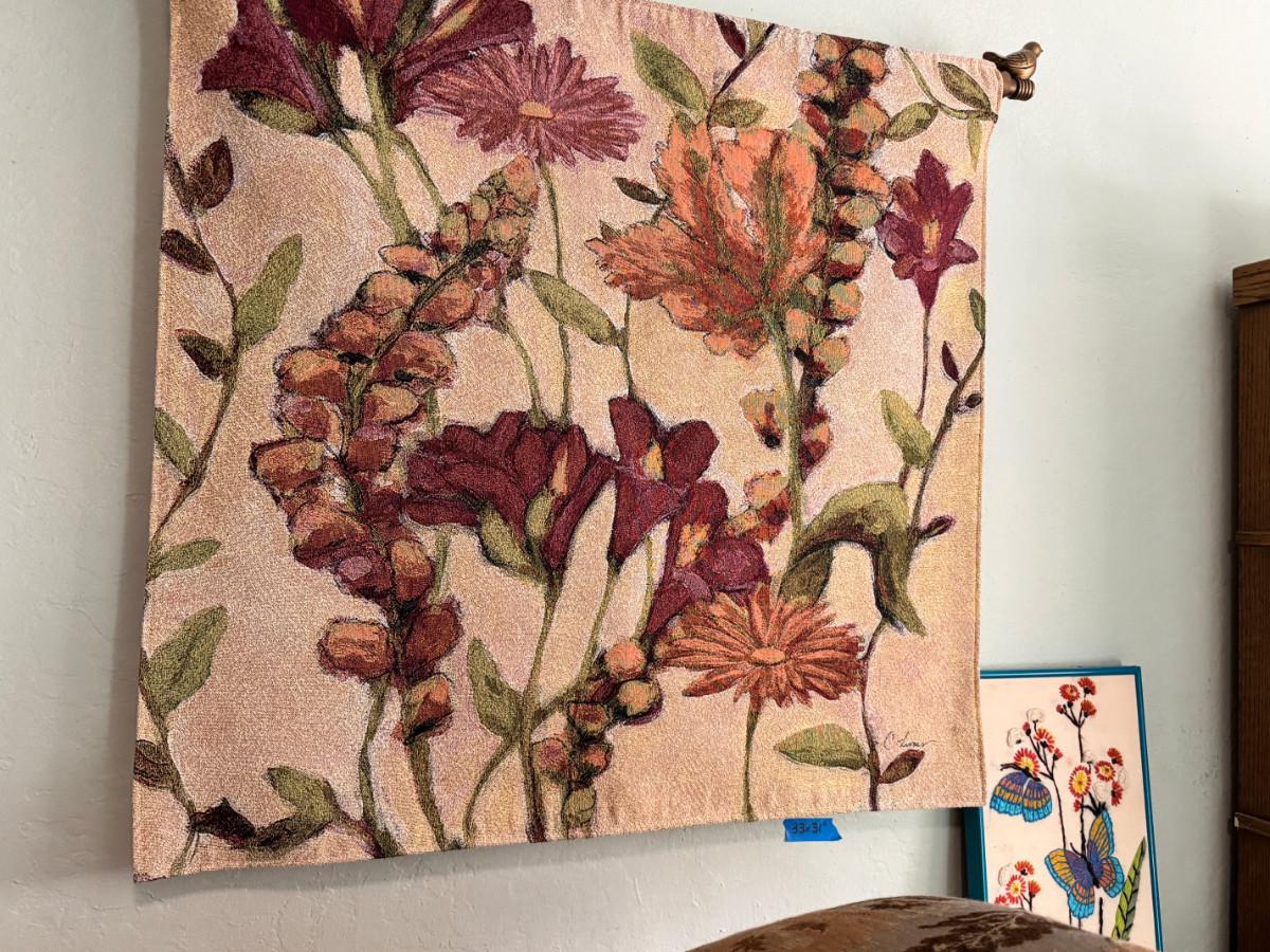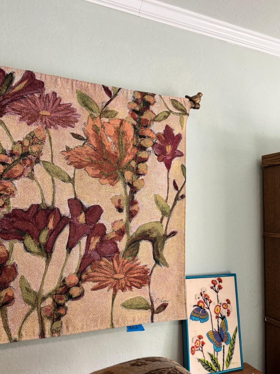 Garden Flowers Wall Tapestry with rod and Butterfly needlepoint
