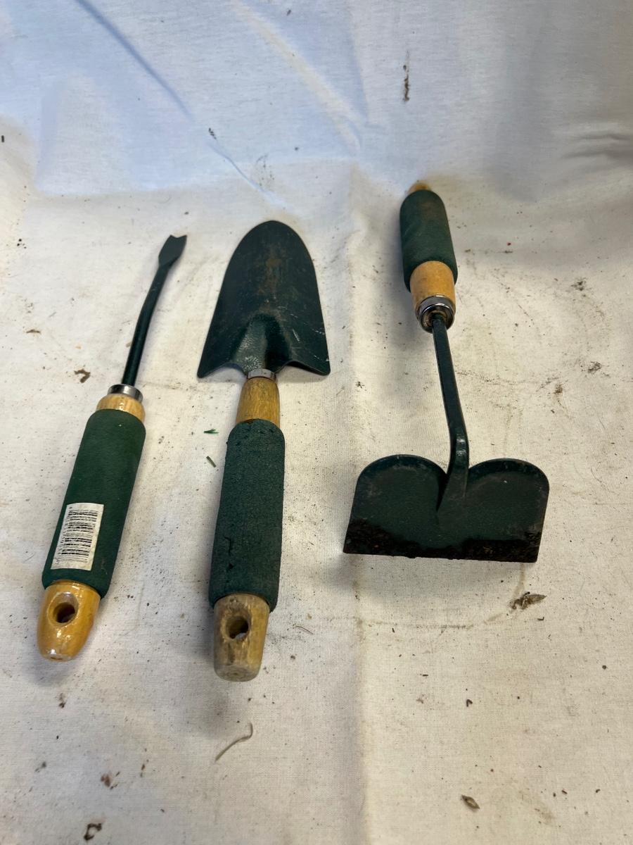 Set of 3 garden hand tools, heavy with little rust