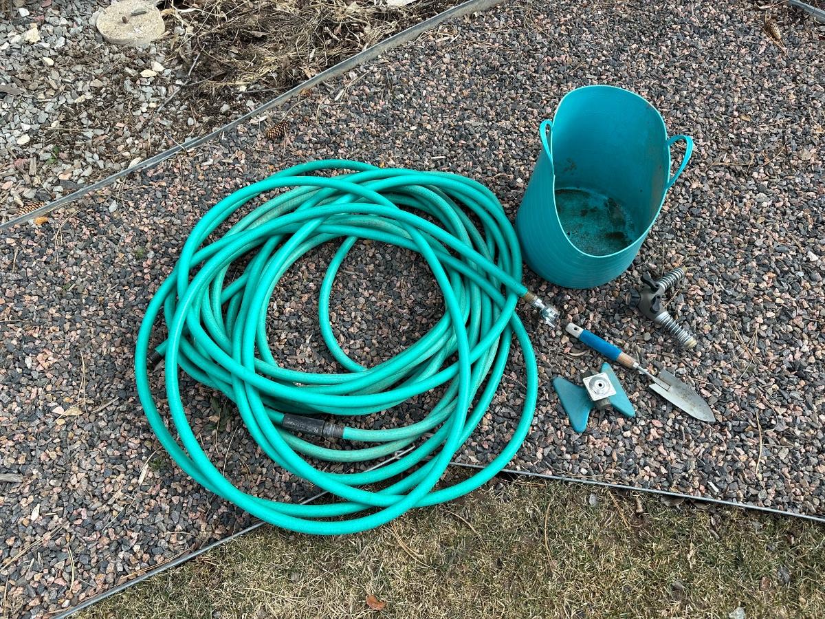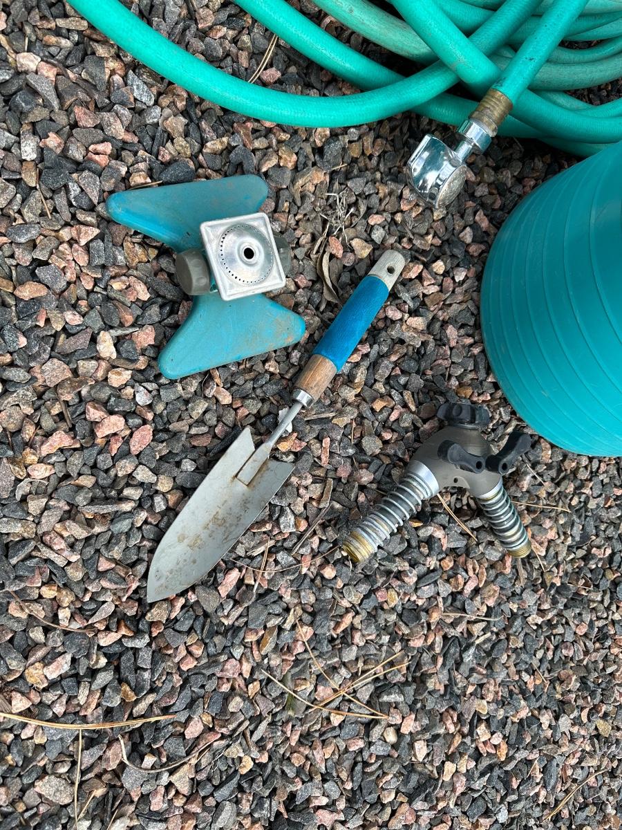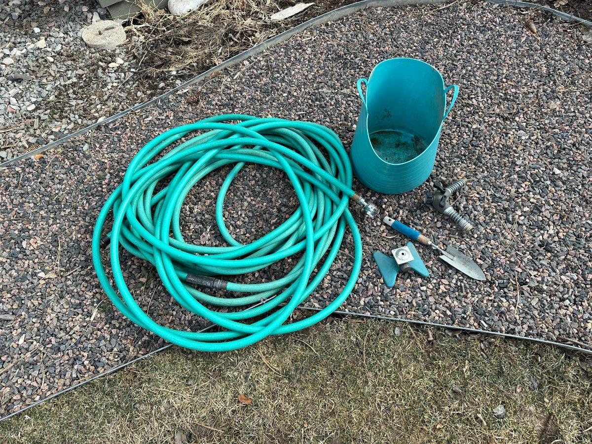 GARDEN HOSE, SPRINKLER AND GARDENING TOOLS