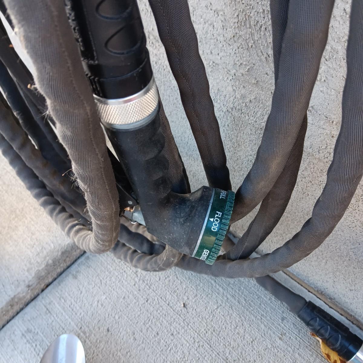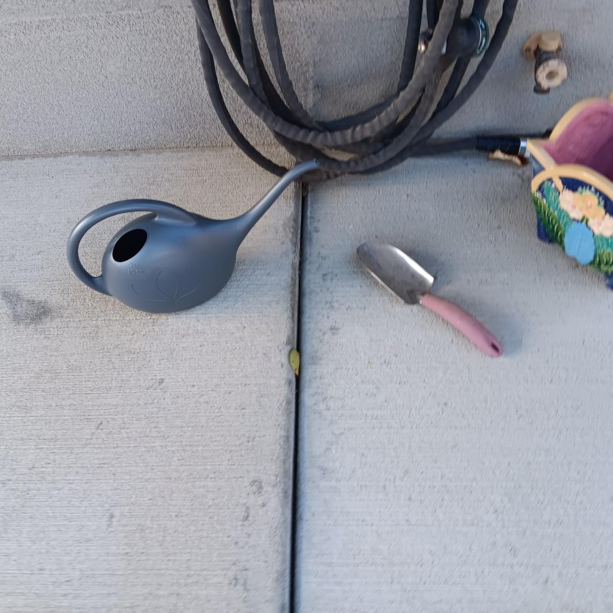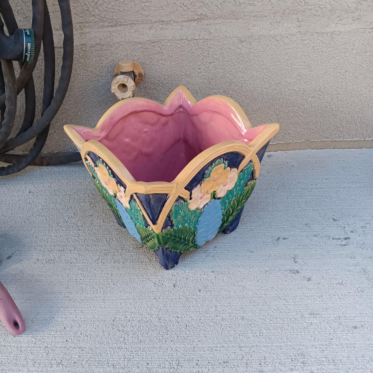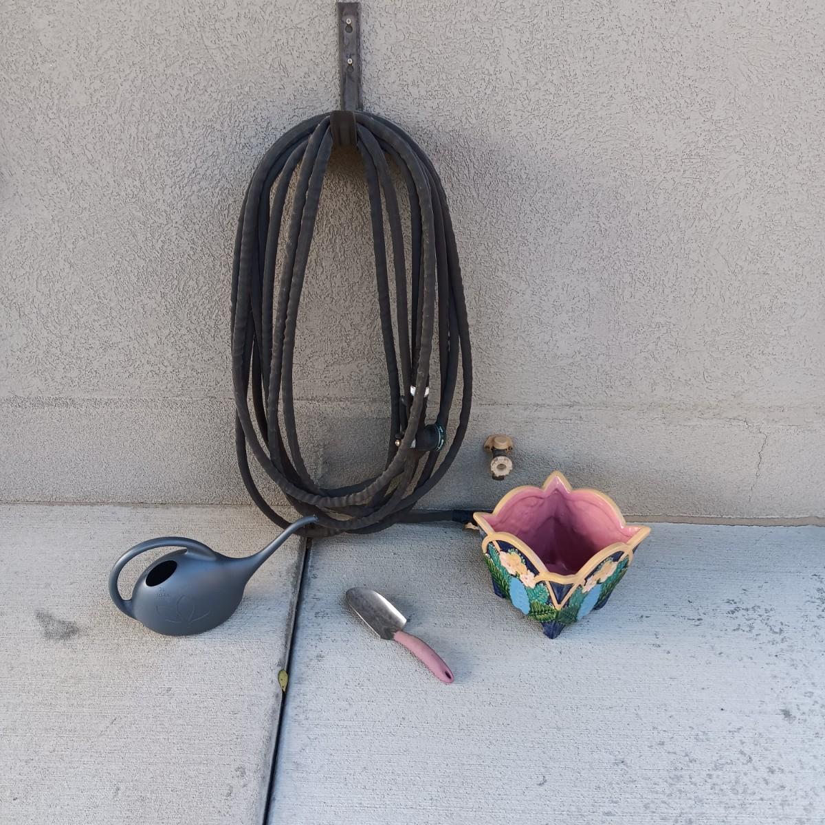 GARDEN HOSE W/SPRAYER, NICE CERAMIC FLOWER POT AND MORE