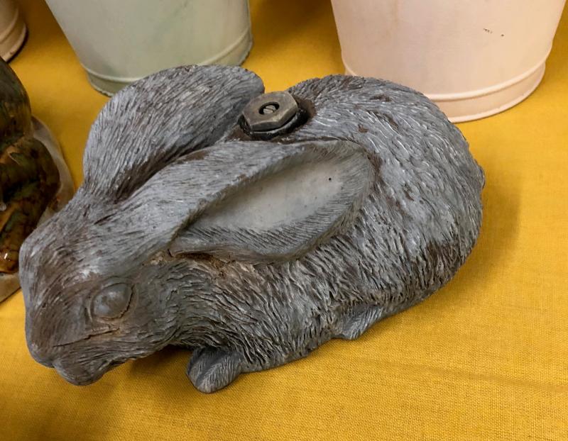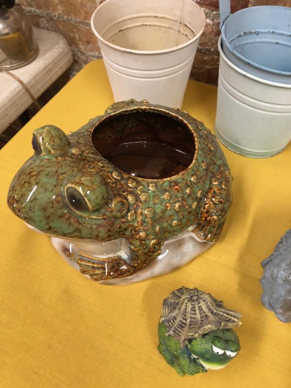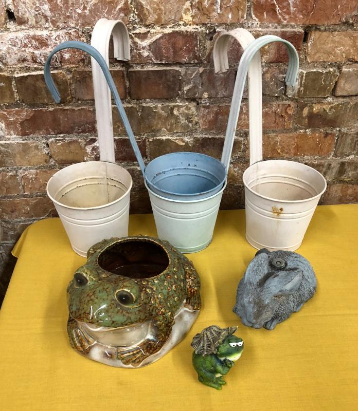 Planters...Frog planter and Bunny sprinkler...outdoor garden lot as shown...