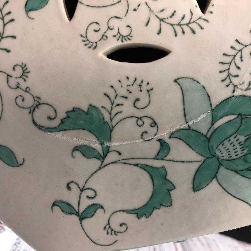 Green & White Floral Ceramic Garden Stool Table Stand