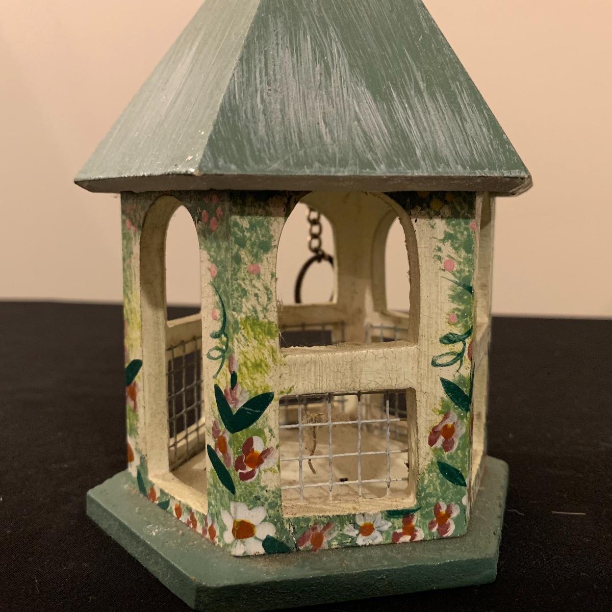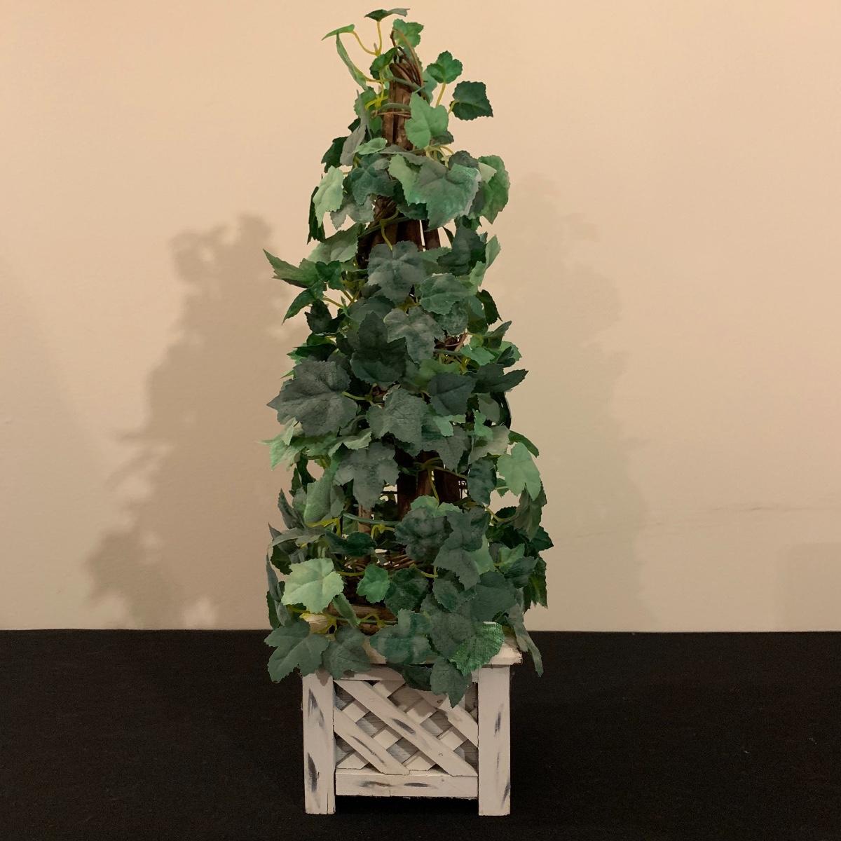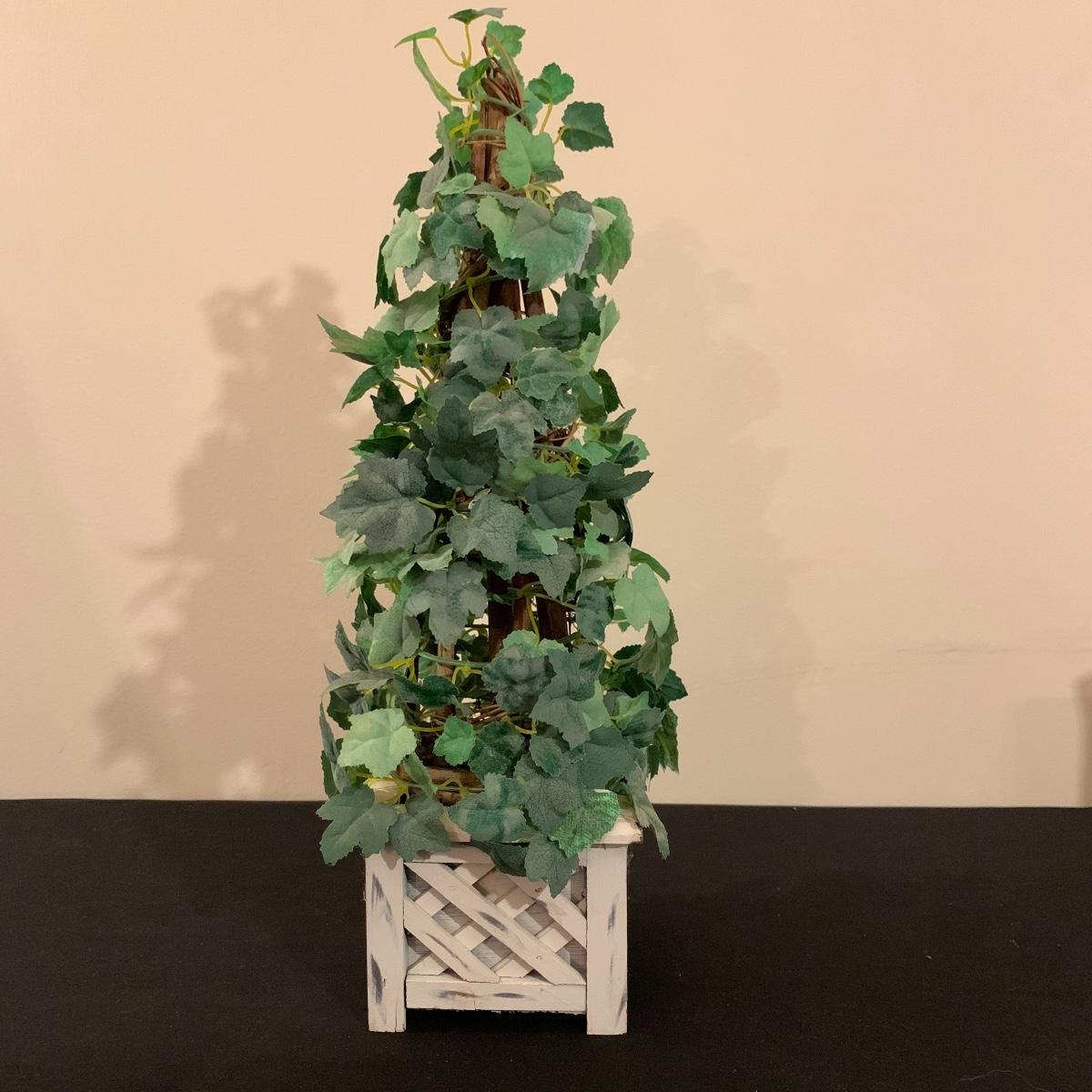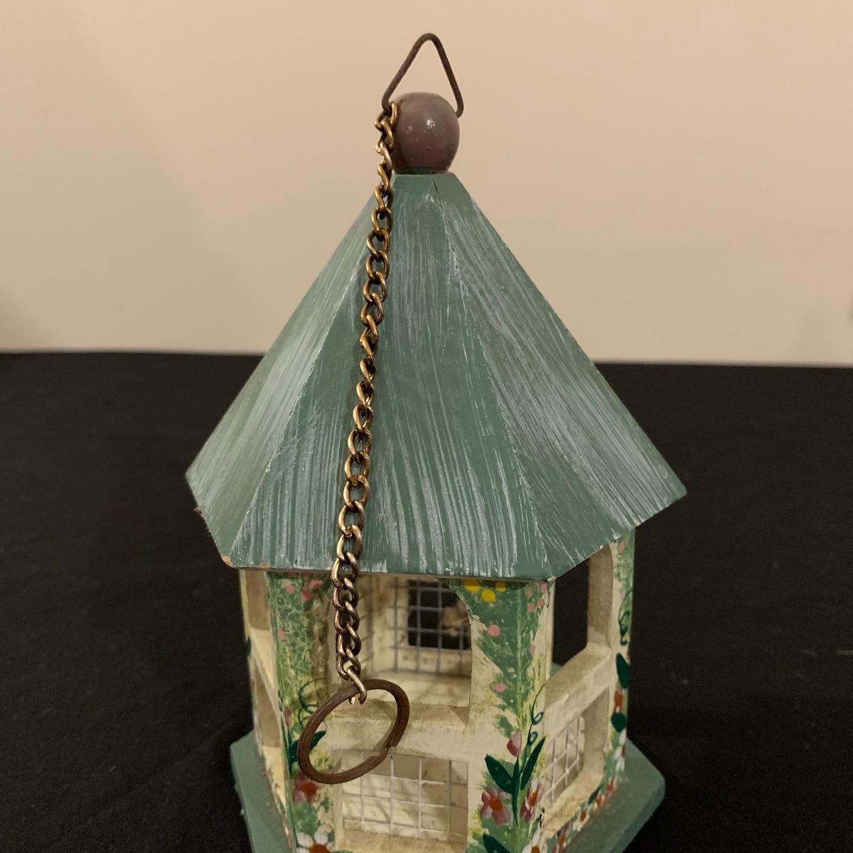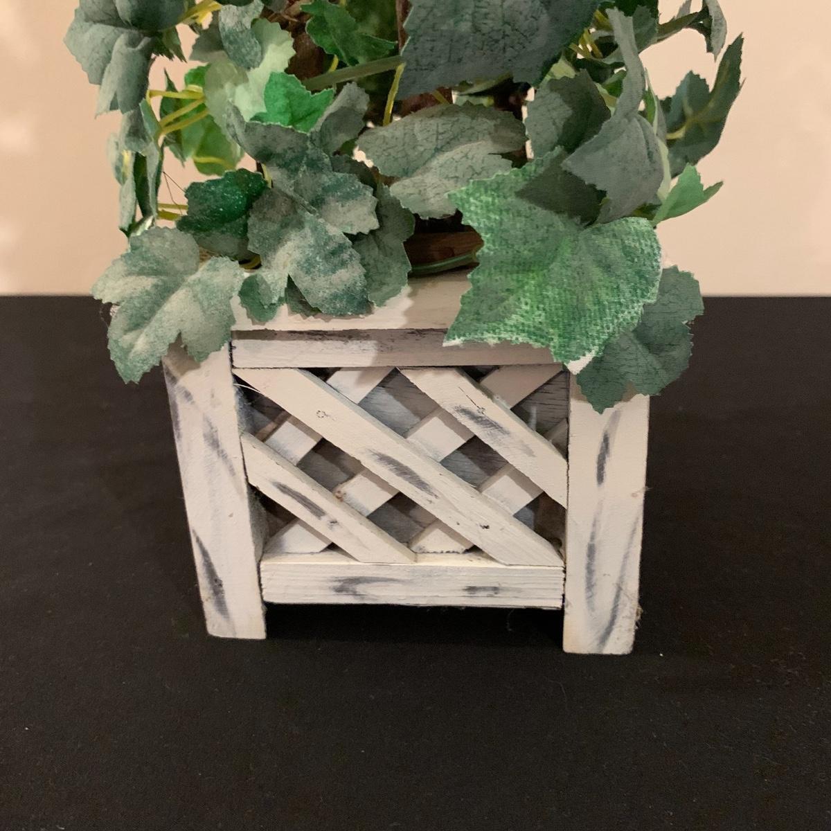 This lot includes various garden themed art and decor. There are two wooden hanging pieces and a watering can-shaped item with hand painted flowers, as well as a small topiary (18” tall). Also included is a battery powered lantern. Additionally, there is a framed print of topiary artwork. The frame is ornate and metallic and is in good condition. There is hardware attached to the back for hanging with a nail. Shipping Available