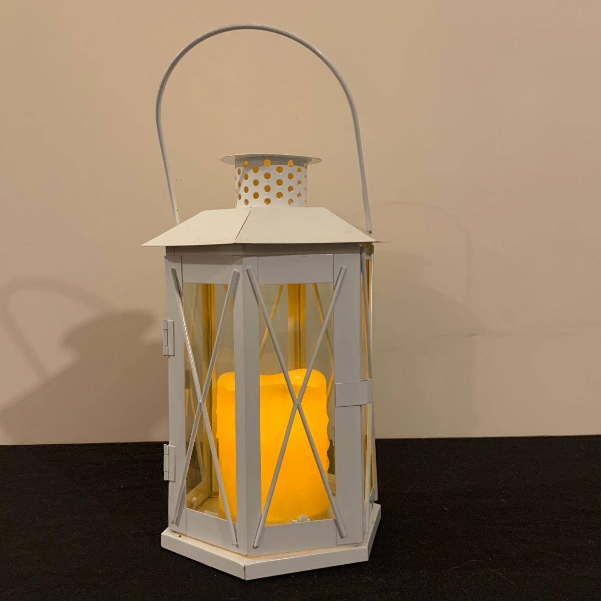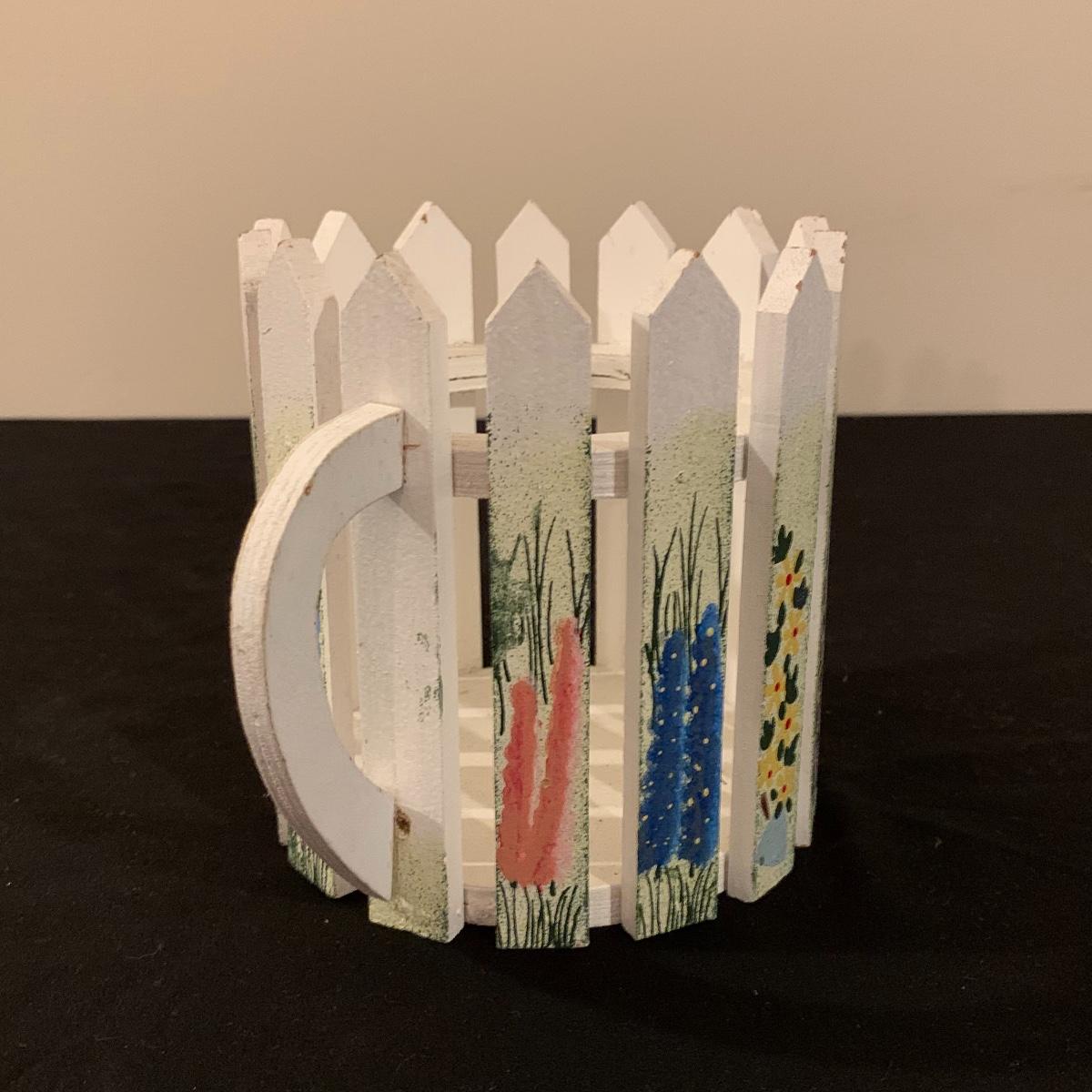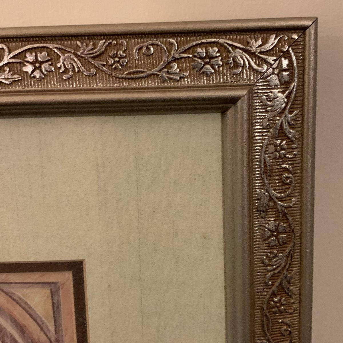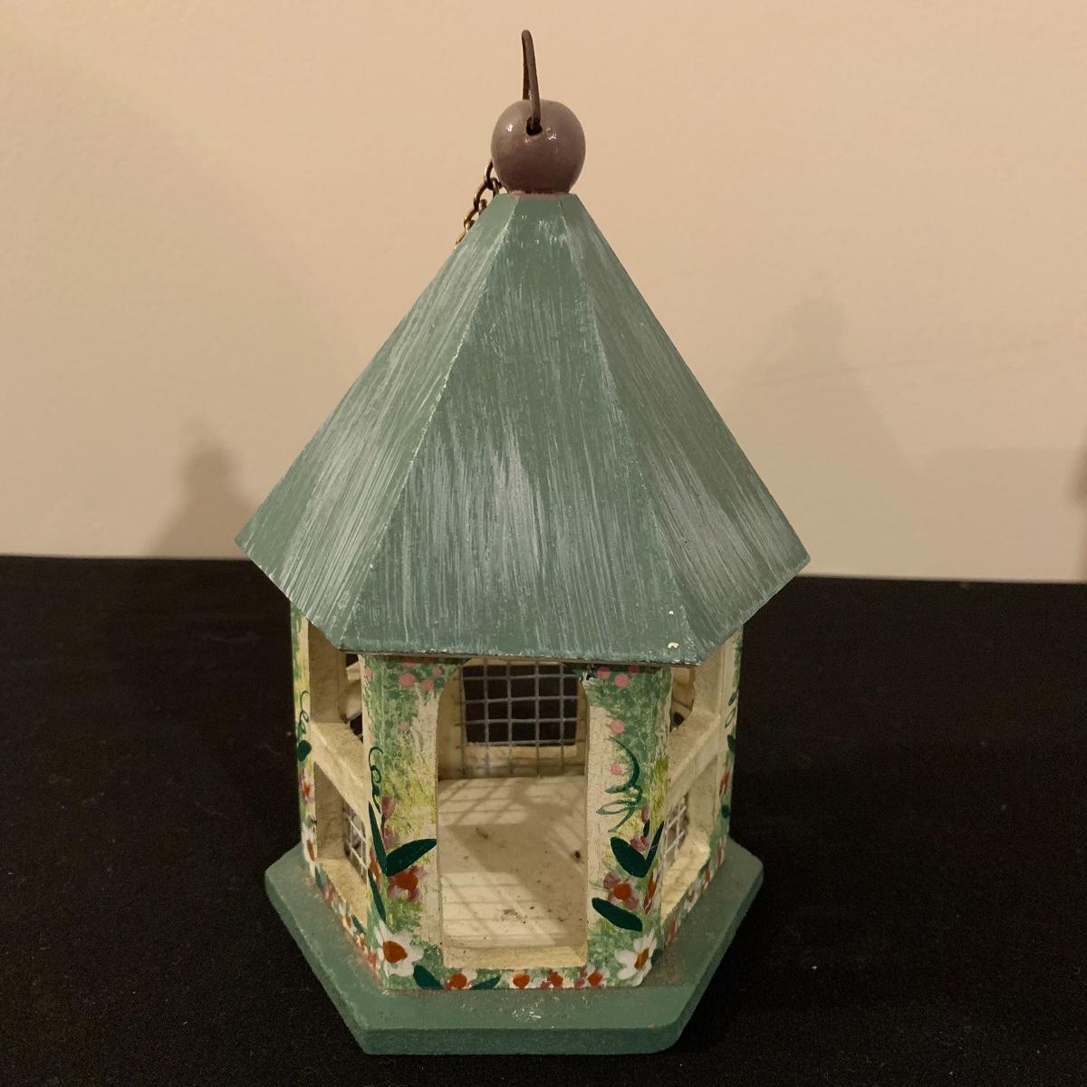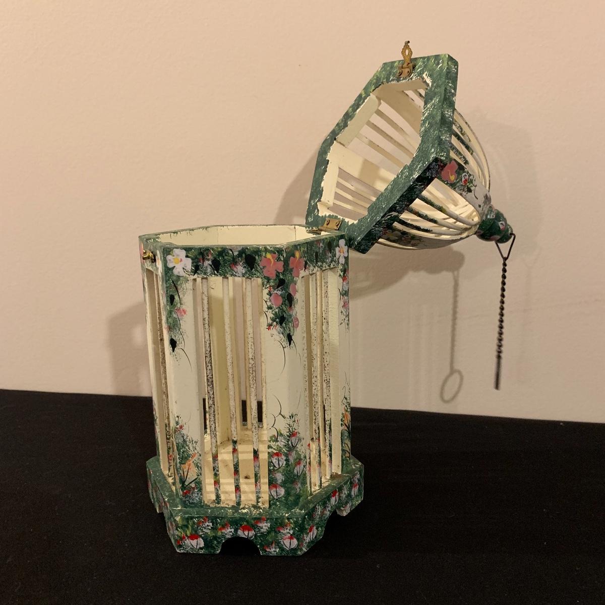 This lot includes various garden themed art and decor. There are two wooden hanging pieces and a watering can-shaped item with hand painted flowers, as well as a small topiary (18” tall). Also included is a battery powered lantern. Additionally, there is a framed print of topiary artwork. The frame is ornate and metallic and is in good condition. There is hardware attached to the back for hanging with a nail. Shipping Available