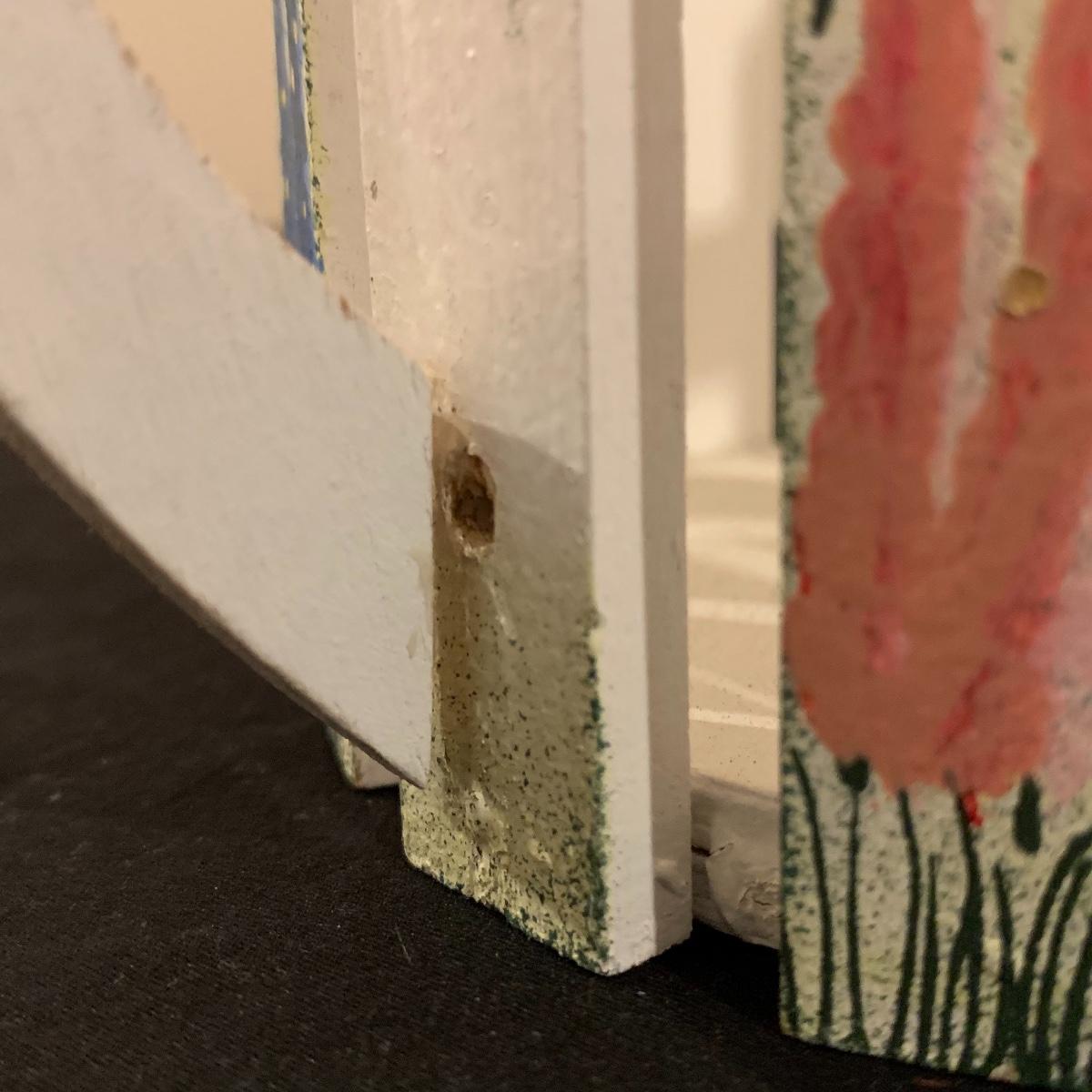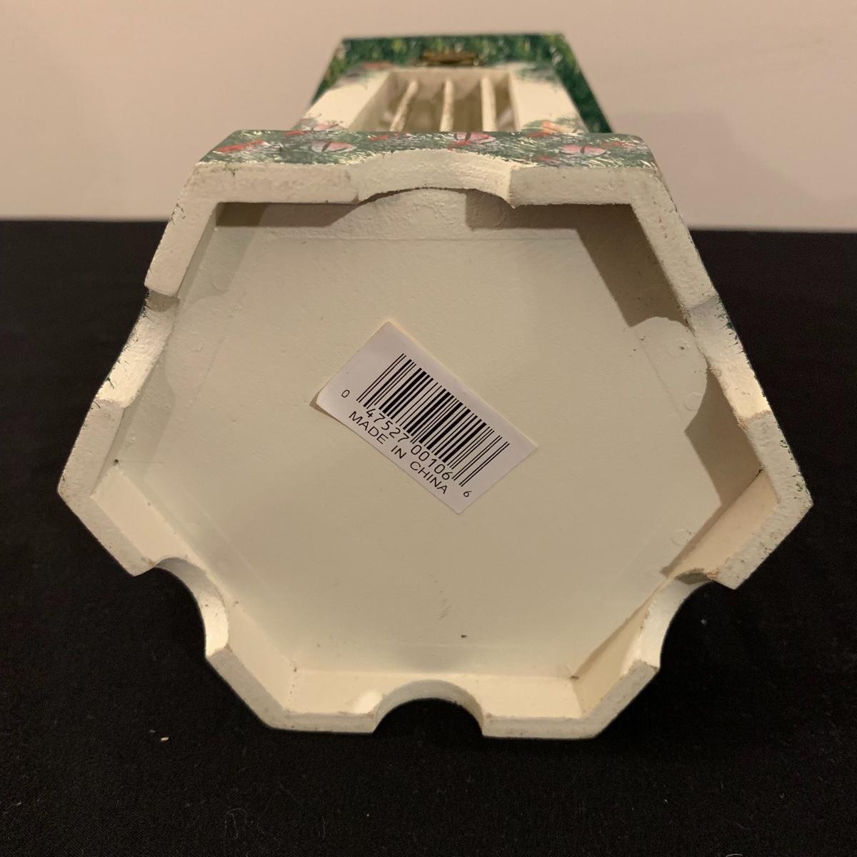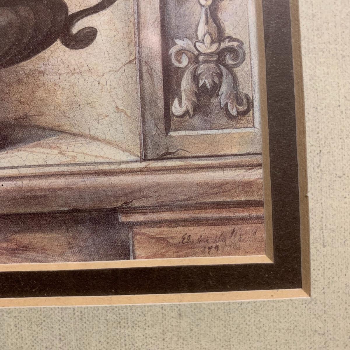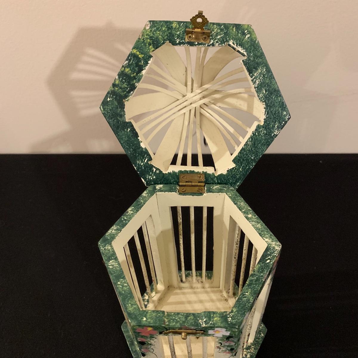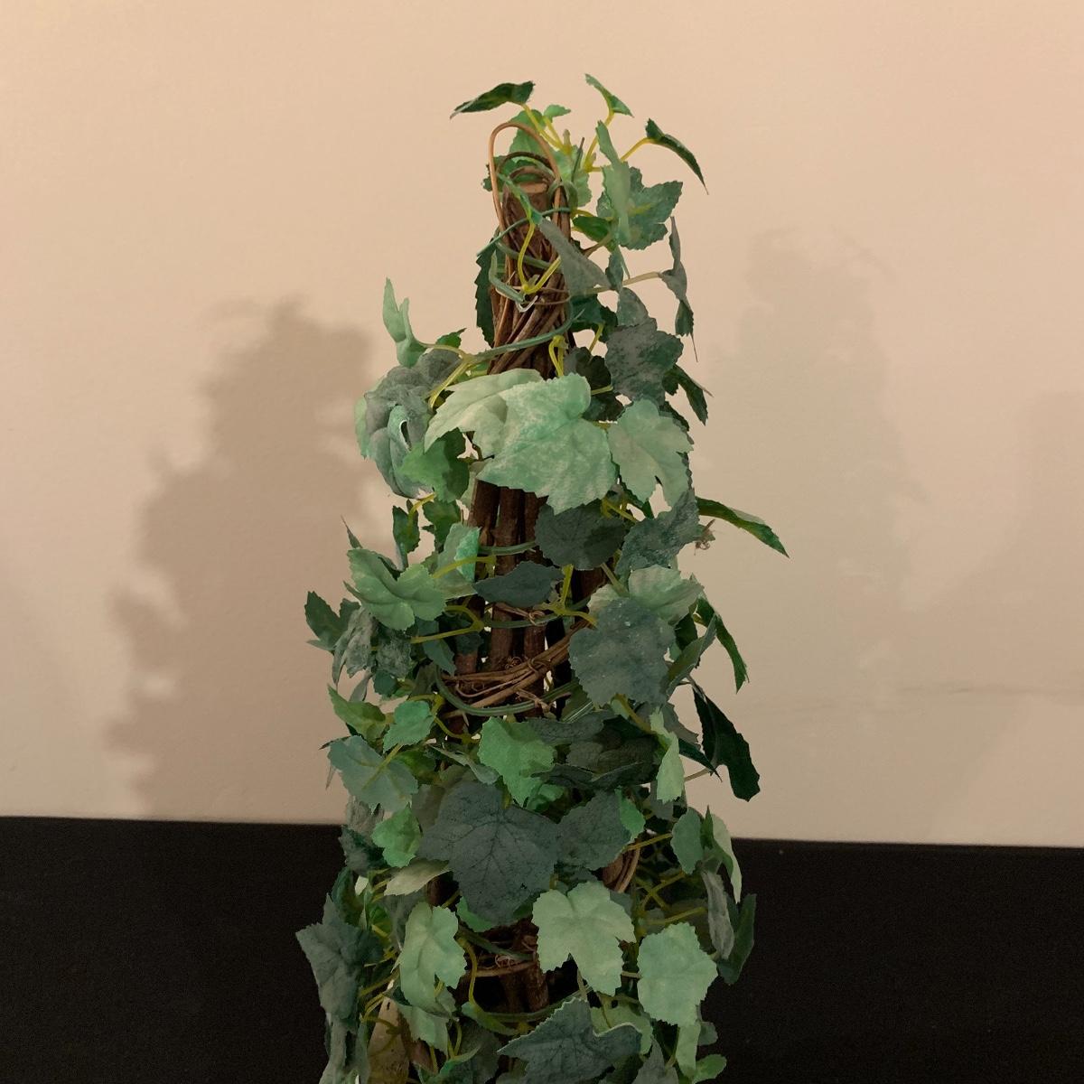 This lot includes various garden themed art and decor. There are two wooden hanging pieces and a watering can-shaped item with hand painted flowers, as well as a small topiary (18” tall). Also included is a battery powered lantern. Additionally, there is a framed print of topiary artwork. The frame is ornate and metallic and is in good condition. There is hardware attached to the back for hanging with a nail. Shipping Available