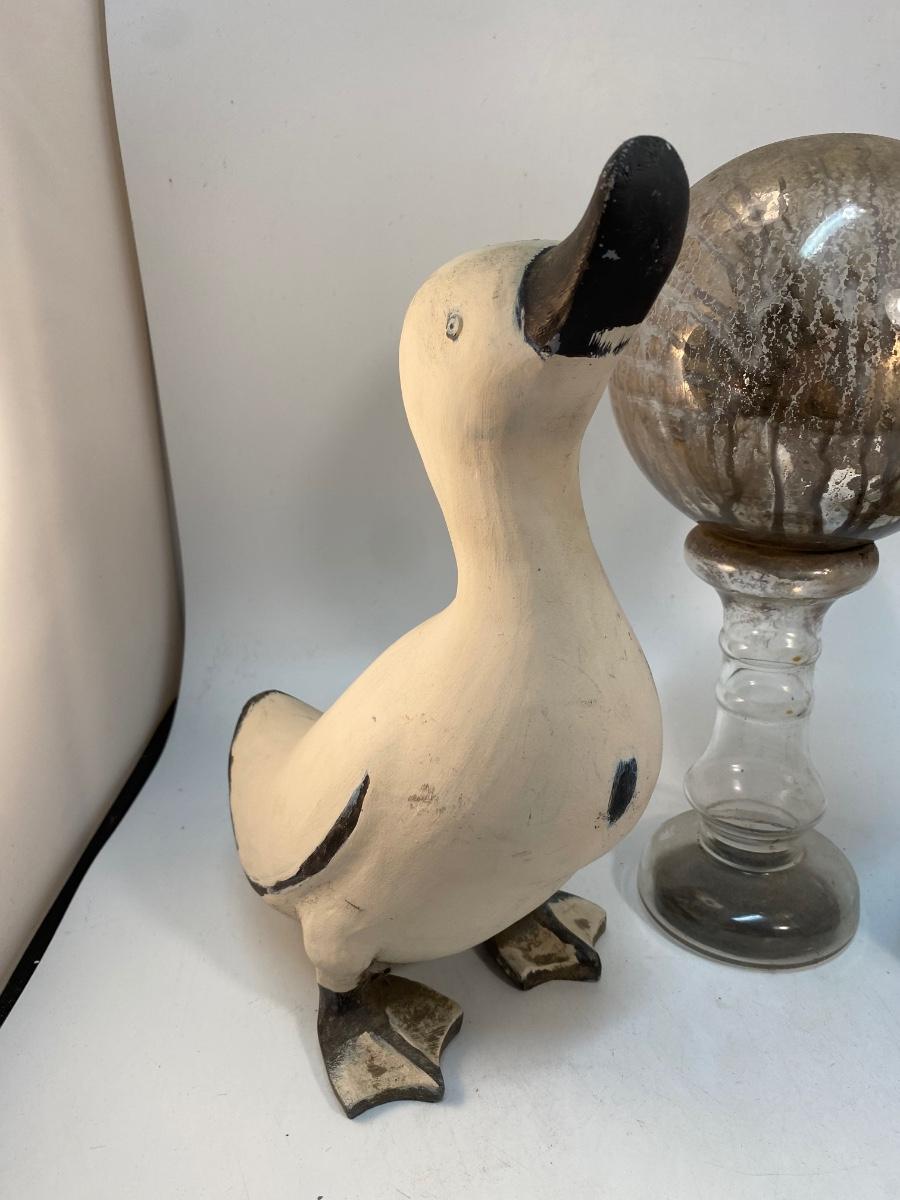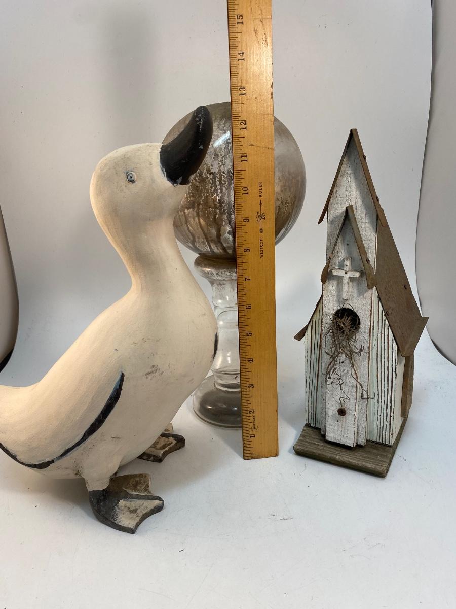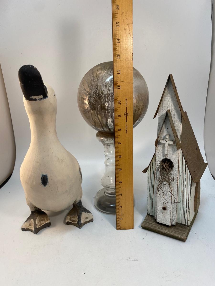Garden Yard Art Lot Wood Goose Glass Orb Ball Rustic Church Birdhouse