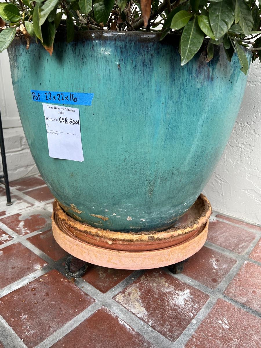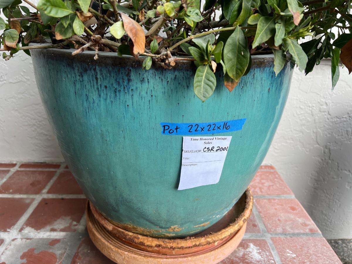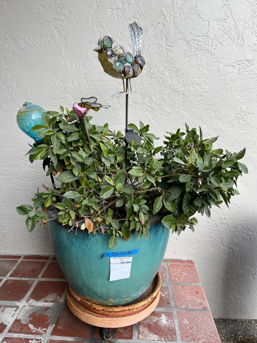 Gardenia Plant In Large Turquoise Glazed Ceramic Pot