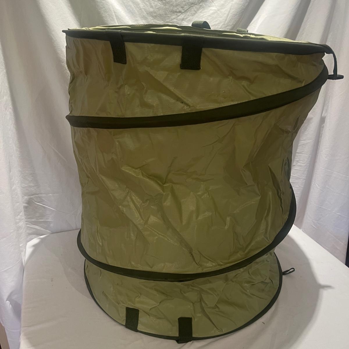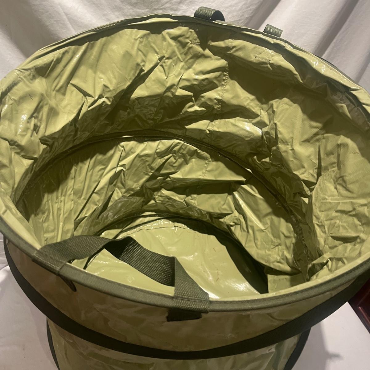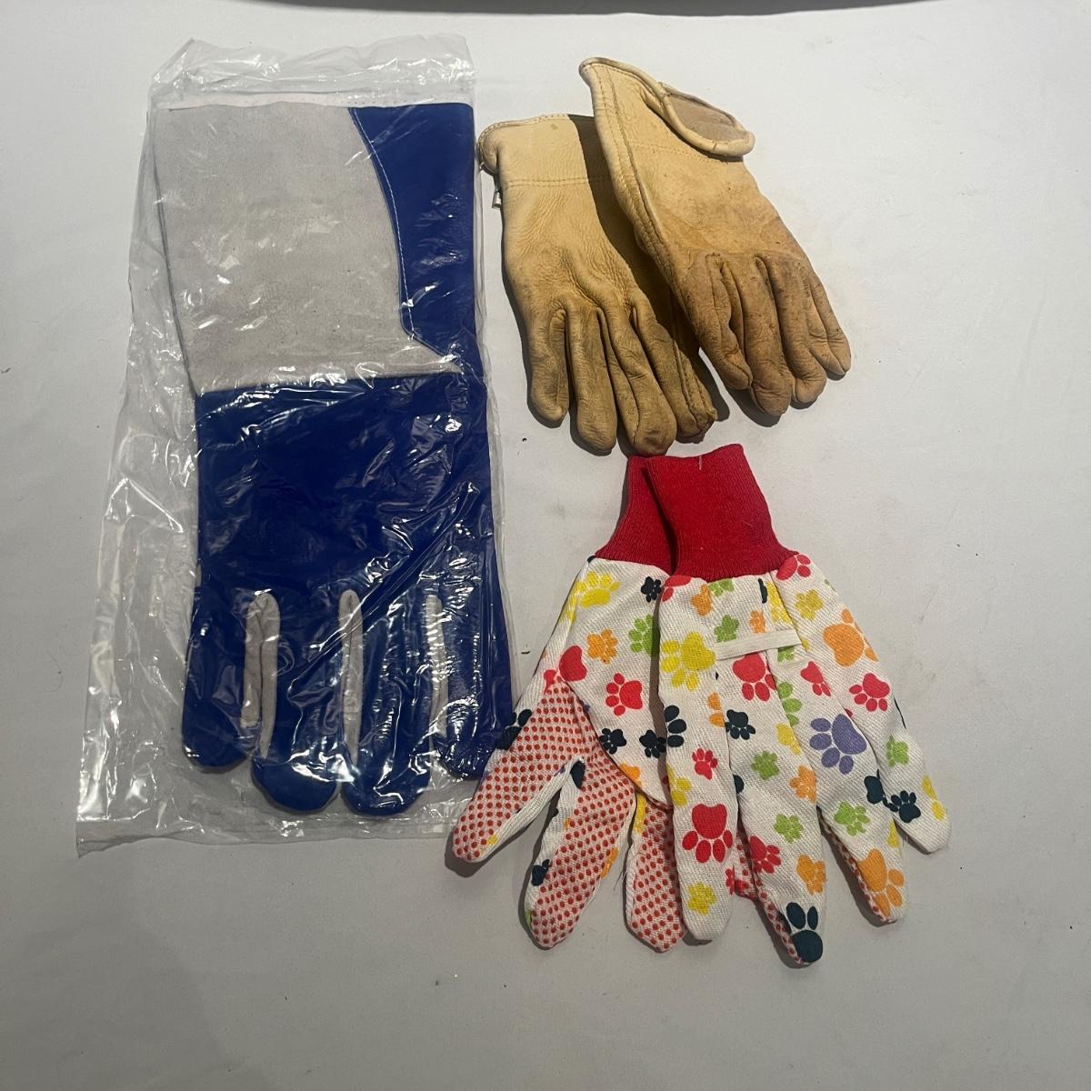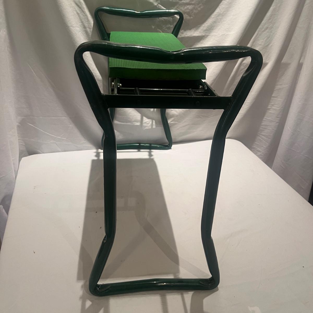This gardening lot includes folding kneeler/seat, collapsible bin, three pairs of gloves and a partial roll of weed fabric.