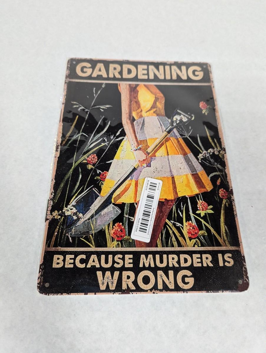 Gardening Because Murder Is Wrong Metal Sign