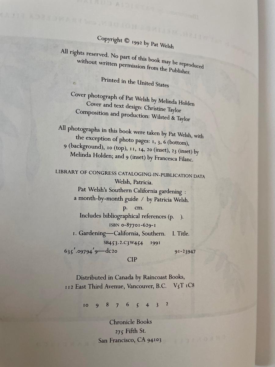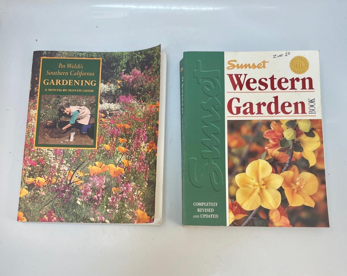 Gardening Books: Sunset Western Garden Book (1995) and Pat Welsh’s Southern California Gardening Book (1992). Excellent reference books, lots of color photos, tips and info about climate zones.