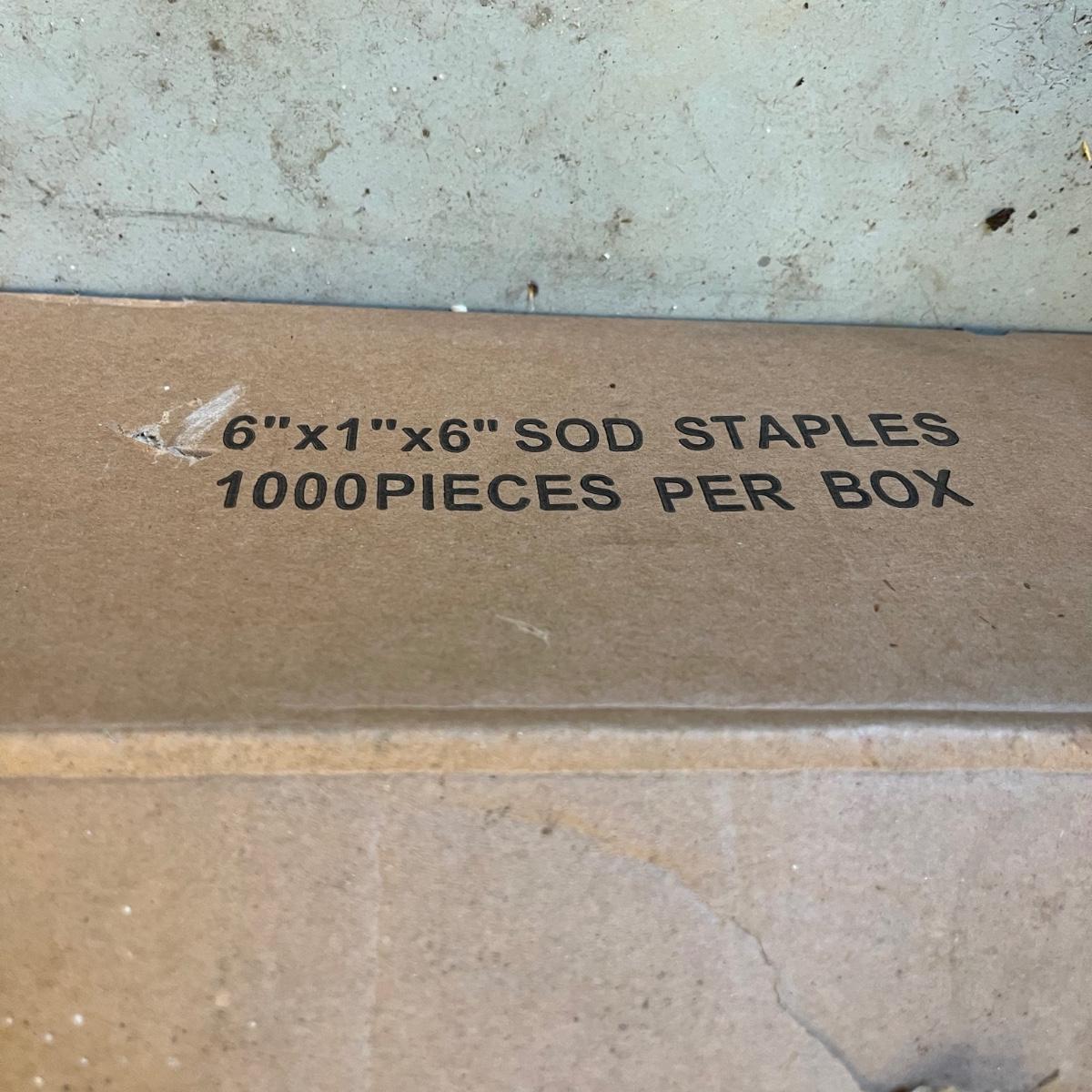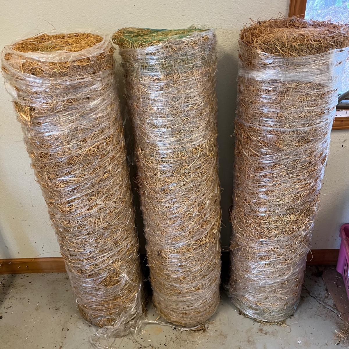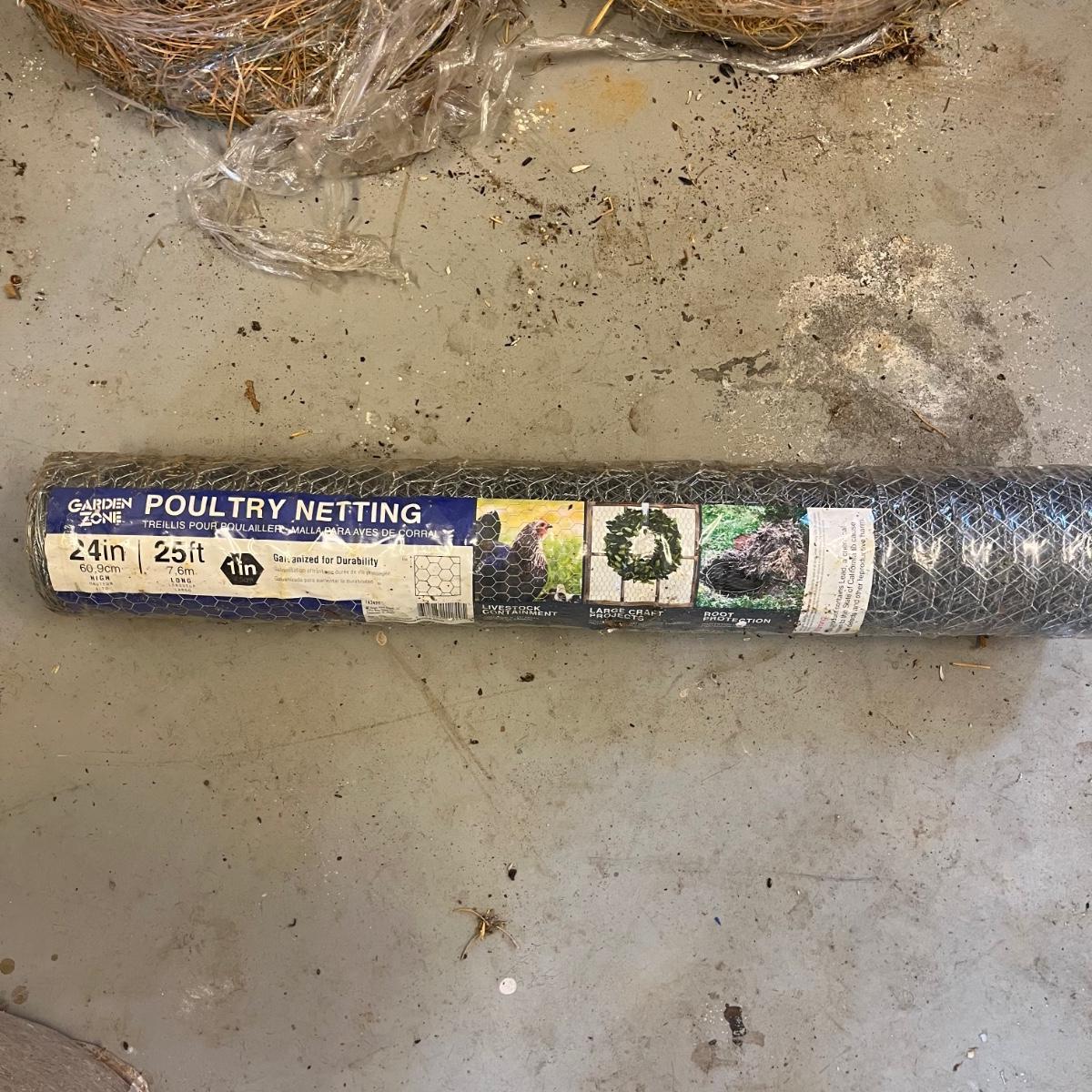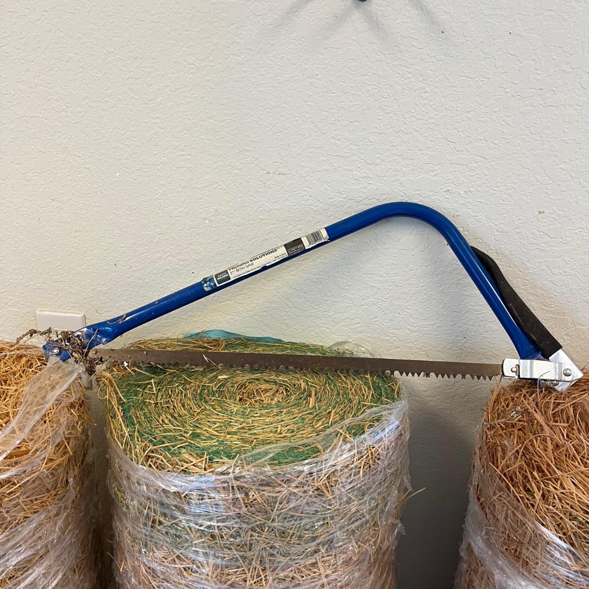 Lot includes three rolls of erosion netting, one bag of seeding mulch, box of landscape staples, Gilmore loppers, poultry netting, Tape Tool gardening tape machine and an Ames 21” bow saw. Also include 10 metal stakes. Erosion netting measures 14”D x 48”.