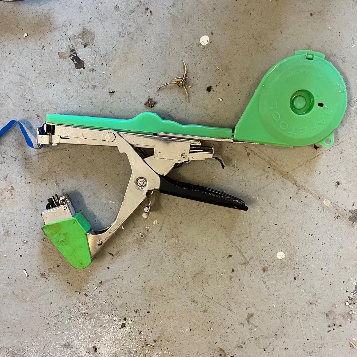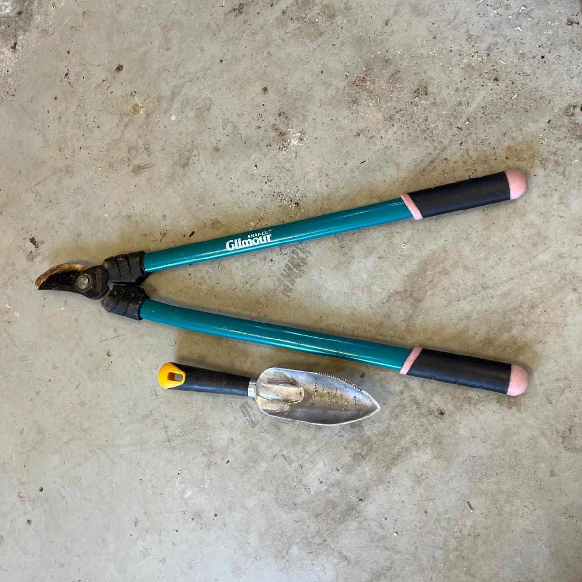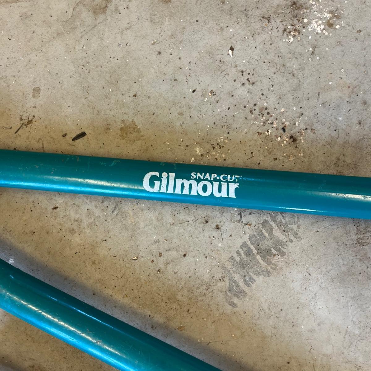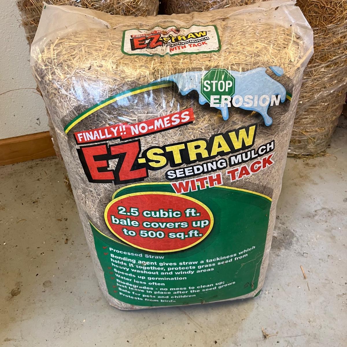 Lot includes three rolls of erosion netting, one bag of seeding mulch, box of landscape staples, Gilmore loppers, poultry netting, Tape Tool gardening tape machine and an Ames 21” bow saw. Also include 10 metal stakes. Erosion netting measures 14”D x 48”.