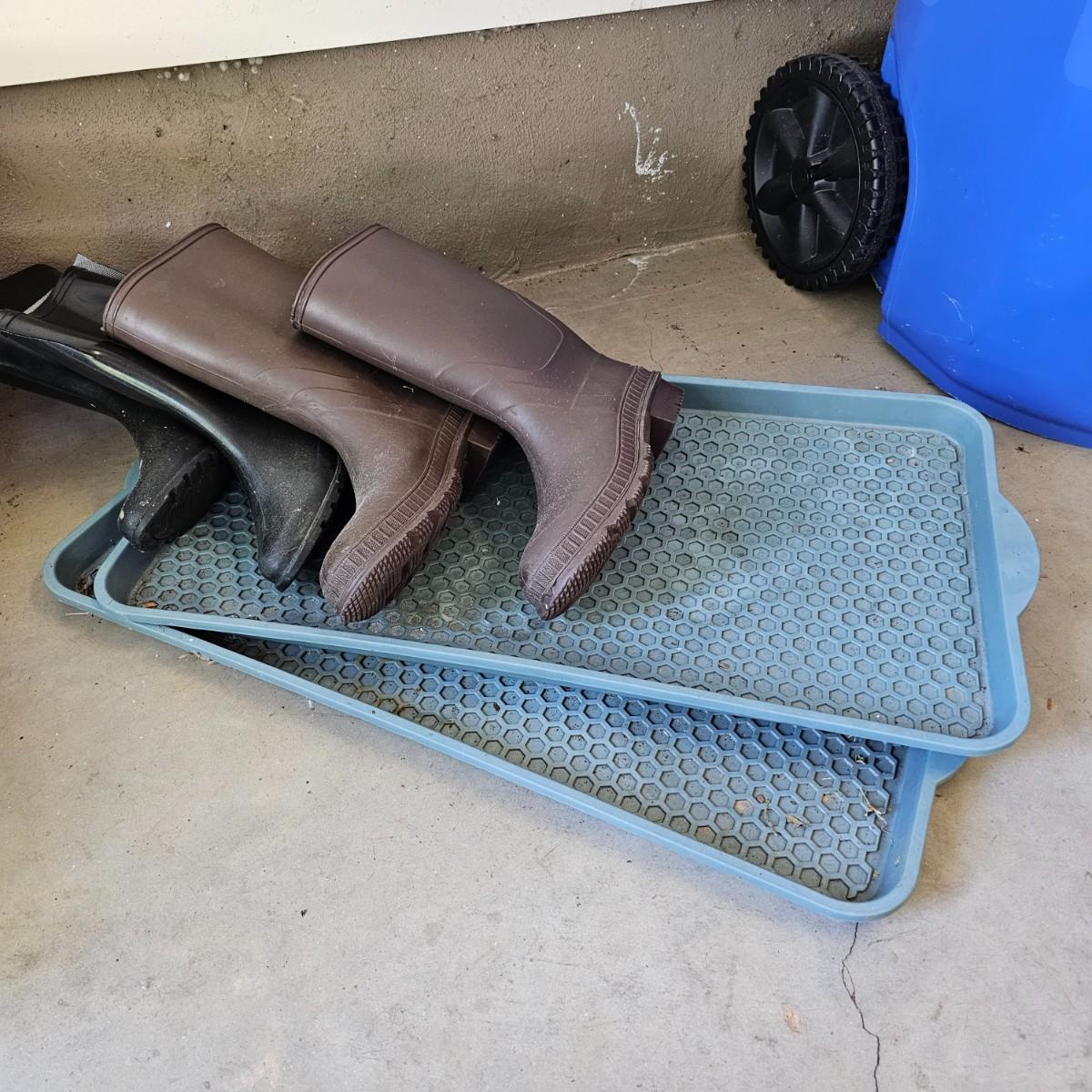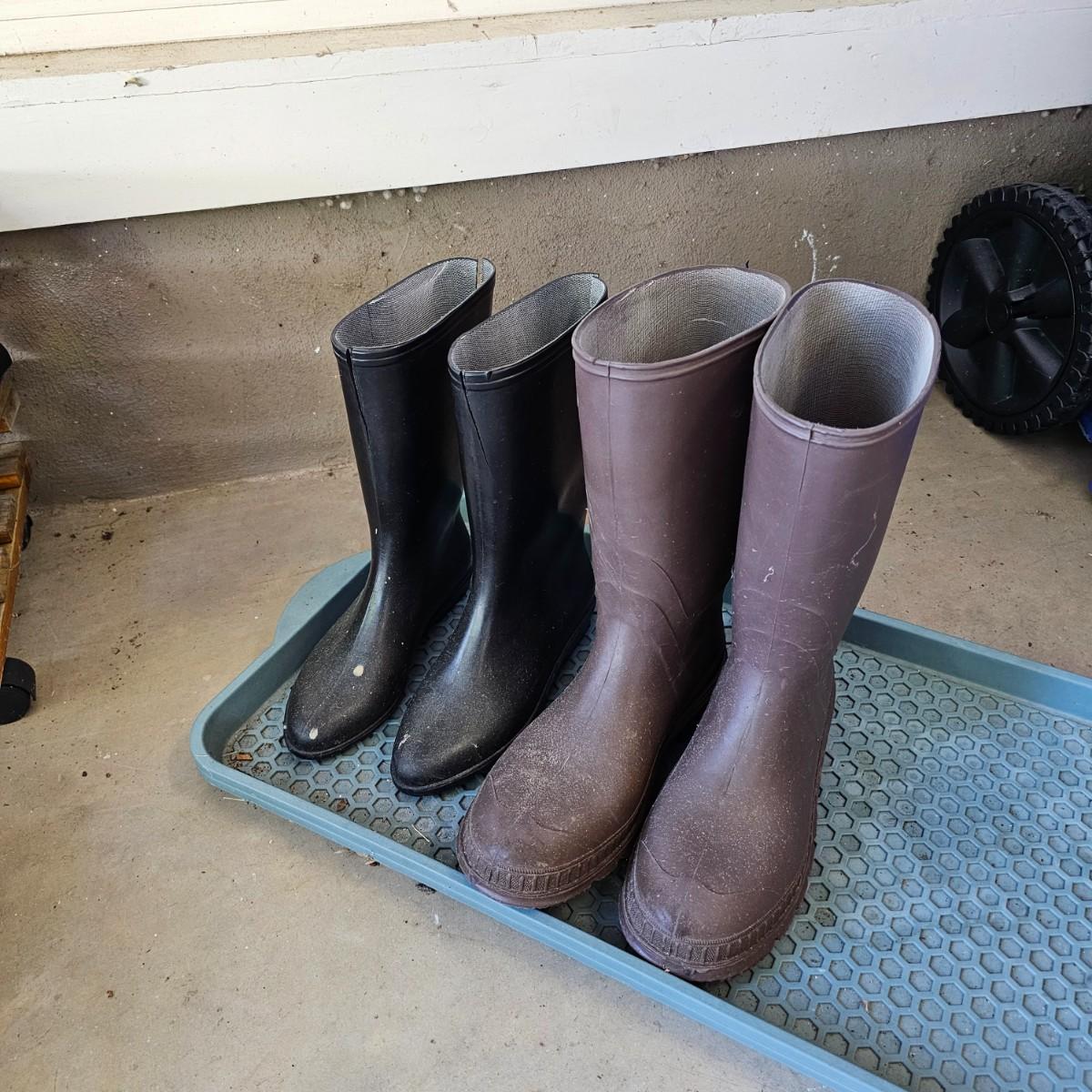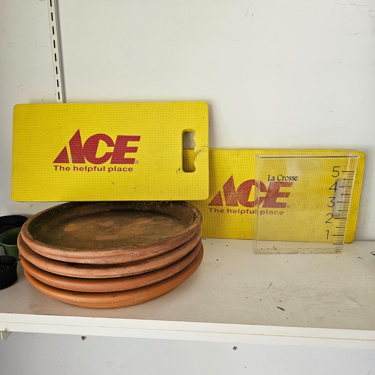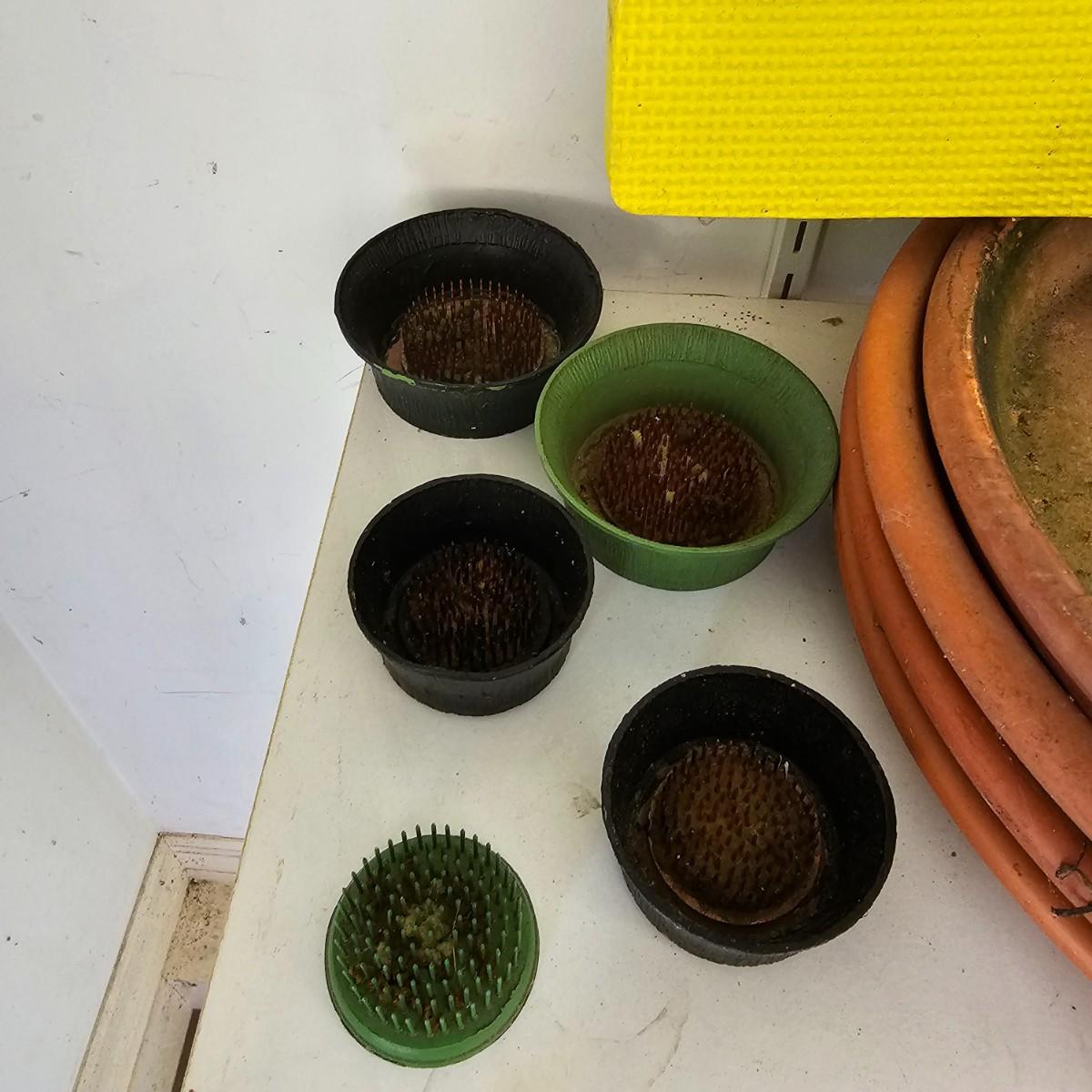 Large assortment of planters and pots for the garden or elsewhere. Pots, trays, watering cans, flower frogs, boots, rain gauges and more. Pots range in size from 3.5" to 8". Large ceramic trays are 12"dia. Wooden rolling plant stands are 12" round or 12" square. Also includes two boot trays and one pair of size 10 and one pair of size 7 garden boots. See photos for details. Local pickup only.