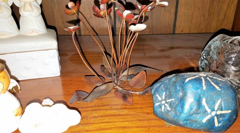 Decor candle holders, metal flowers and most of all Garfield
