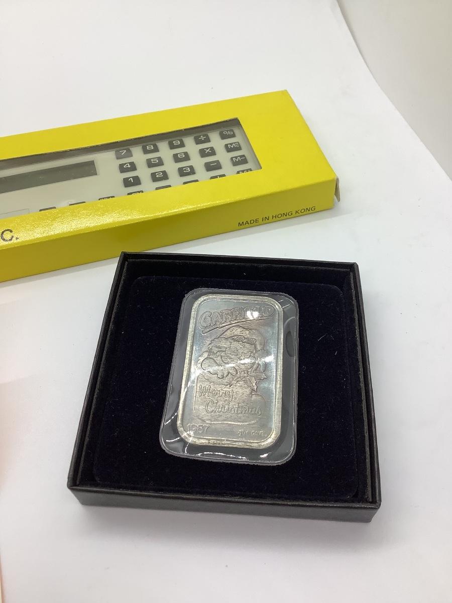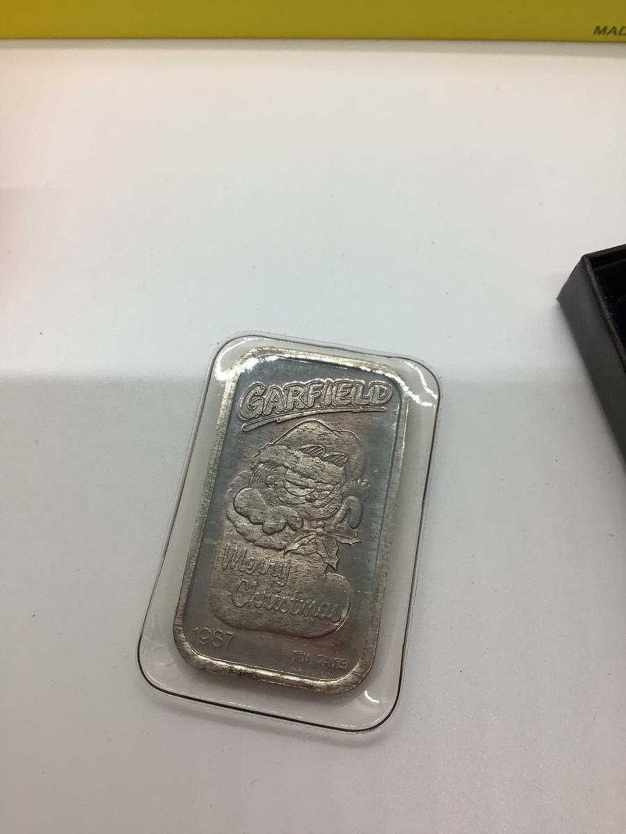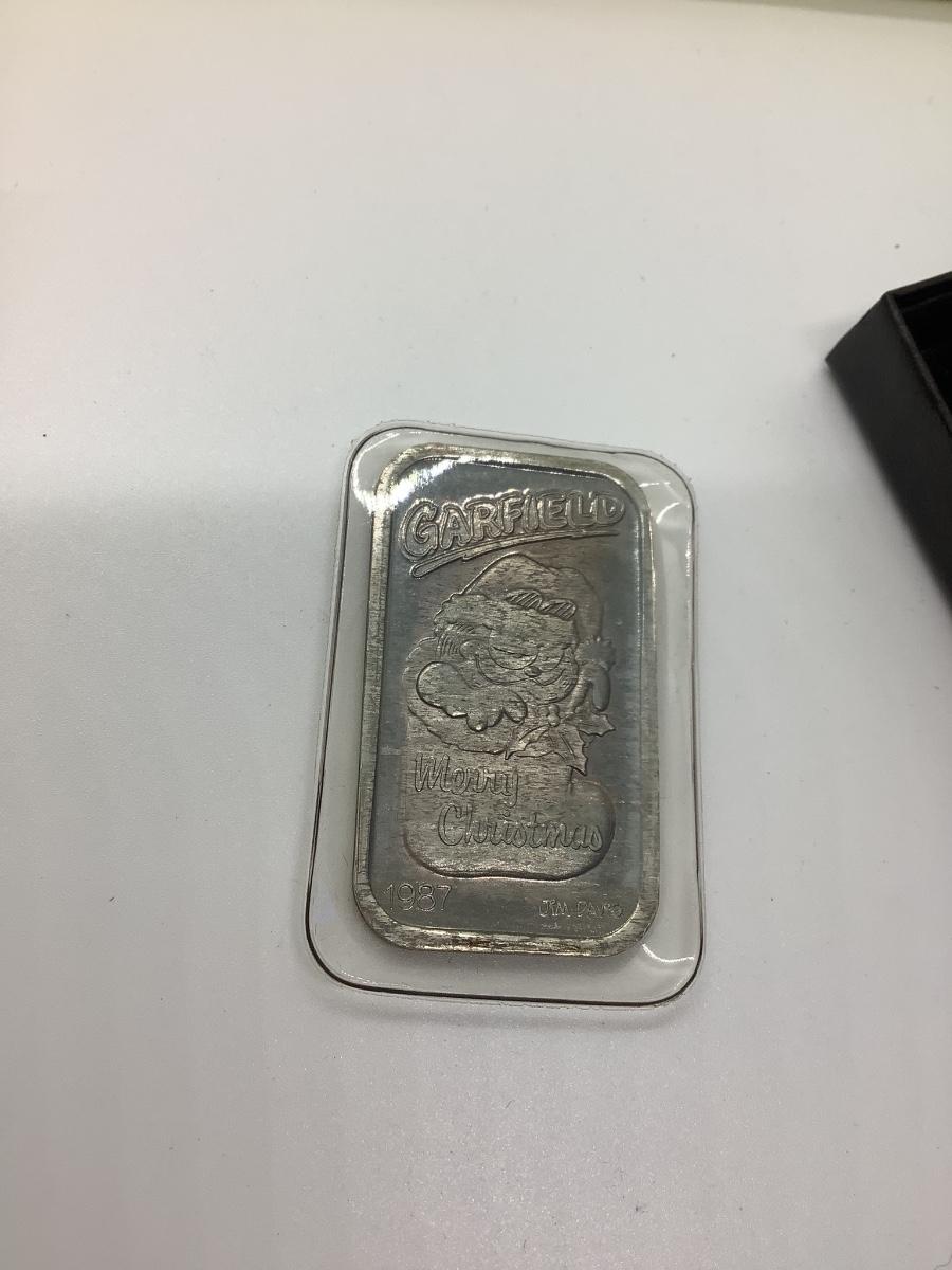 1987 Garfield Collectibles Christmas ingot .999 1 silver ounce. Sealed in plastic sleeve., with box and info sheet