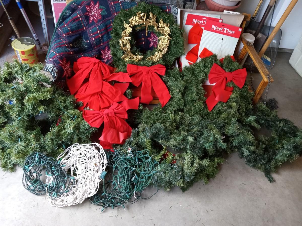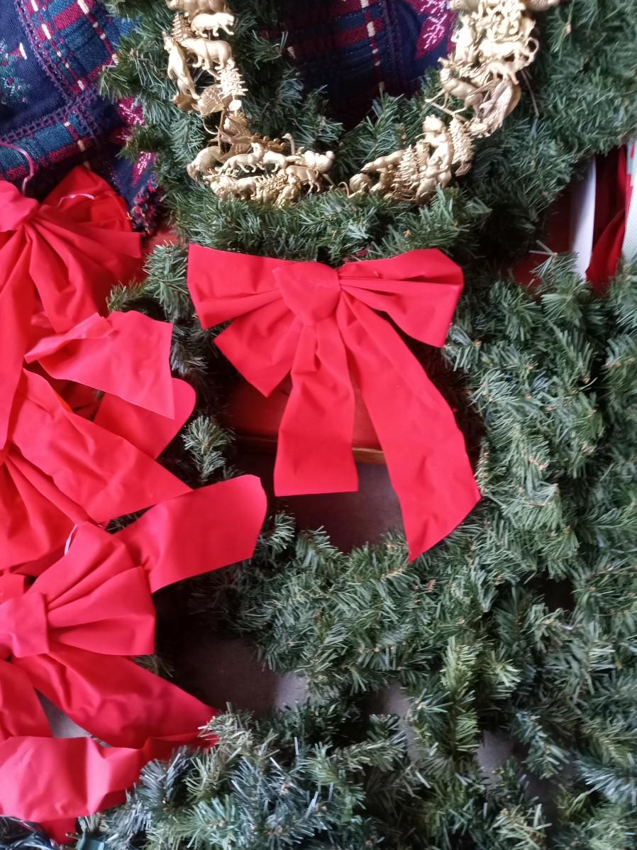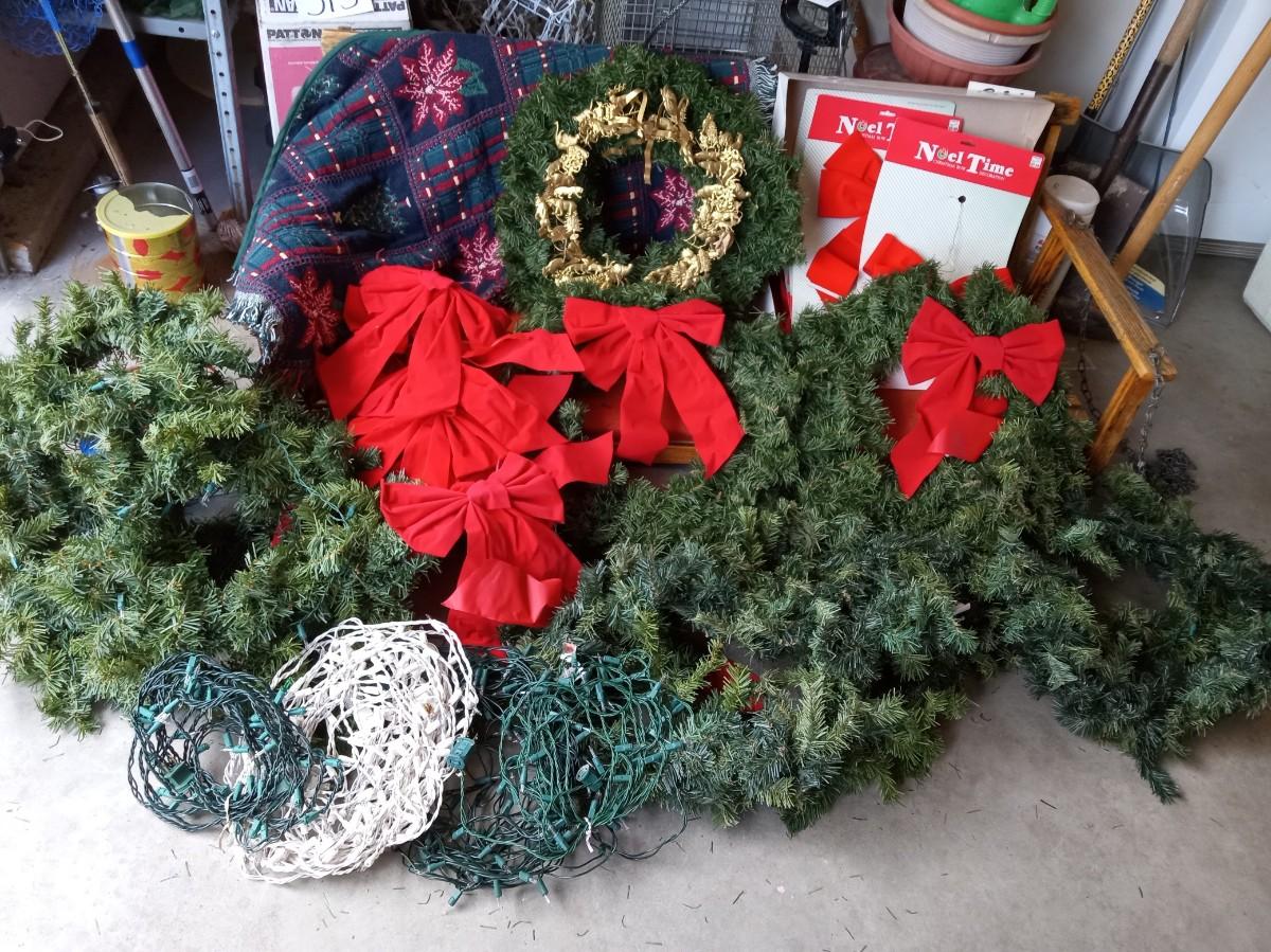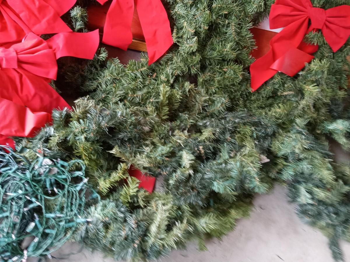 GARLAND, WREATHS, BIG BOWS, LIGHTS AND KNITTED TREE SKIRT