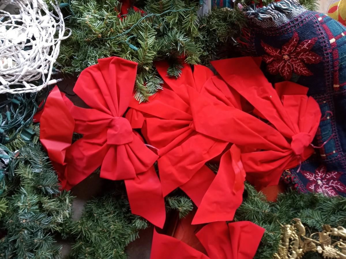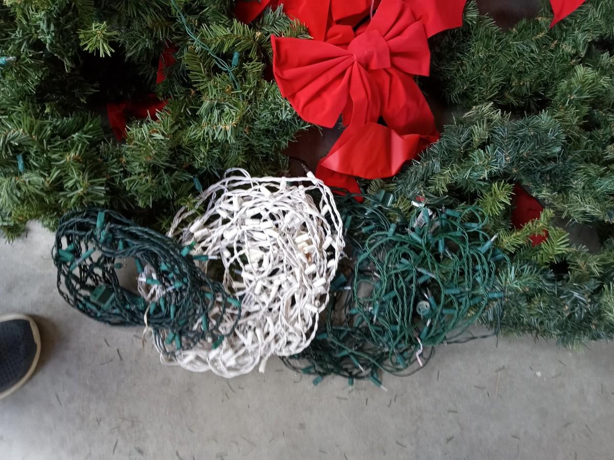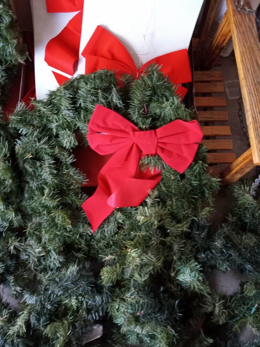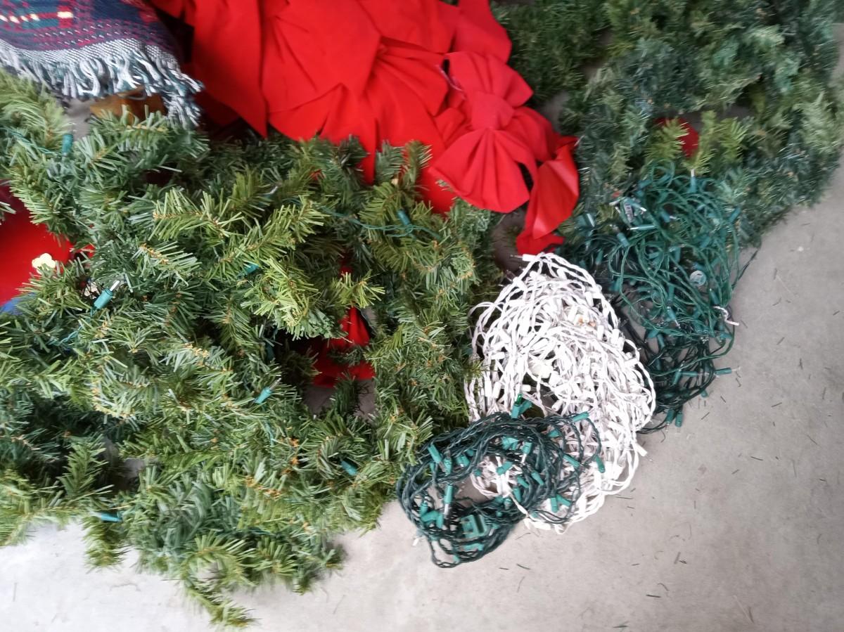GARLAND, WREATHS, BIG BOWS, LIGHTS AND KNITTED TREE SKIRT