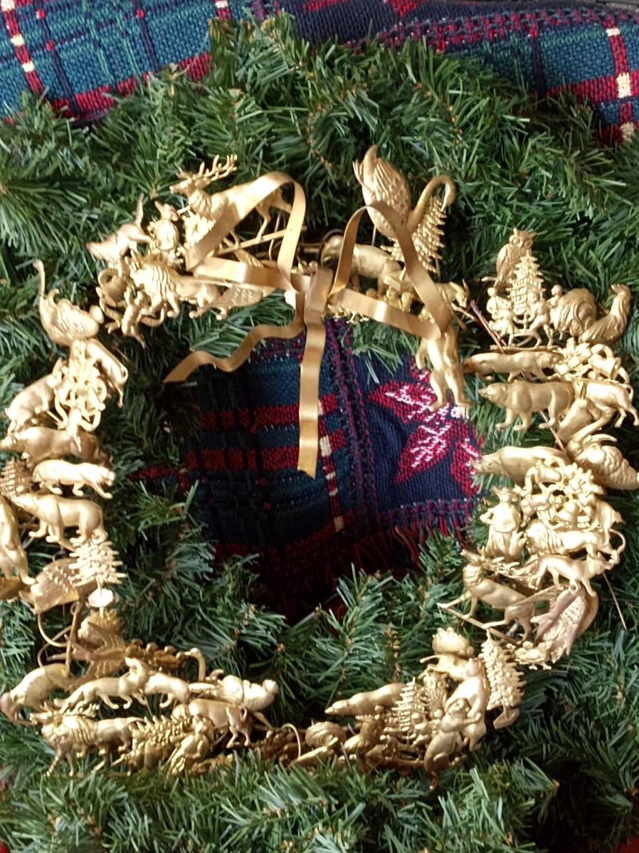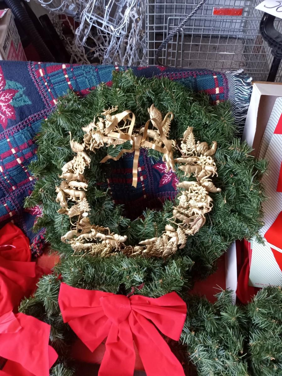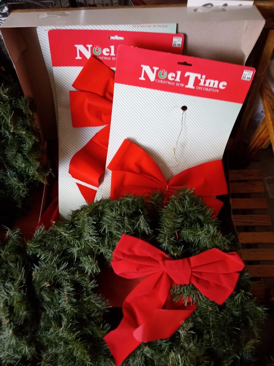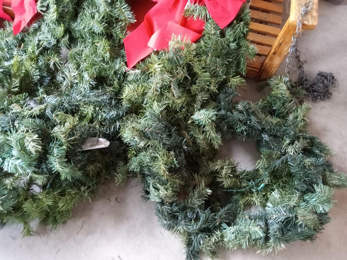 GARLAND, WREATHS, BIG BOWS, LIGHTS AND KNITTED TREE SKIRT