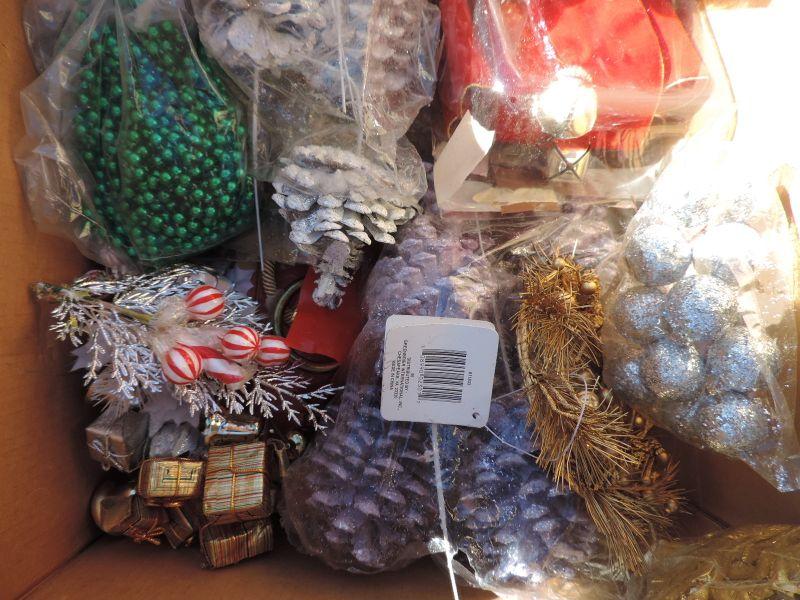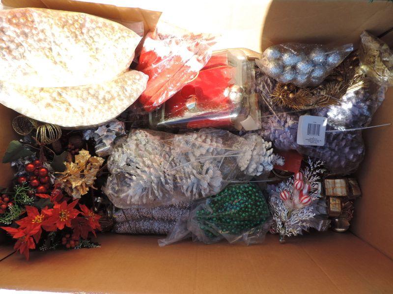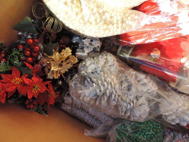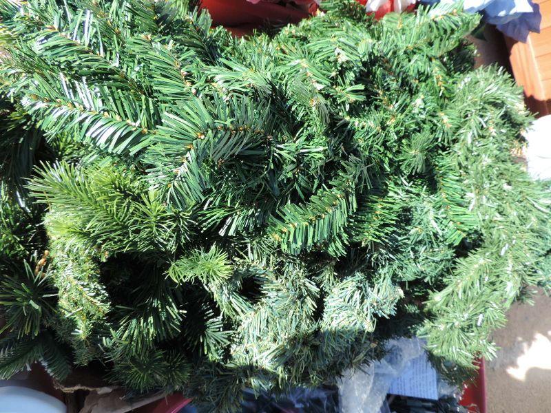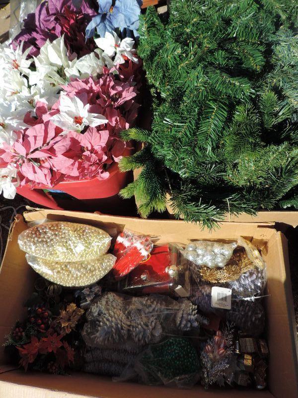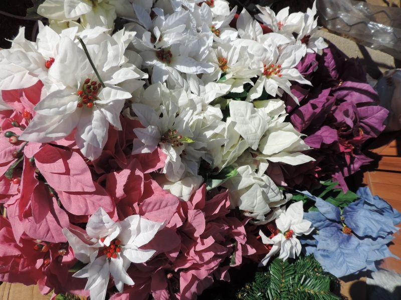 CRAFTING SUPPLIES, POINSETTIAS IN DIFFERENT COLORS AND STRANDS OF GARLAND IN DIFFERENT LENGTH'S