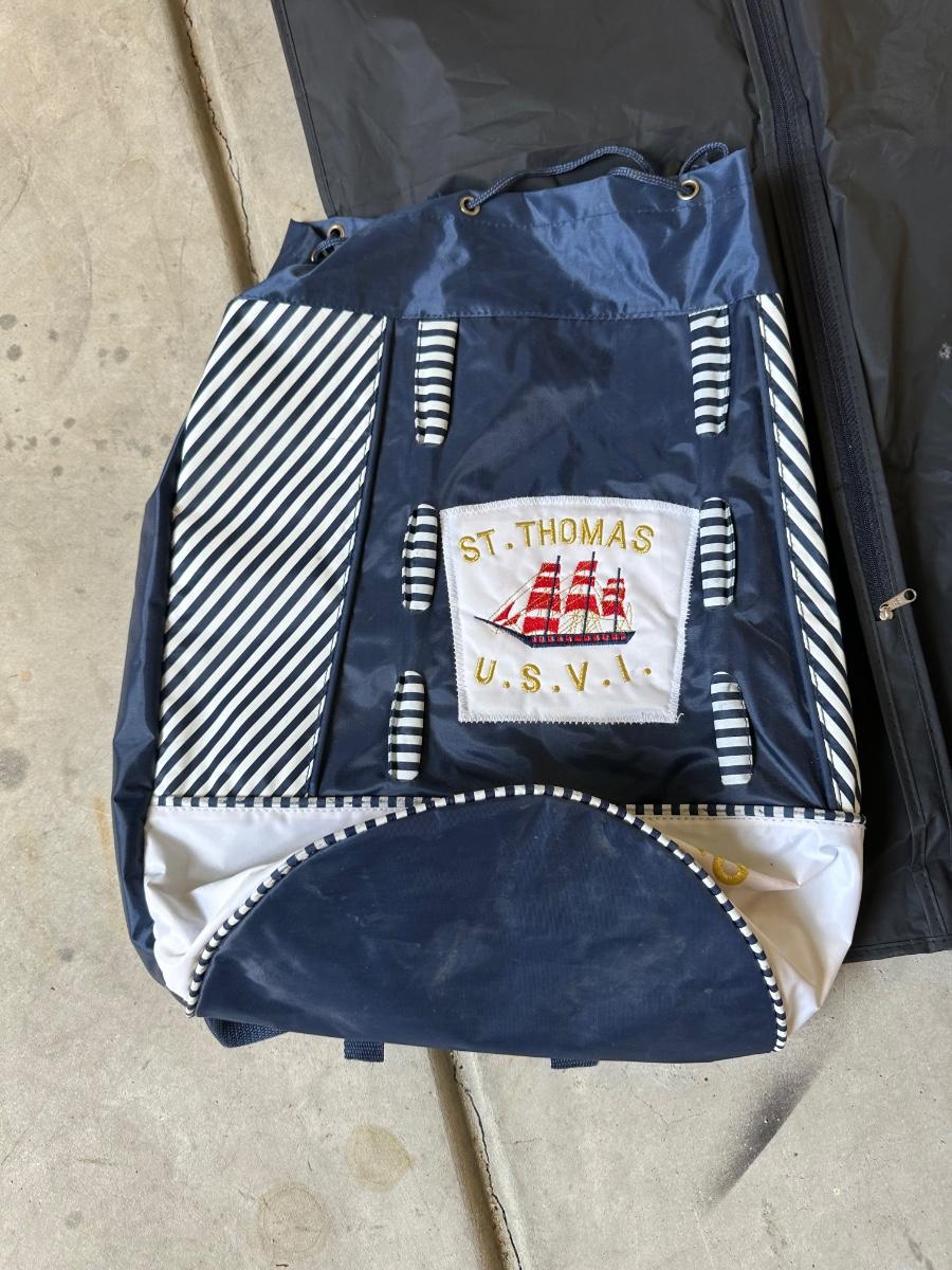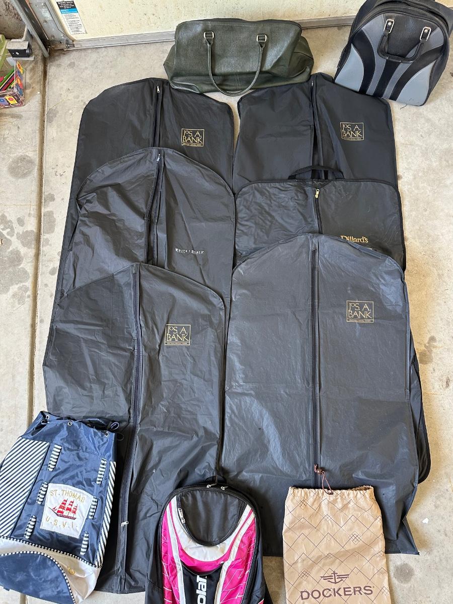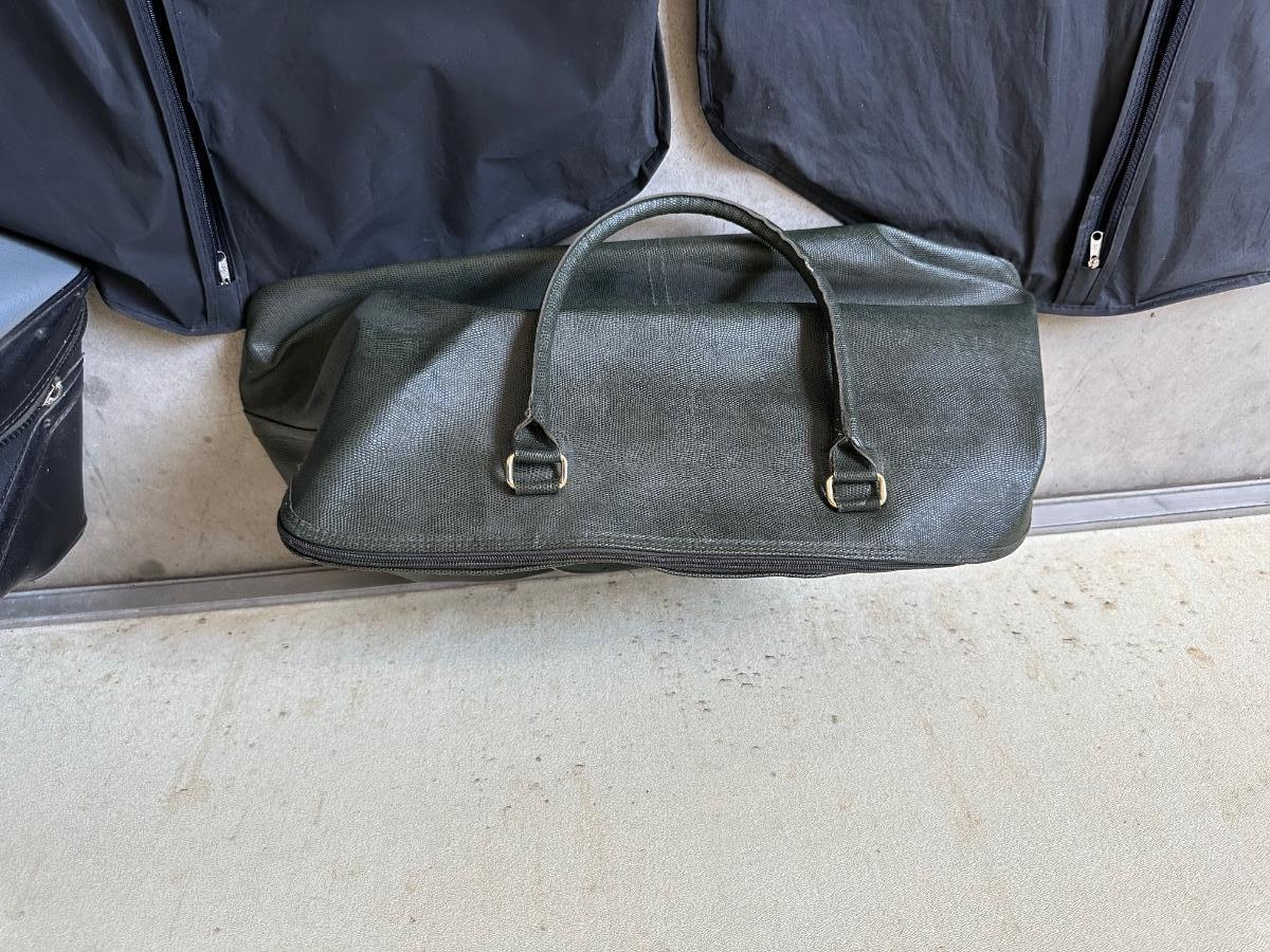 GARMENT BAGS, BACKPACK, BEACH BAG AND A BOWLING BALL
