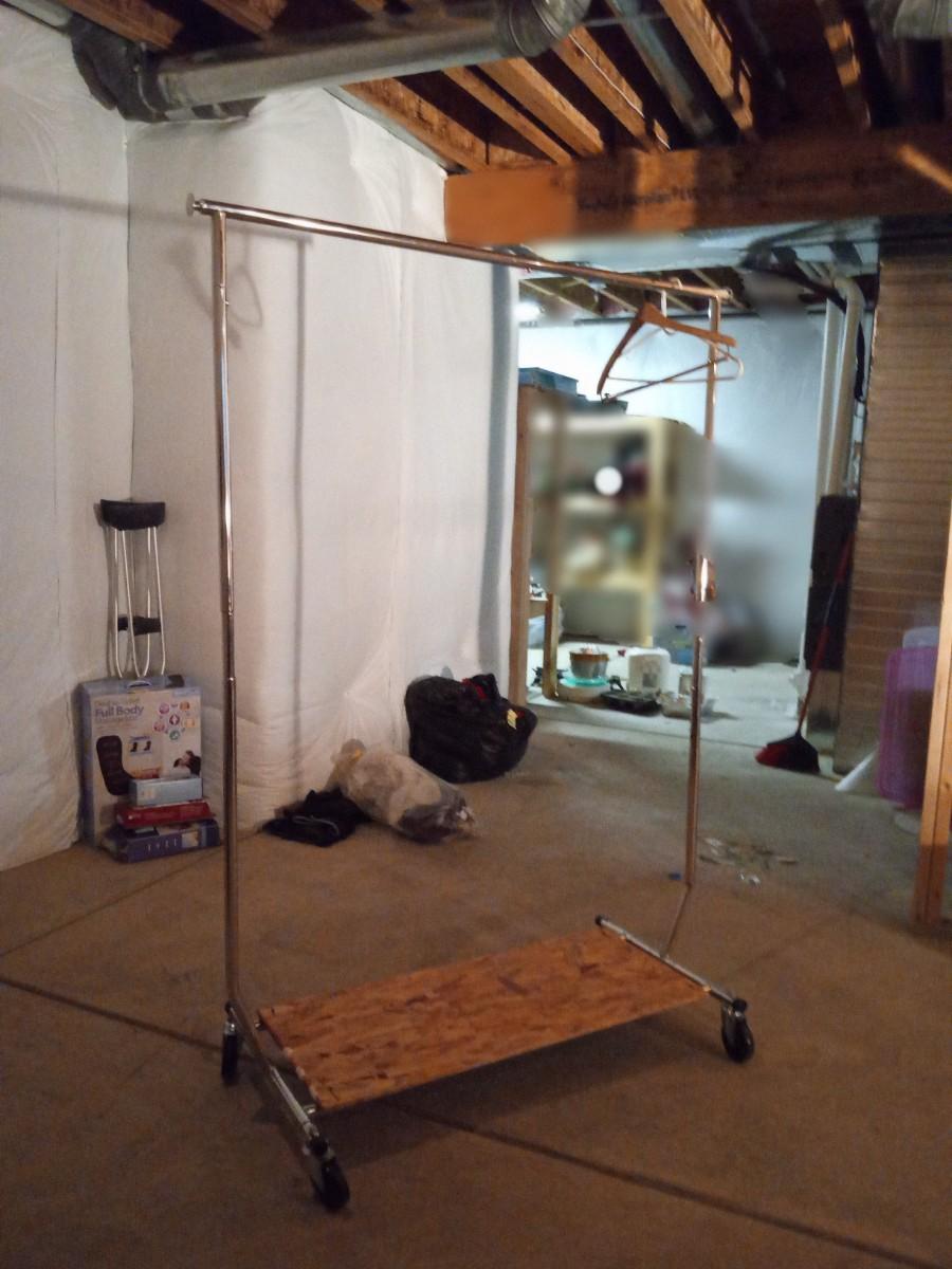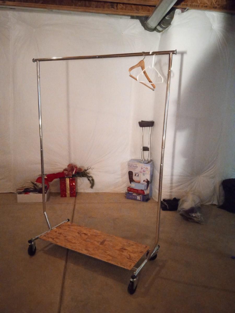 GARMENT RACK WITH EXTENDABLE ROD AND ON CASTERS