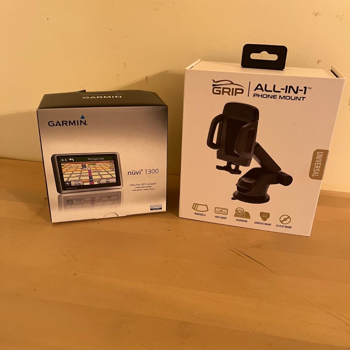 Lot includes Garmin Nuvi 1300 that worked when tested and a NIB Grip all in one phone mount.