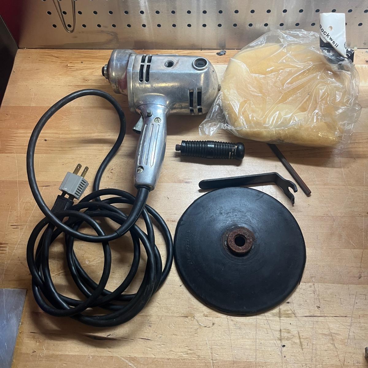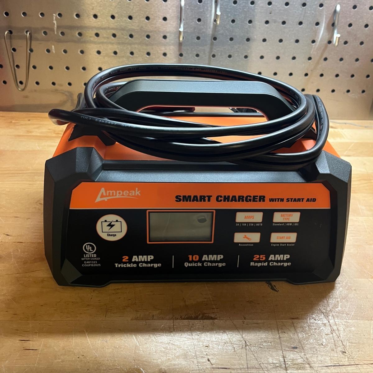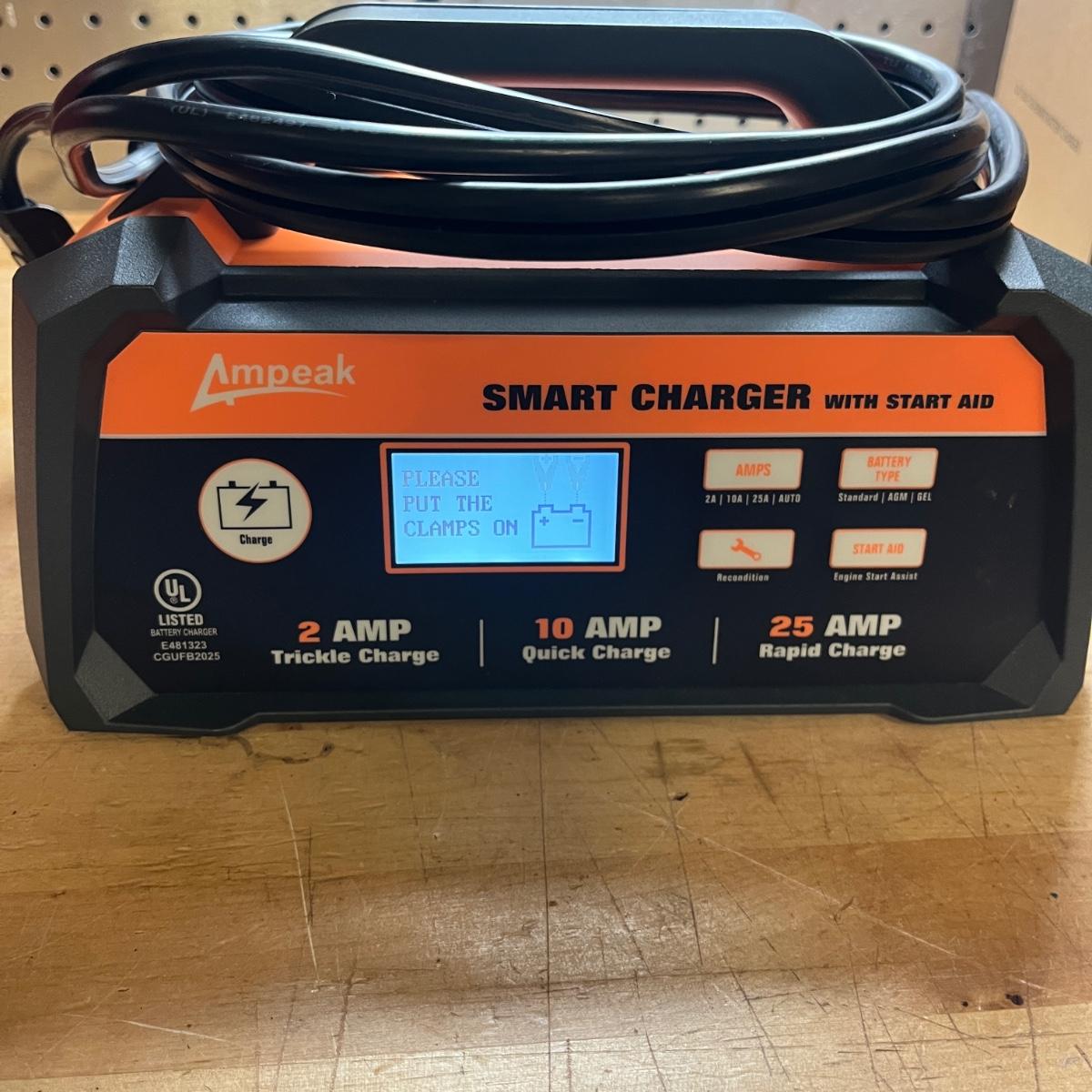 Lot includes a Garmin Nuvi 50LM, Ampeak smart battery charger, two pairs of jumper cables and a Rockwell 7” polisher. All items powered on when plugged in. Battery charger measures 10.5” x 8” x 7”H.