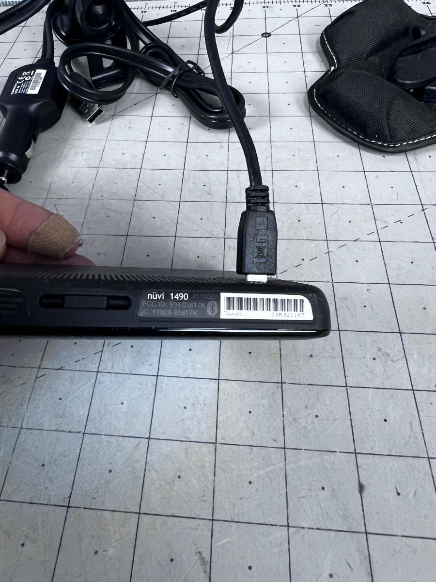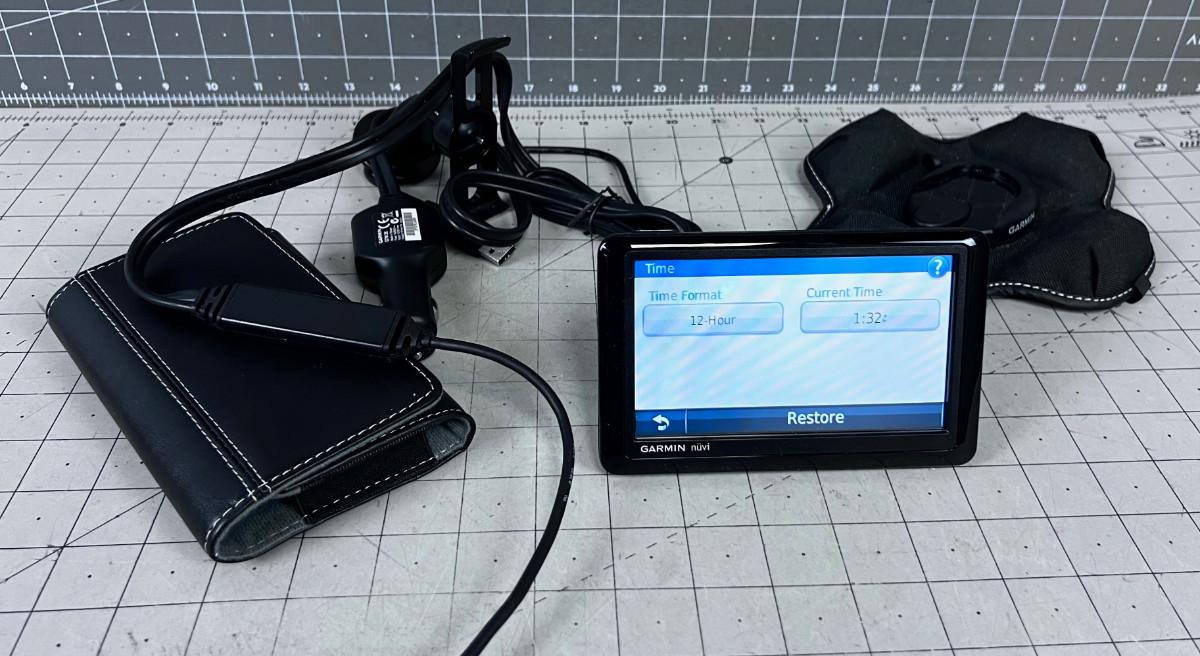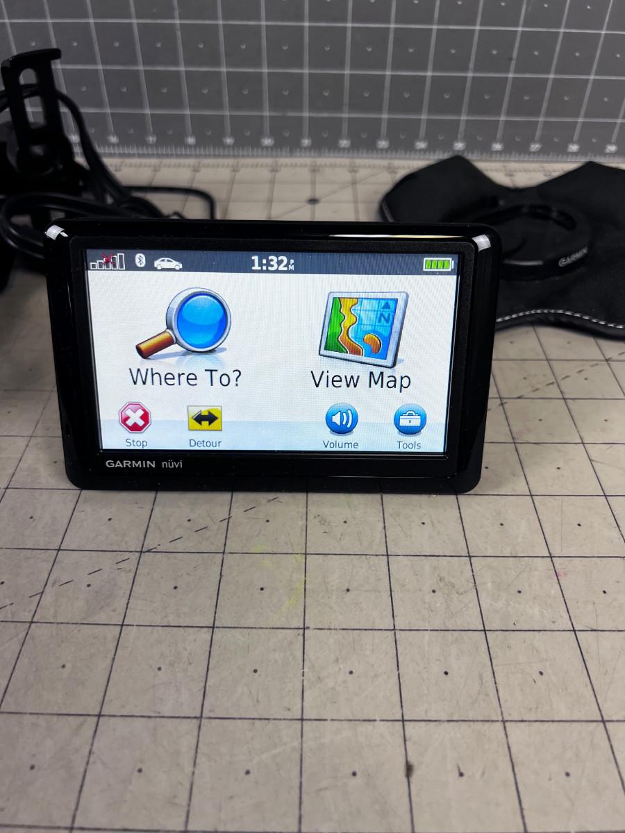 Works. Has charger and Bracket for the automobile. Plus a Case.