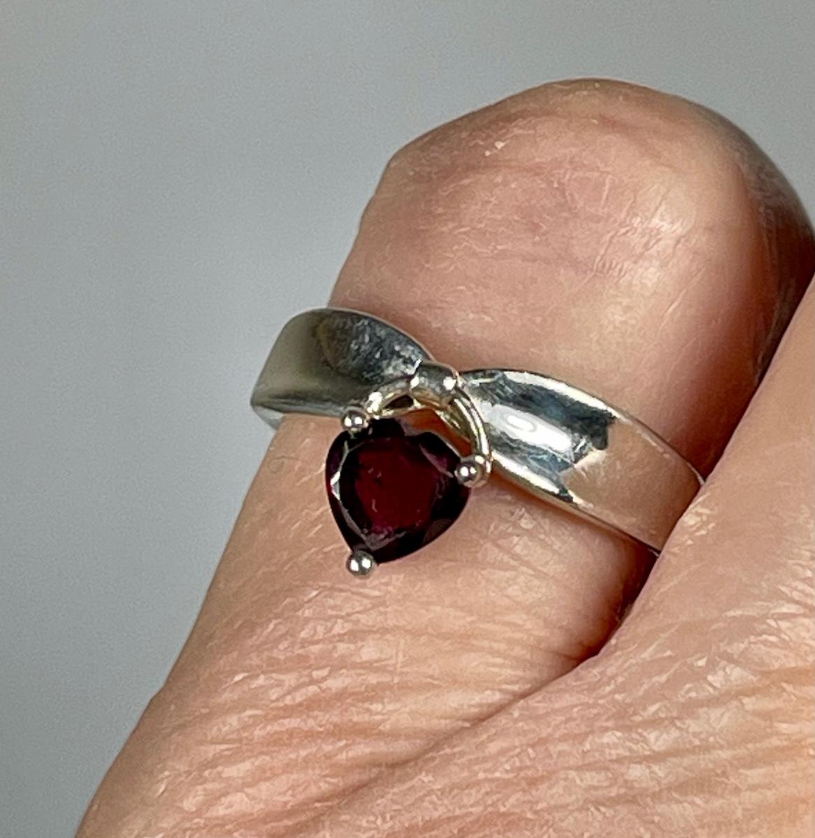 Garnet heart Sterling Silver ring 6