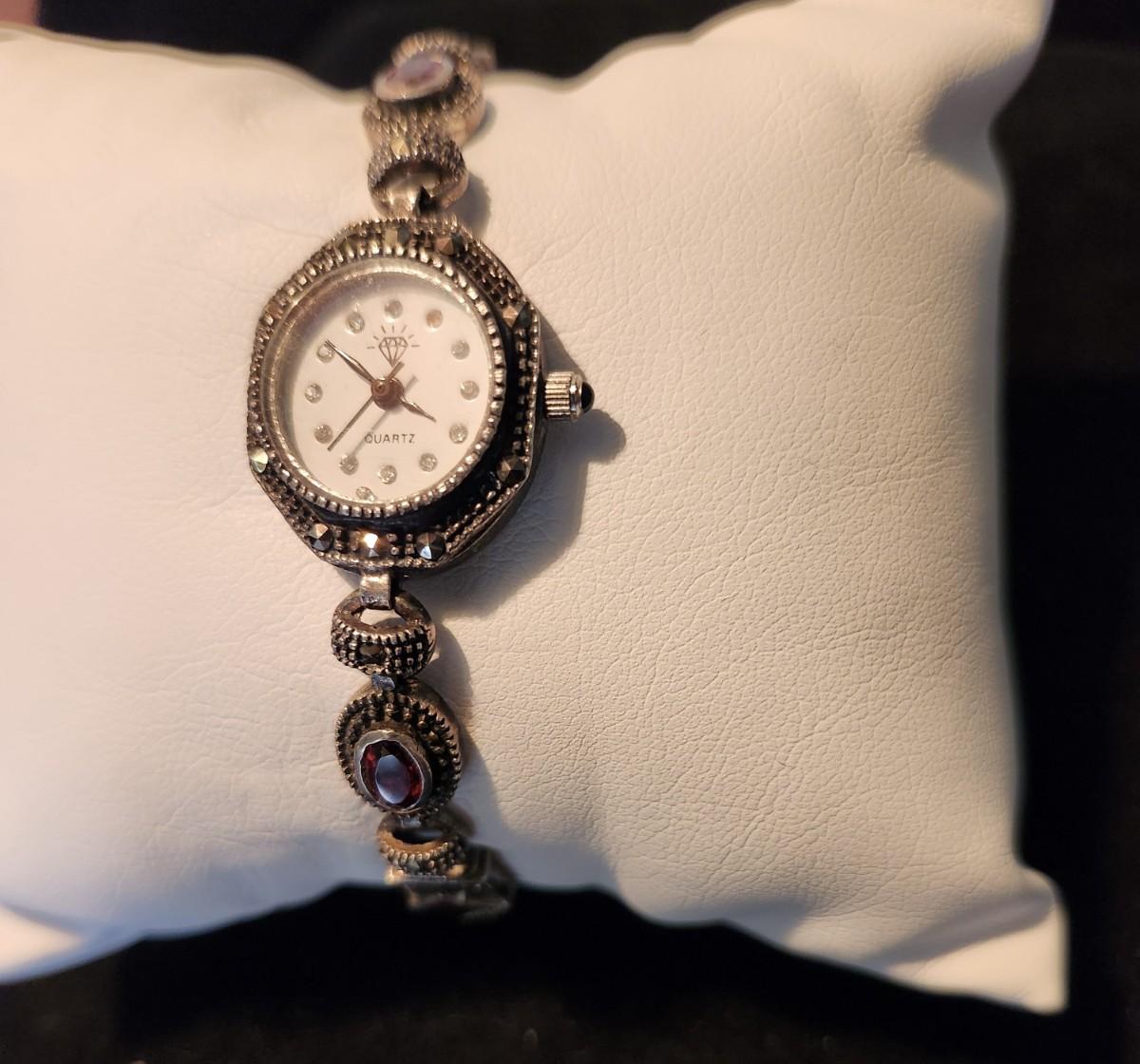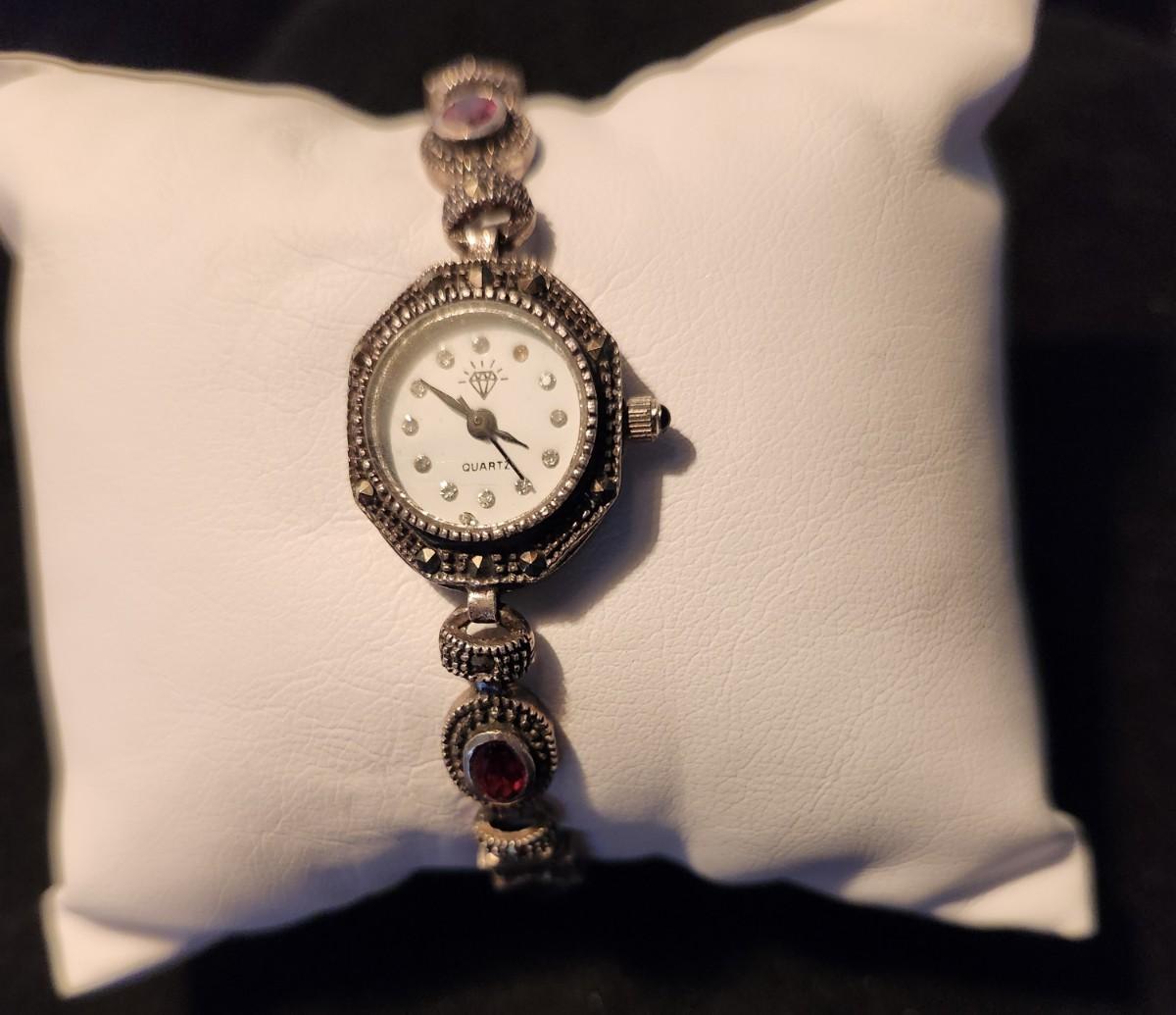 Garnet & Sterling Ladies Watch and Watchband