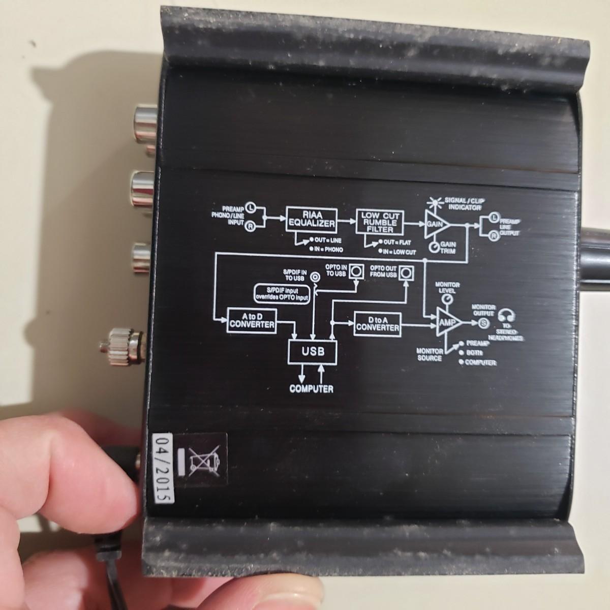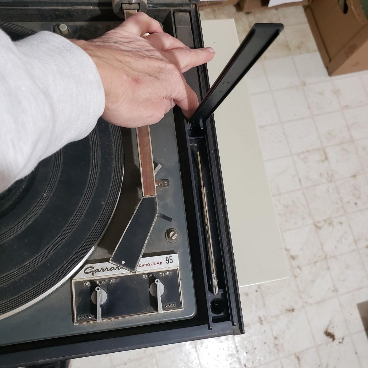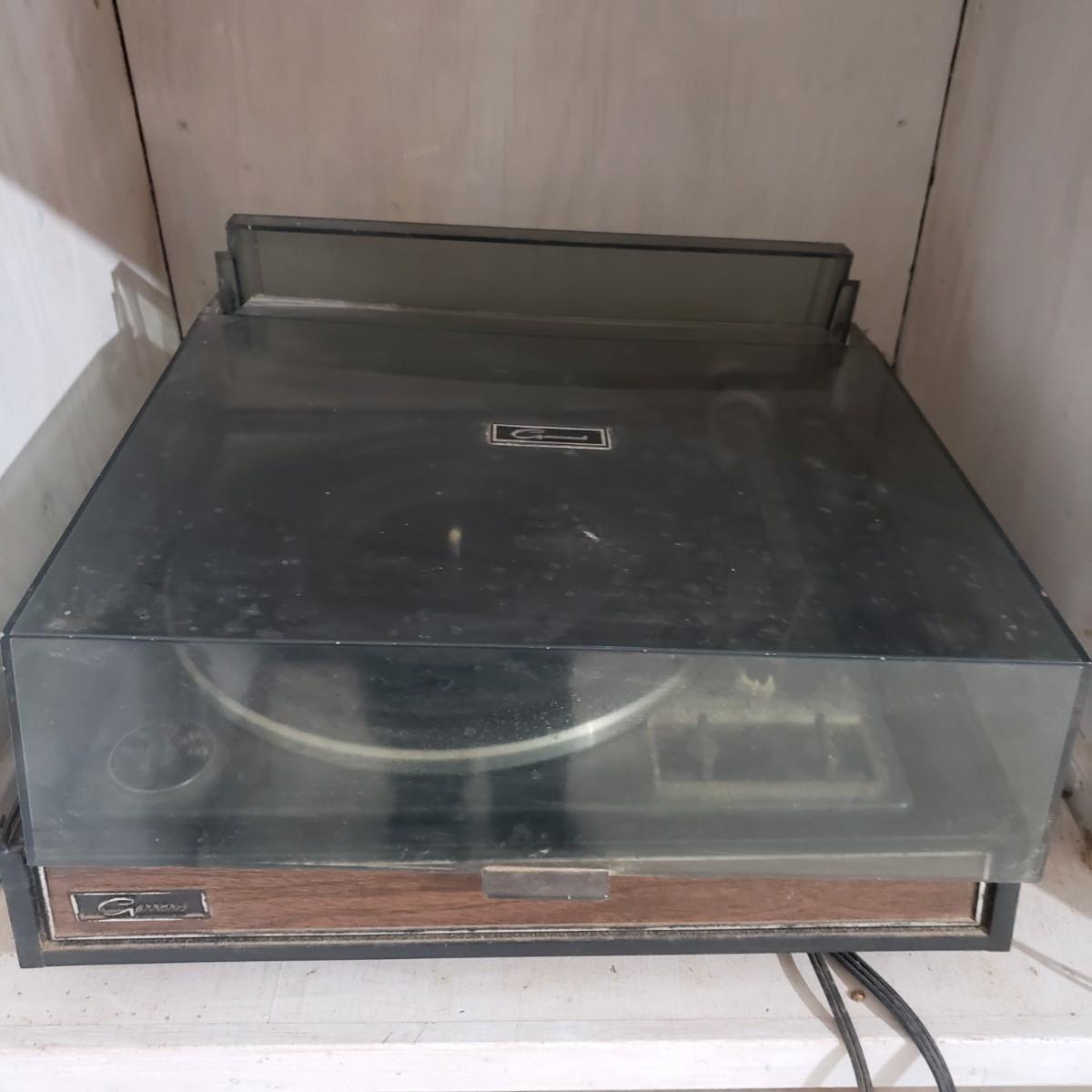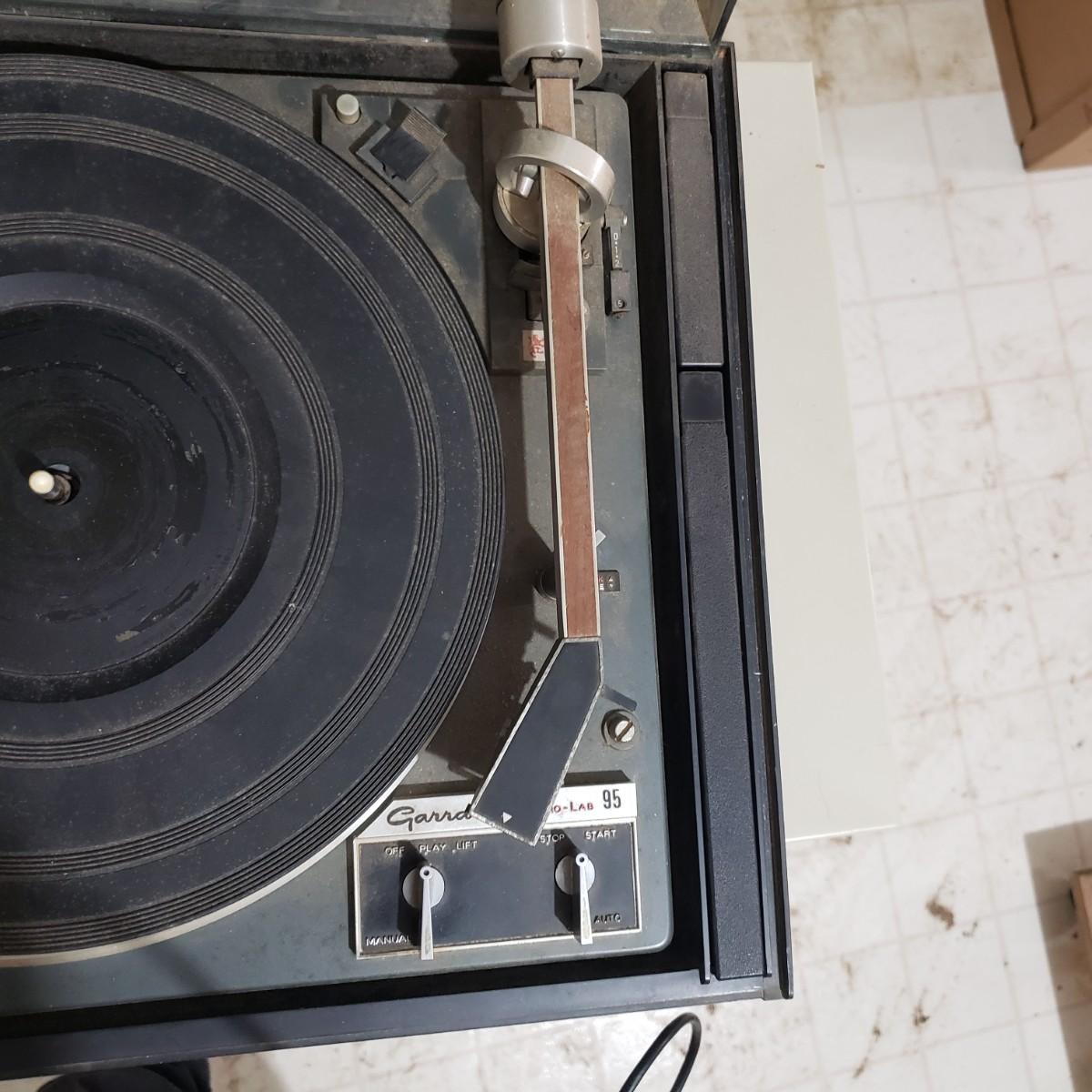 This vintage Garrard record player does power on when plugged in! We did not test a record on it. See pictures for details. The plastic lid is pictured separated from the base, but nothing appears broken, it needs adjustments, which we didn't want to push! Also included is a Project Series Audiophile Computer Interface. This interface connects your analog to digital sources that can transfer vinyl collections to your computer or laptop.