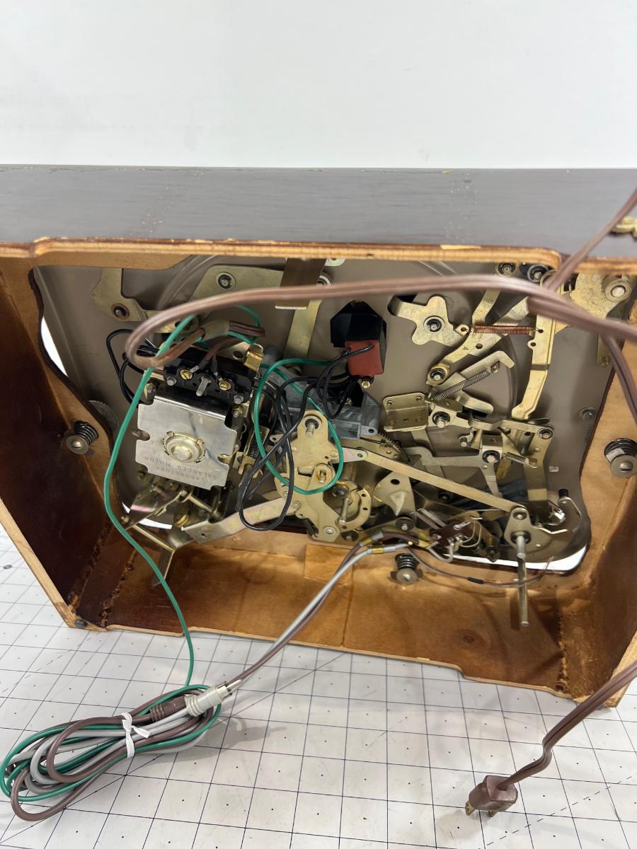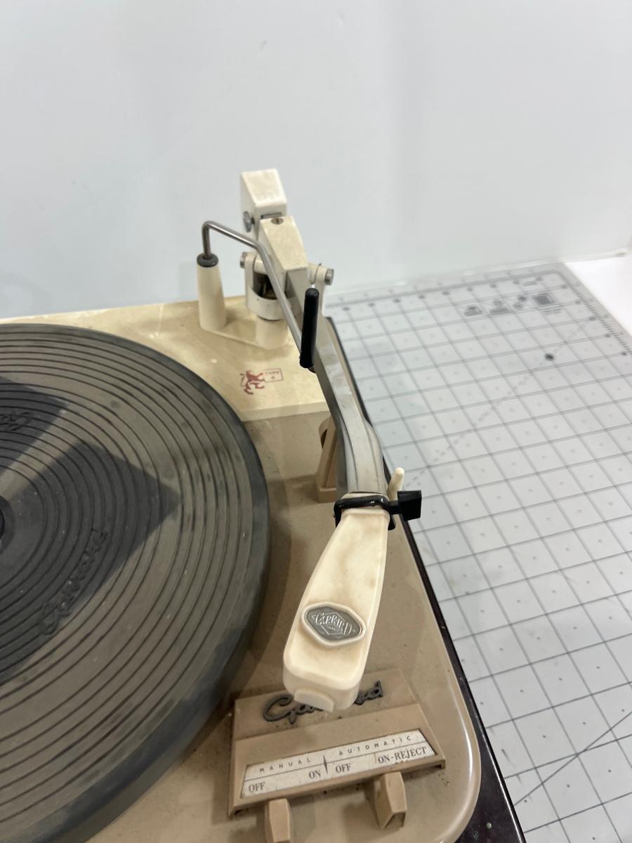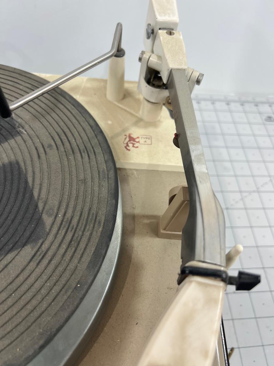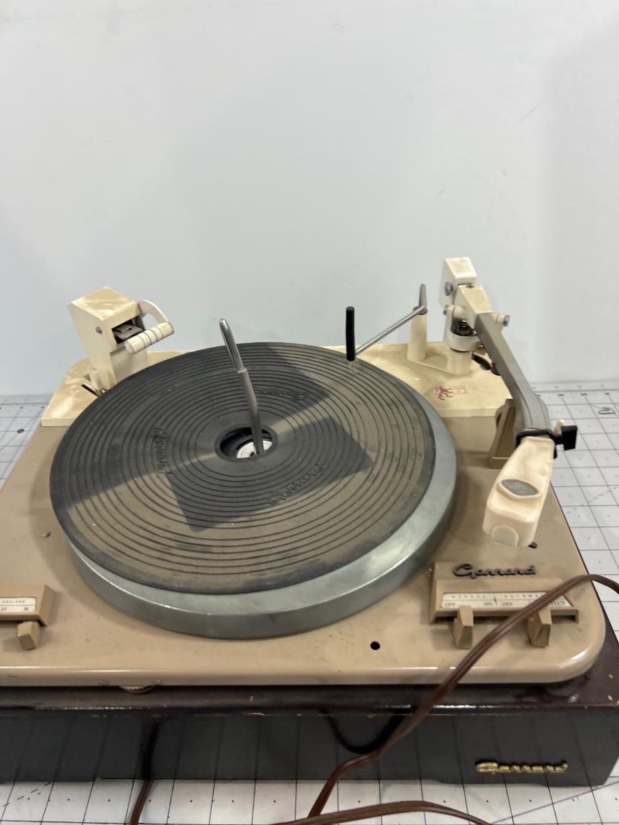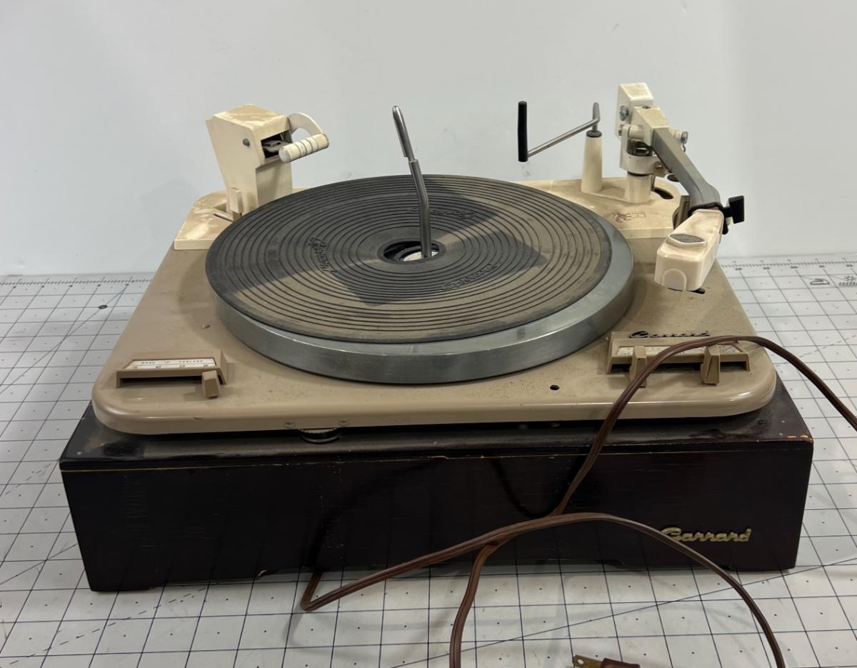 Used. Vintage. It powers up and Turn Table Works. No Lid. As is. Belt Drive.