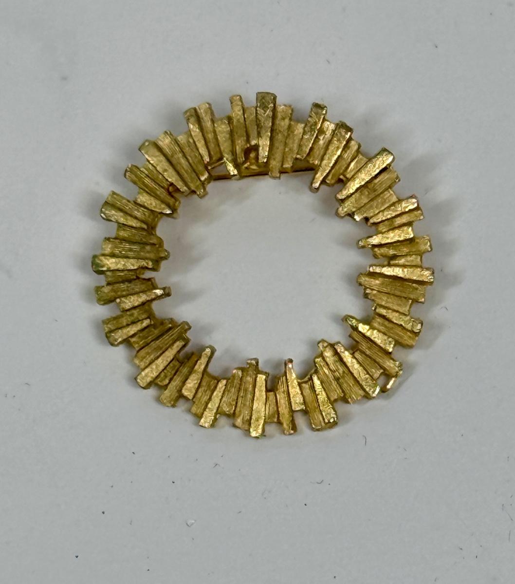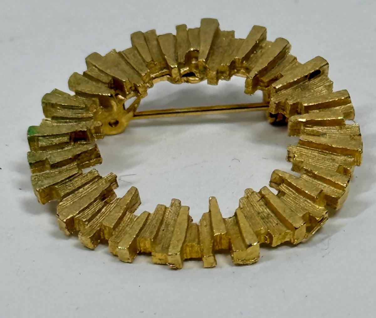 Vintage Gold Tone Geometric Wreath Brooch MCM 60s Unmarked Maker