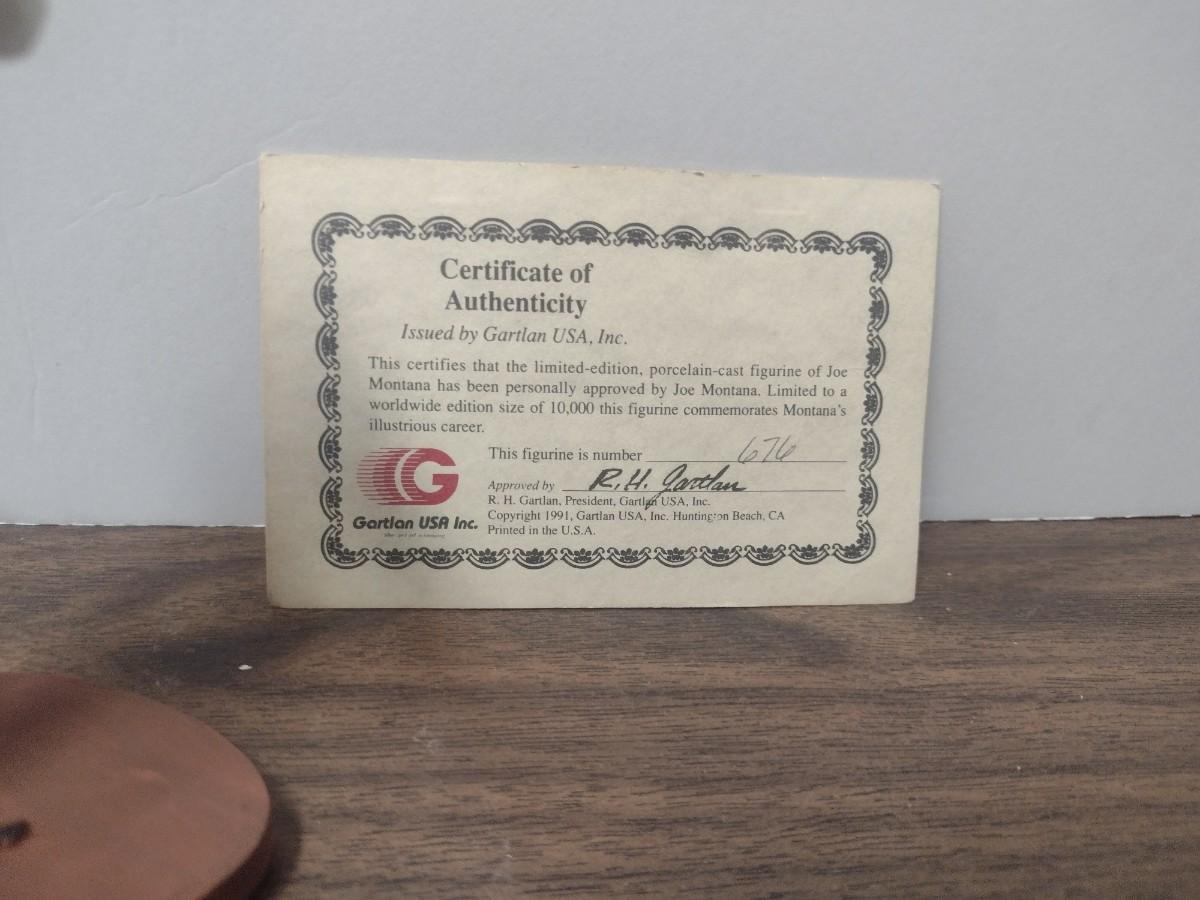 Gartlan Joe Montana White Jersey Small No. 676 Football Figurine with Box and COA
