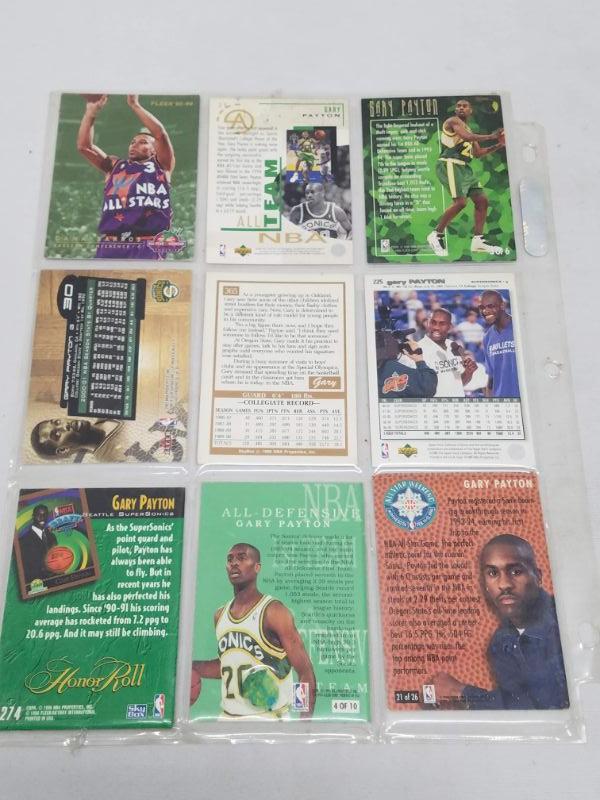 Gary Payton NBA Basketball Cards, Qty 9, 1990-2002