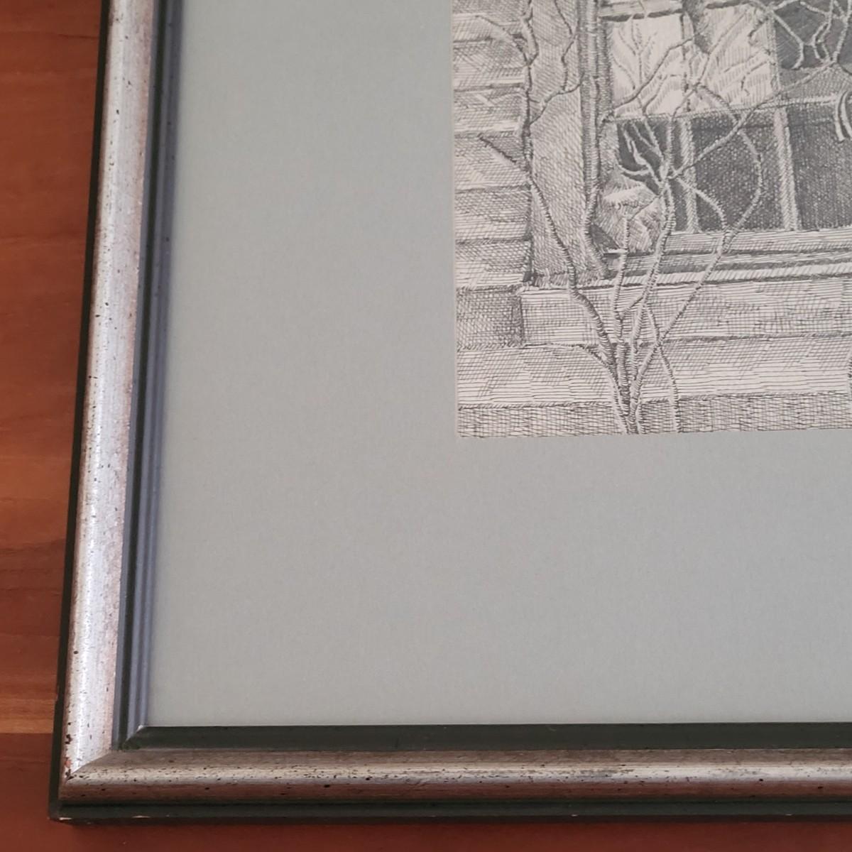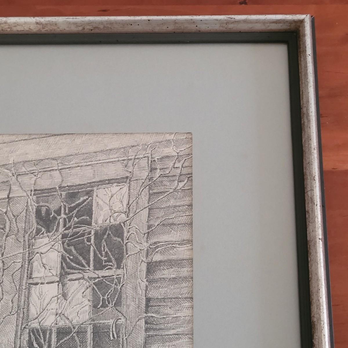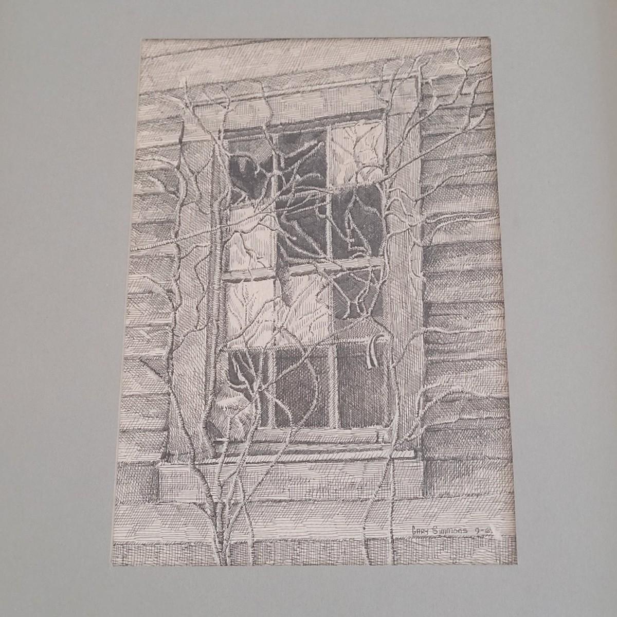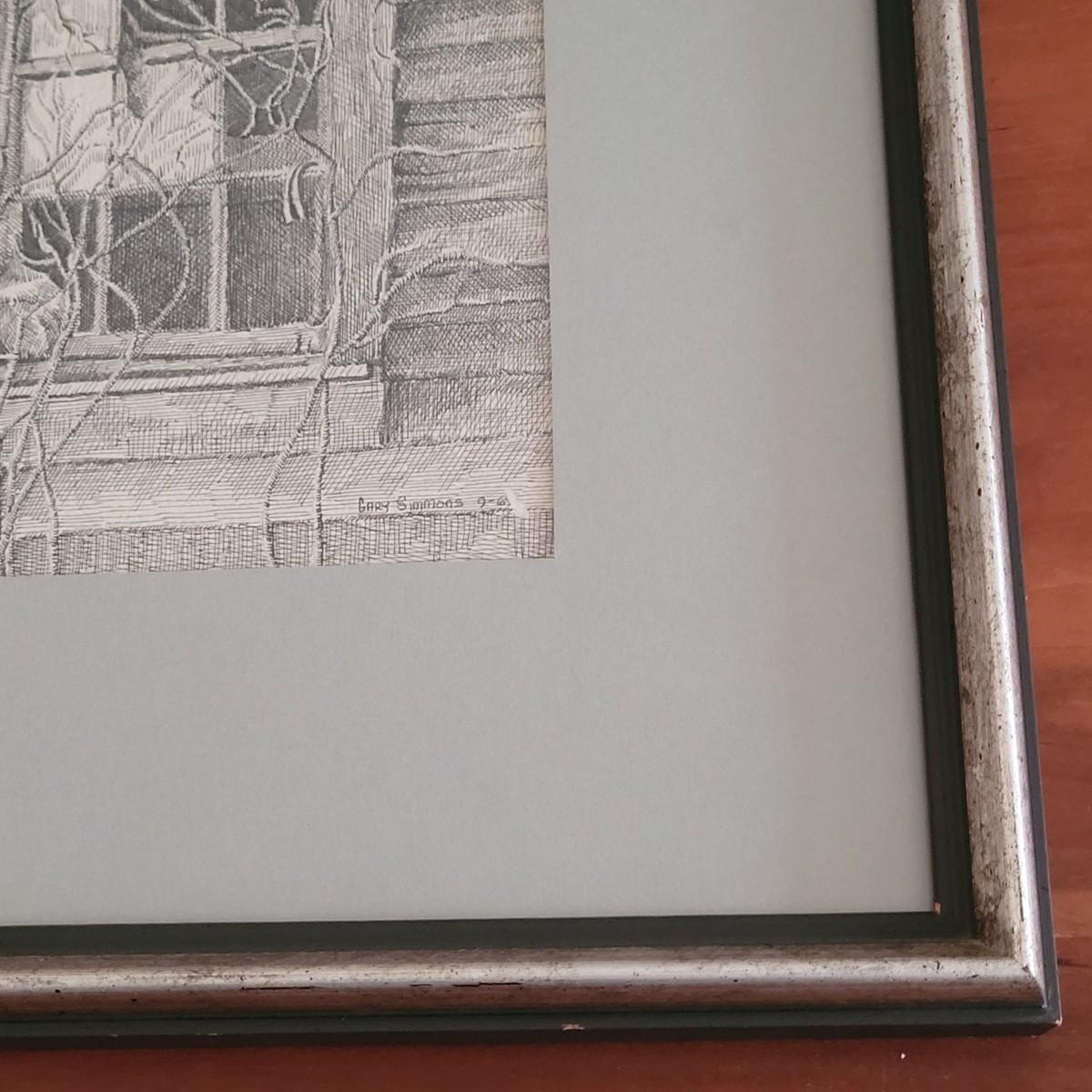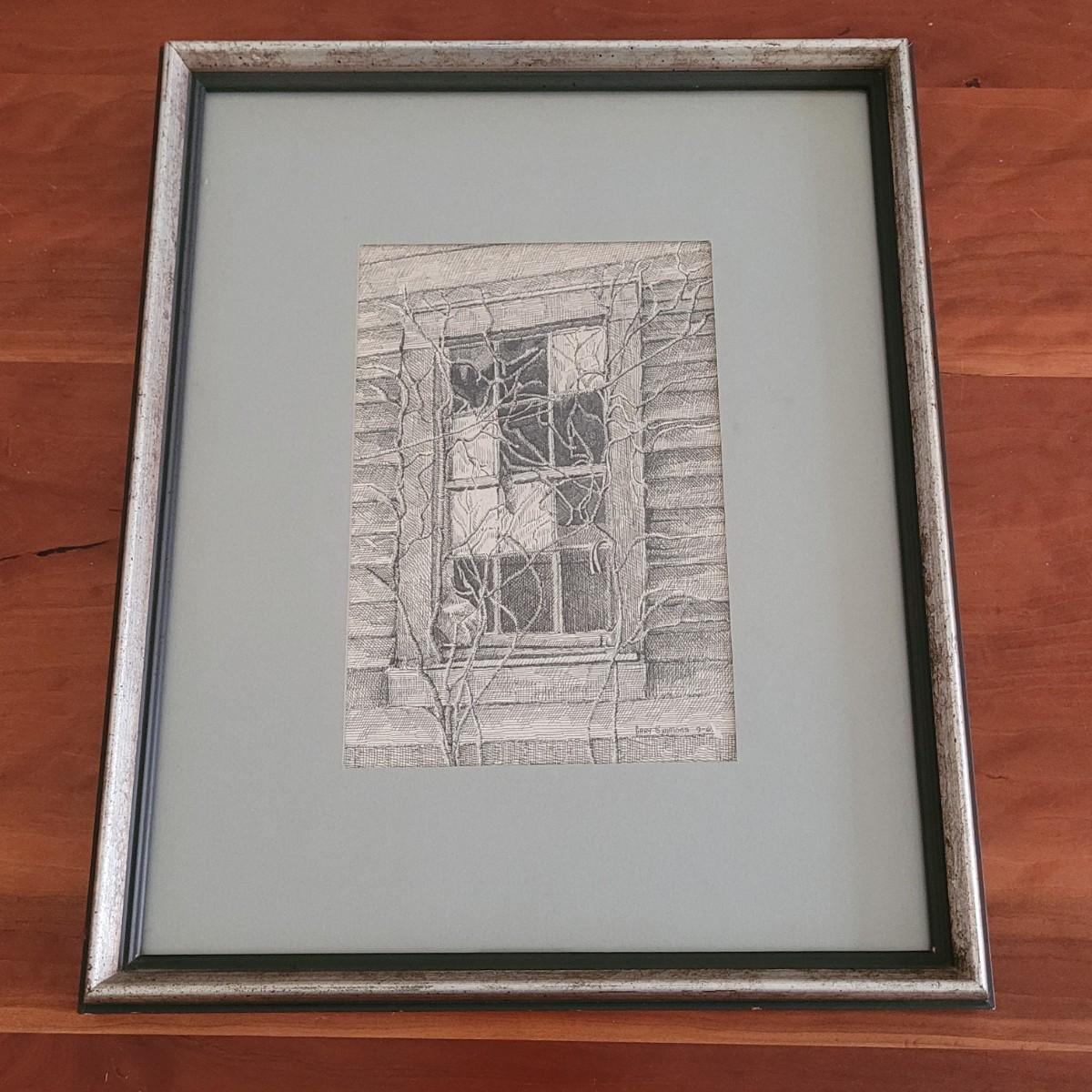 Piece appears to be by American artist Gary Simmons. It depicts a broken window with vines growing throughout. Signature and date in pen on the bottom right corner. Piece is matted and framed under glass. The frame measures 13" x 16"H. Please see photos for details.