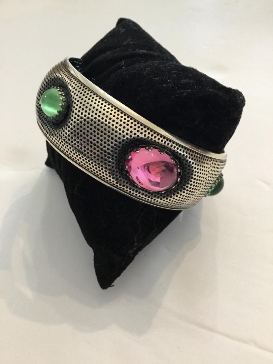 GAS bijoux pink and lime, green glass stones Silver or silver plated bangle bracelet very nice