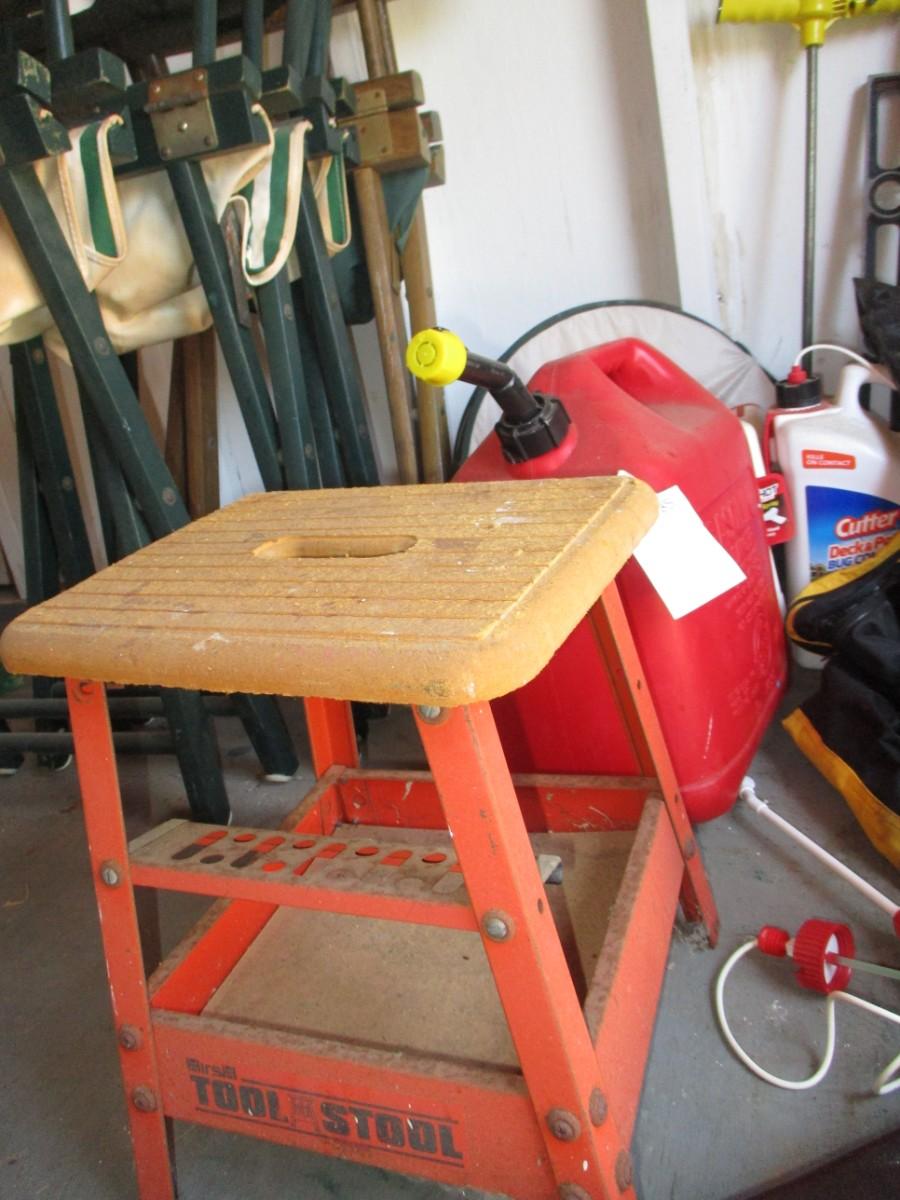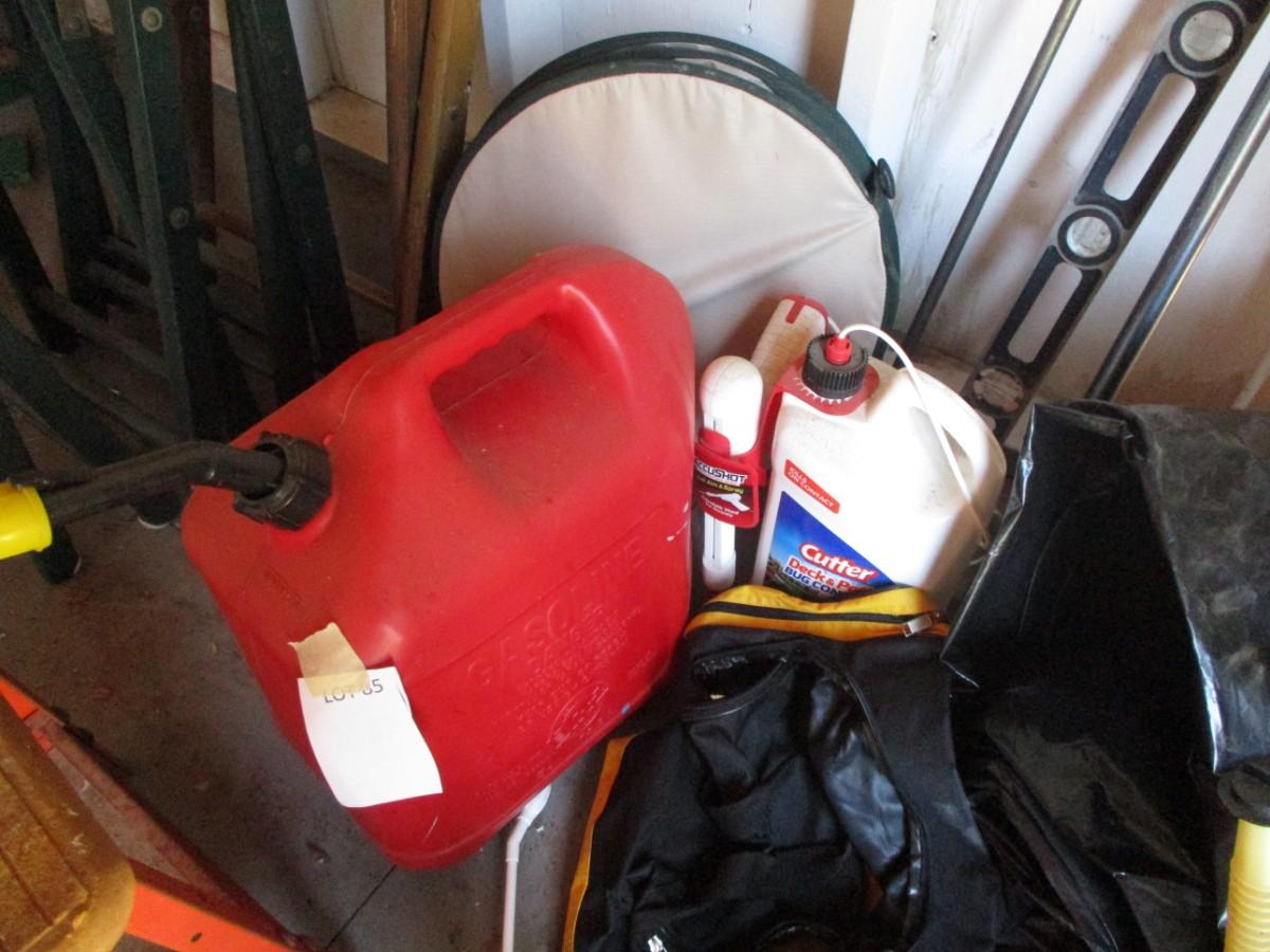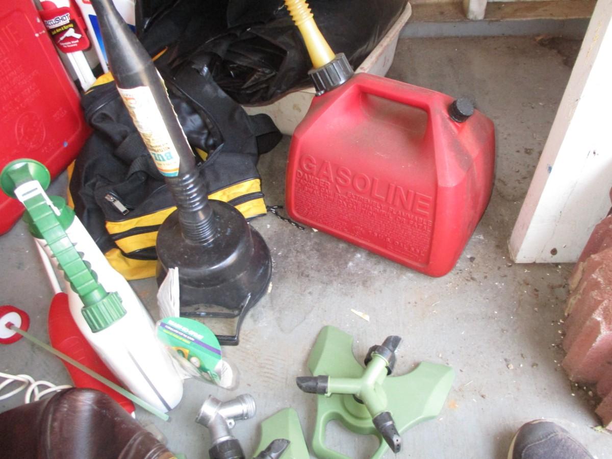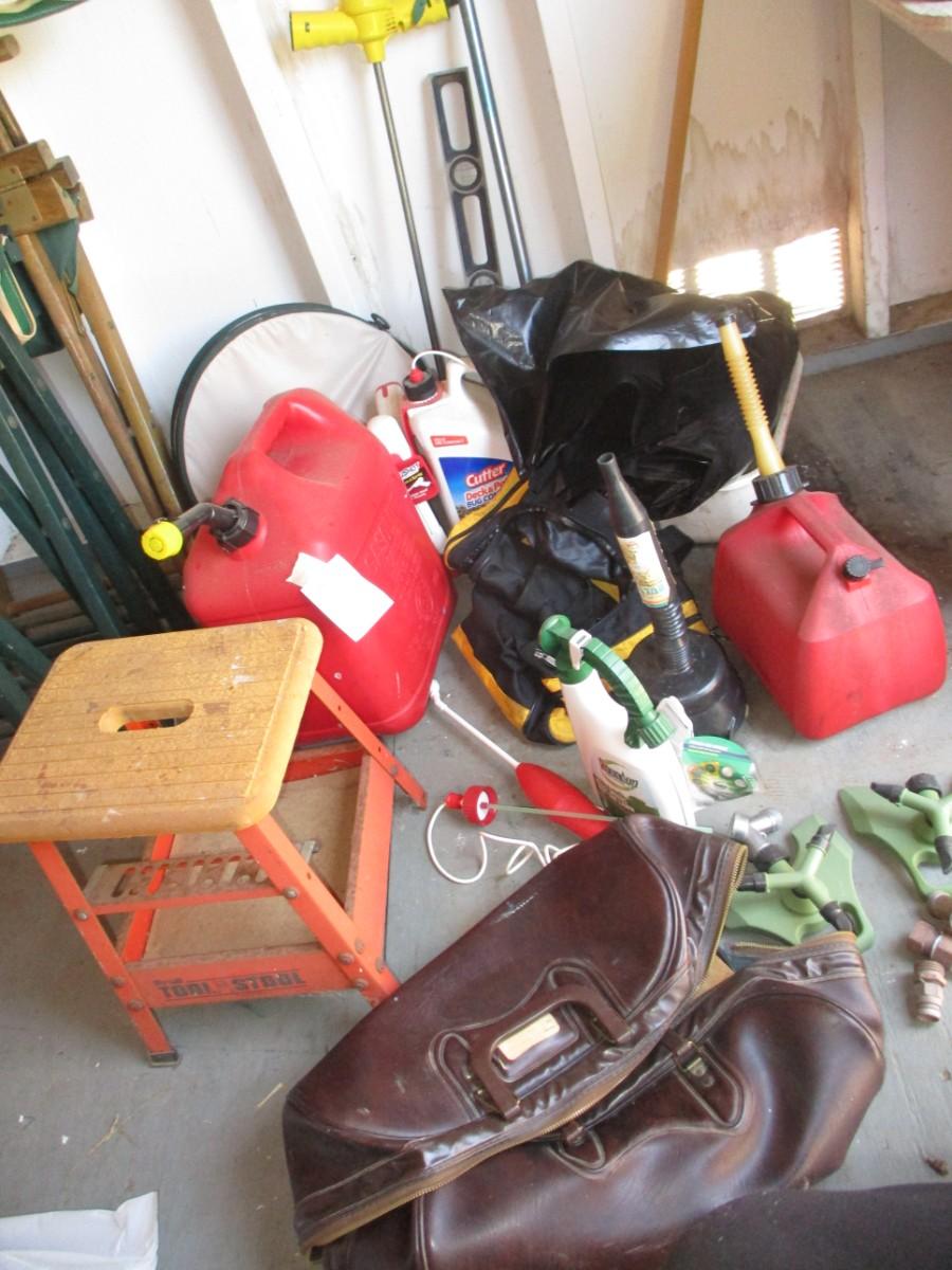 Gas jugs, shop stool, chemicals