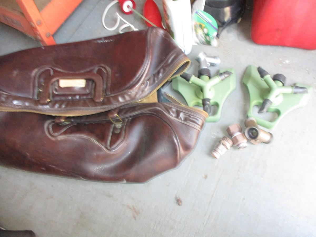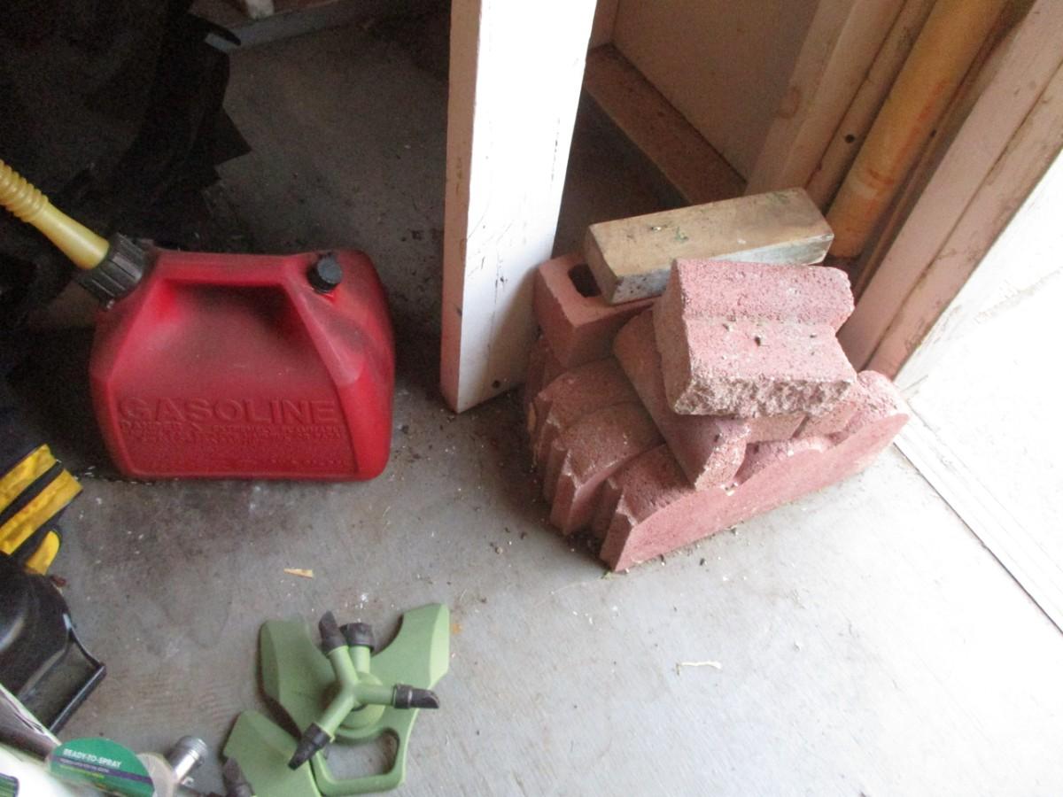 Brick trim, gas jugs, hamper, plunger, bowling ball
