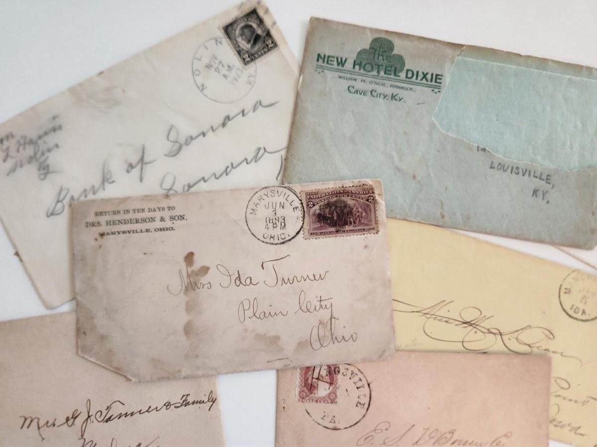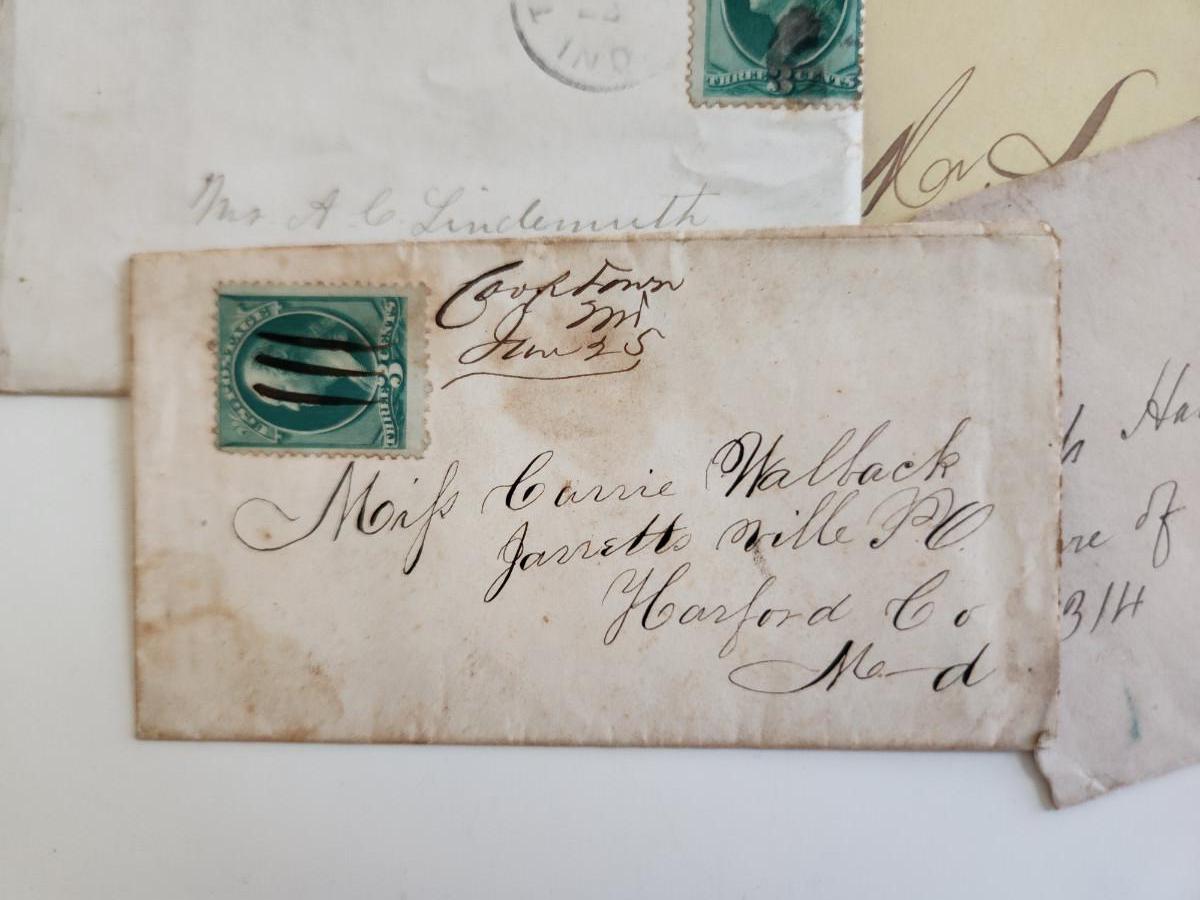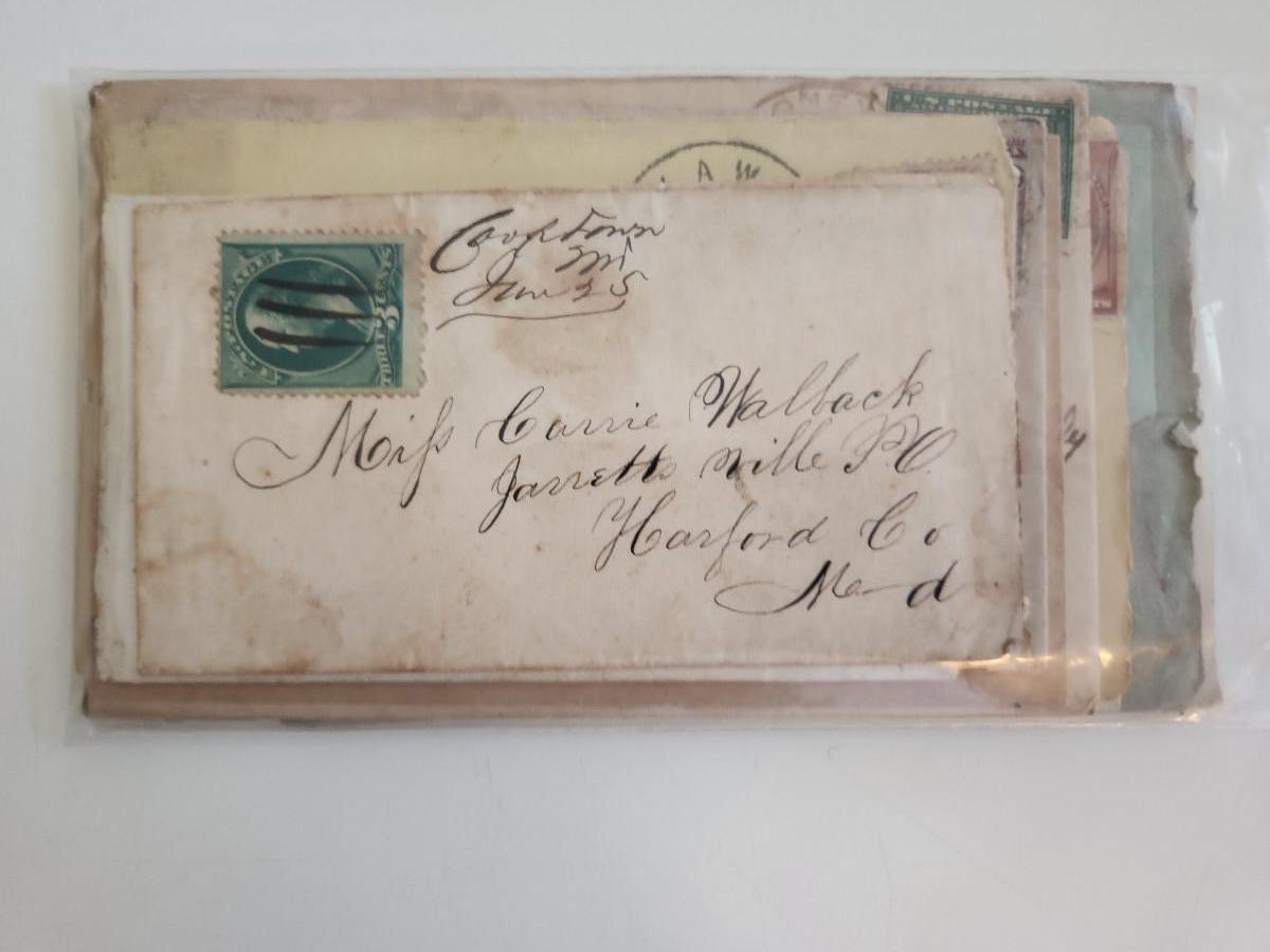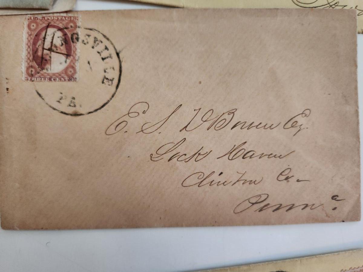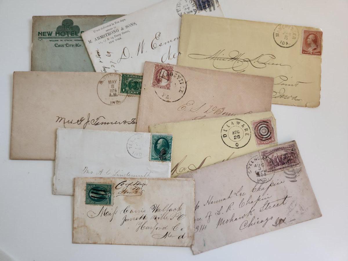 This auction lot is for a Gathering of Very Vintage Correspondence. This offering contains 11 envelopes with fun postmarks and unique handwriting - many contain letters or other contents. One item is dated 1869-ish. Great find for the history and/or ephemera lover.