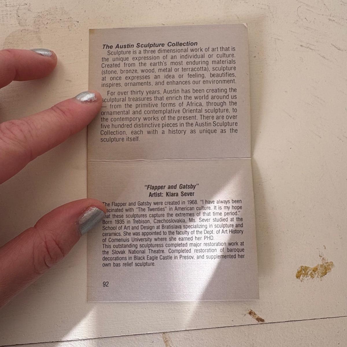 Gatsby & Flapper sculptures by Austin Productions. See picture of card for more information. Gatsby sculpture measures 5” x 6” x 27”H.
