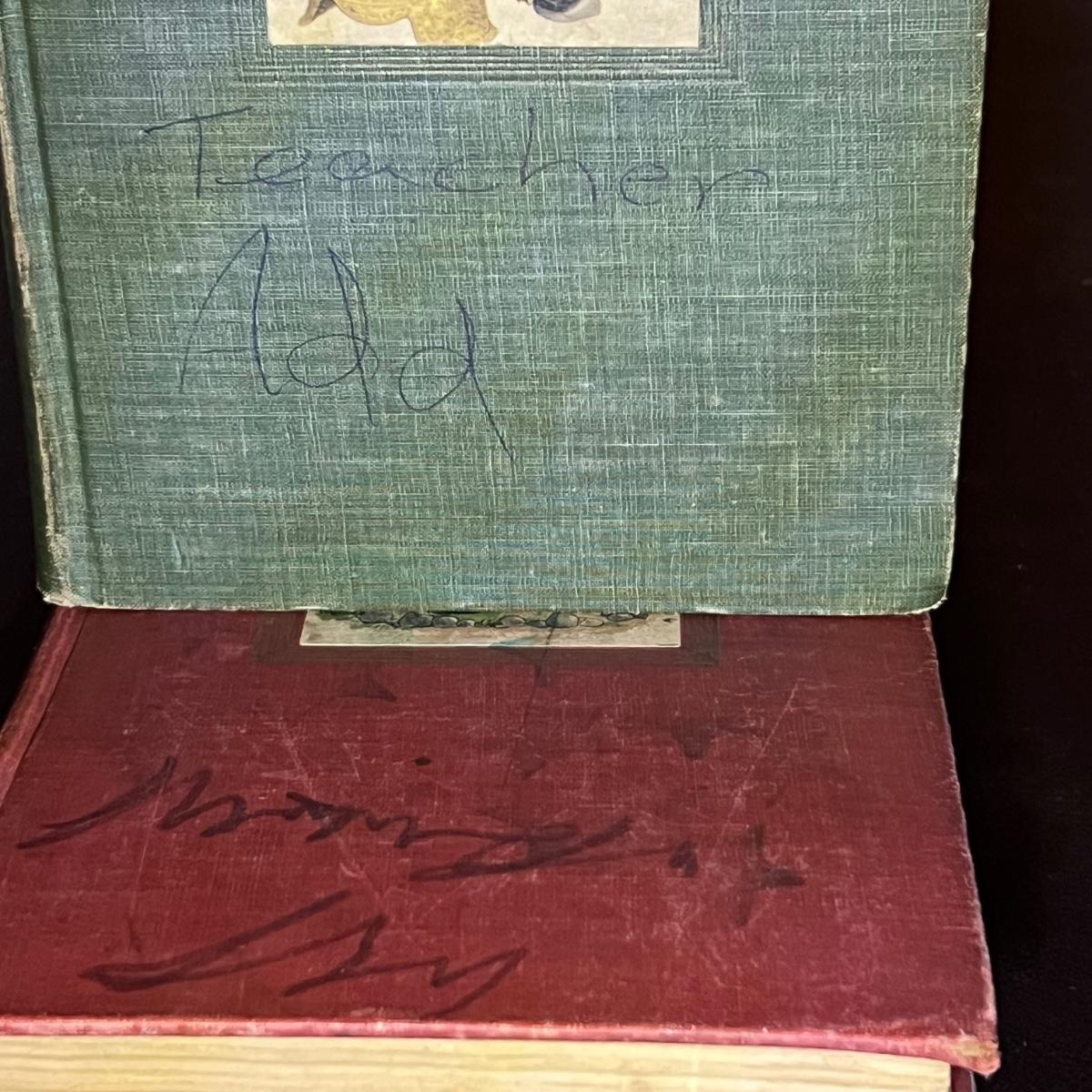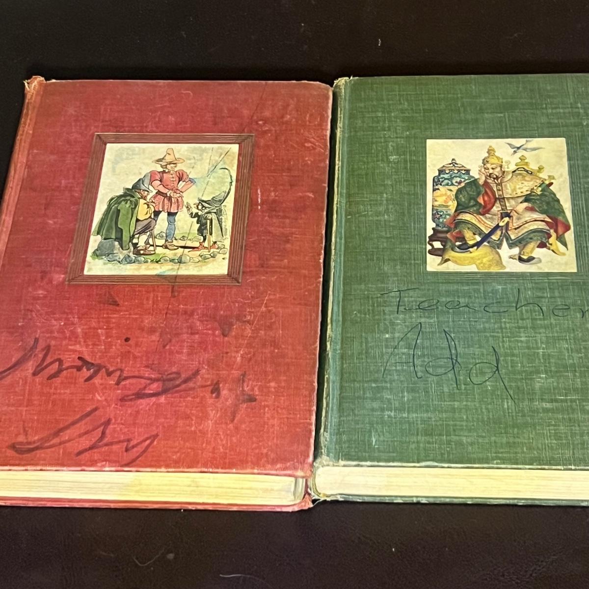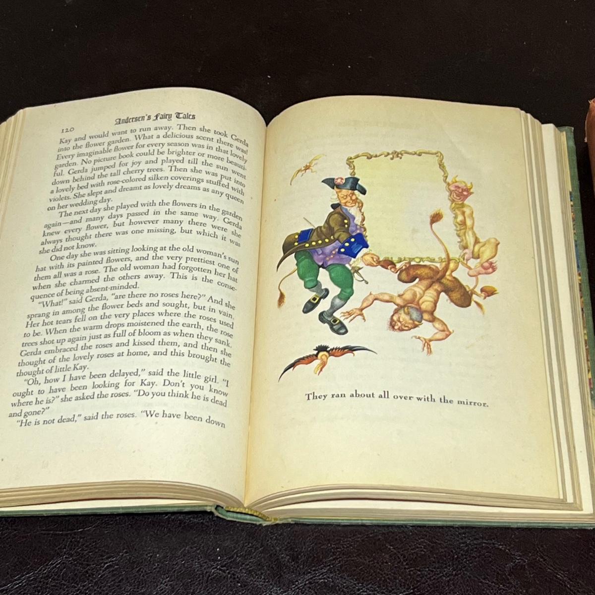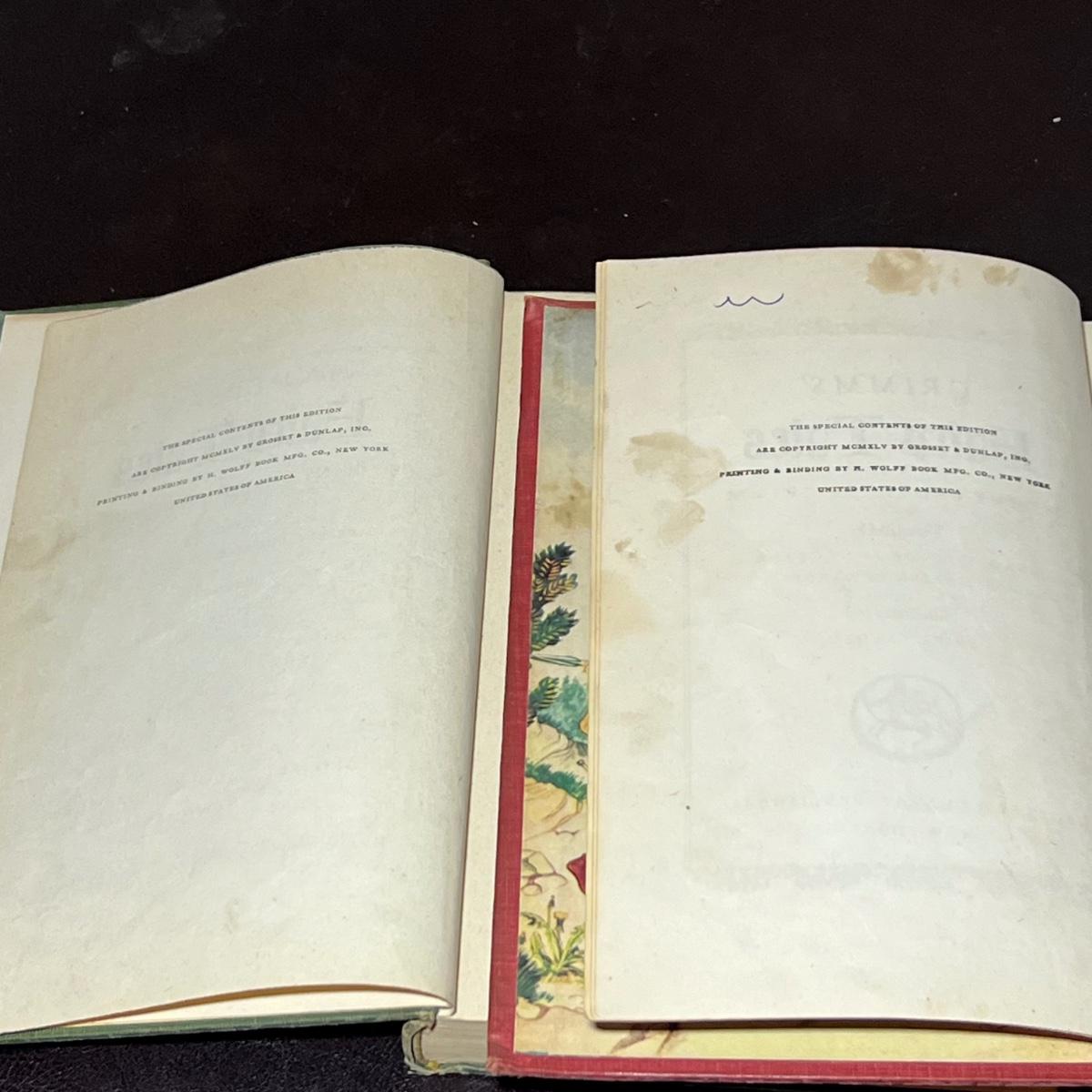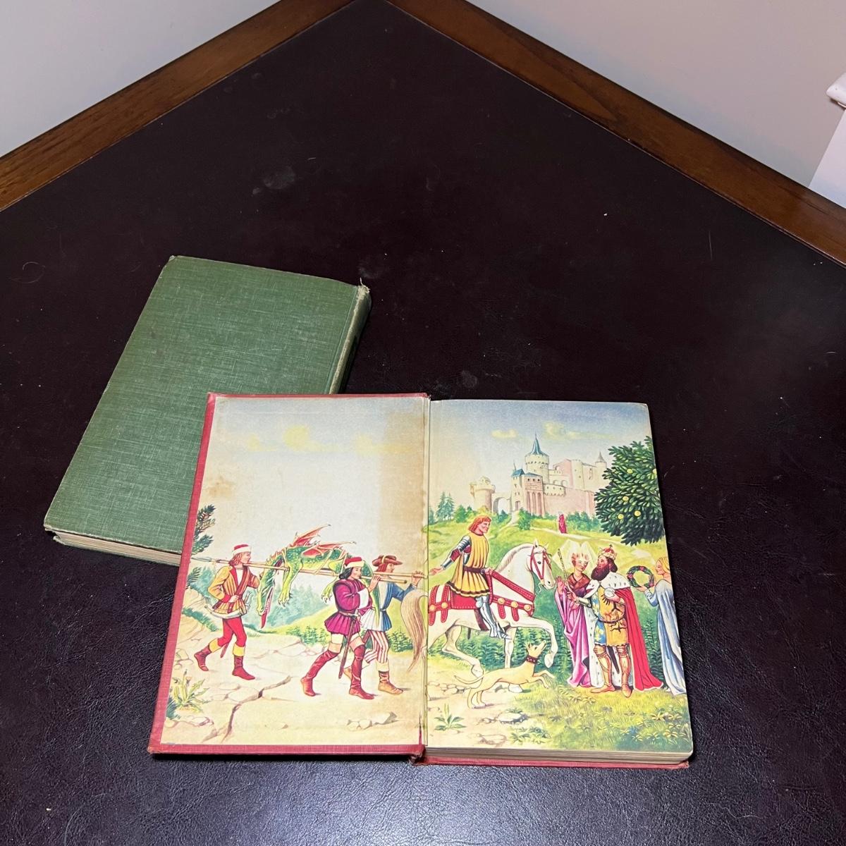 This pair of Gatco brass bookends are unicorns and they measure 4” x 2.5” x 7.5”H. Three books are included, see images for titles, etc and note the two fairy tales books have been written on, on their covers.