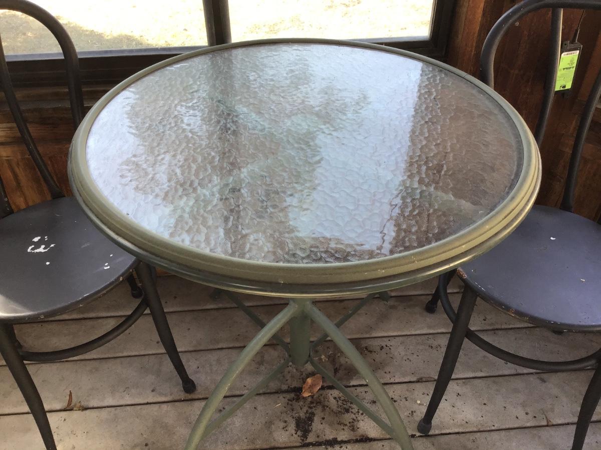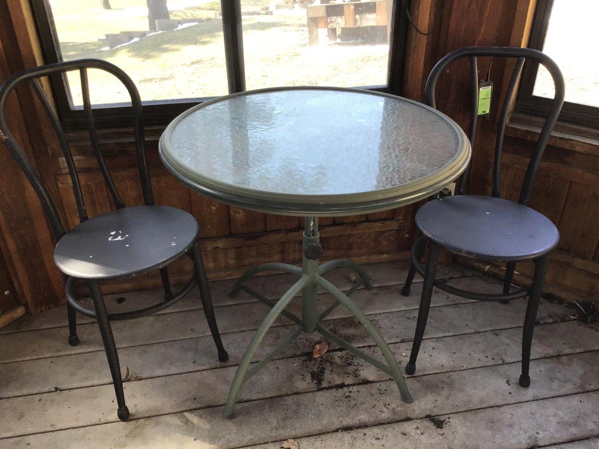 GAZ1205 - Round Glass Top Table & 2 Metal Bistro Chairs