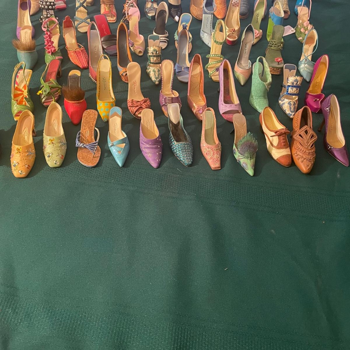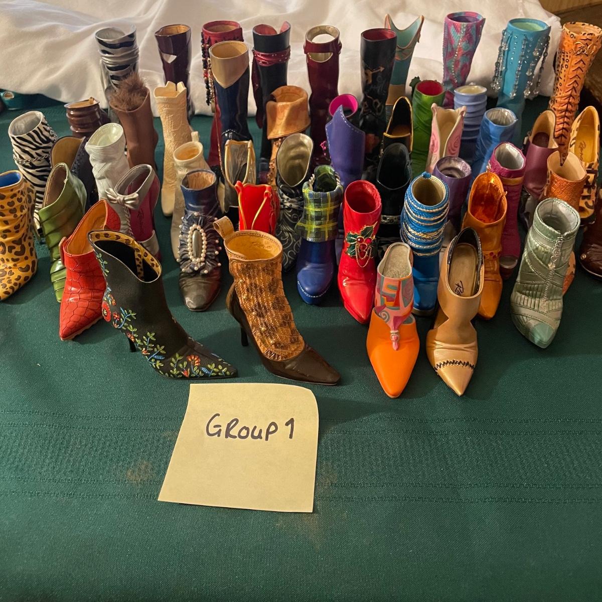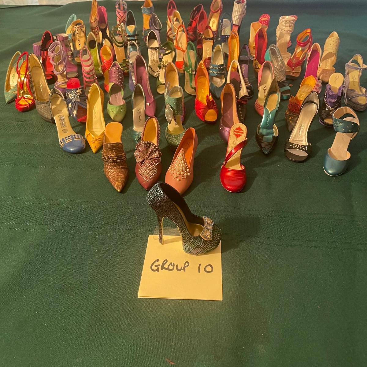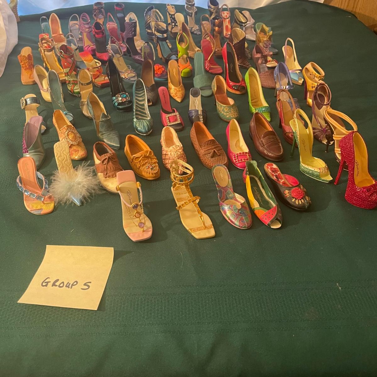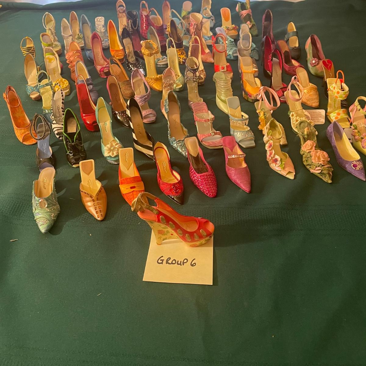 Over 600 collectible miniature shoes from the “˜Just the Right Shoe" collection that includes some rare and hard to find shoes such as three Breast Cancer shoes (Fresia, Sweet Pea & Delicate Daisies). In order to see the shoes more easily in the photos or in person, we have grouped them together with approx 75 in each grouping, but all of these are sold together in this one lot. This lot also includes a large number of original boxes but we were unable to match up with the corresponding shoes. Buy the lot and take the time to match up shoes and boxes and you will add some value! Note that the last two pictures of bags and boxes are all full of the mini shoe boxes.
