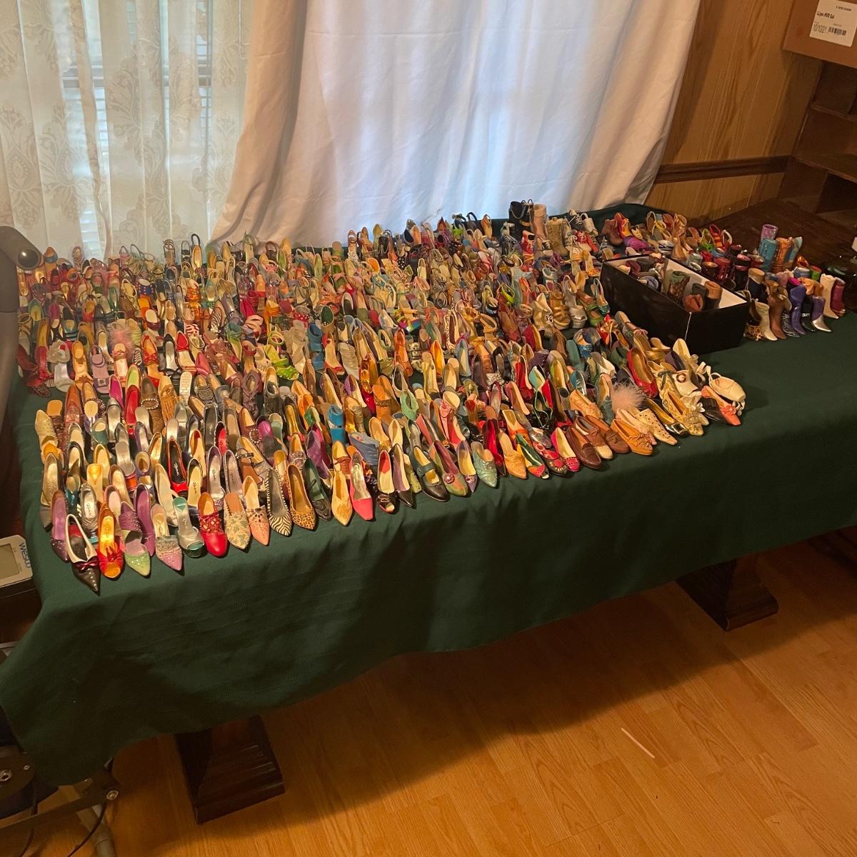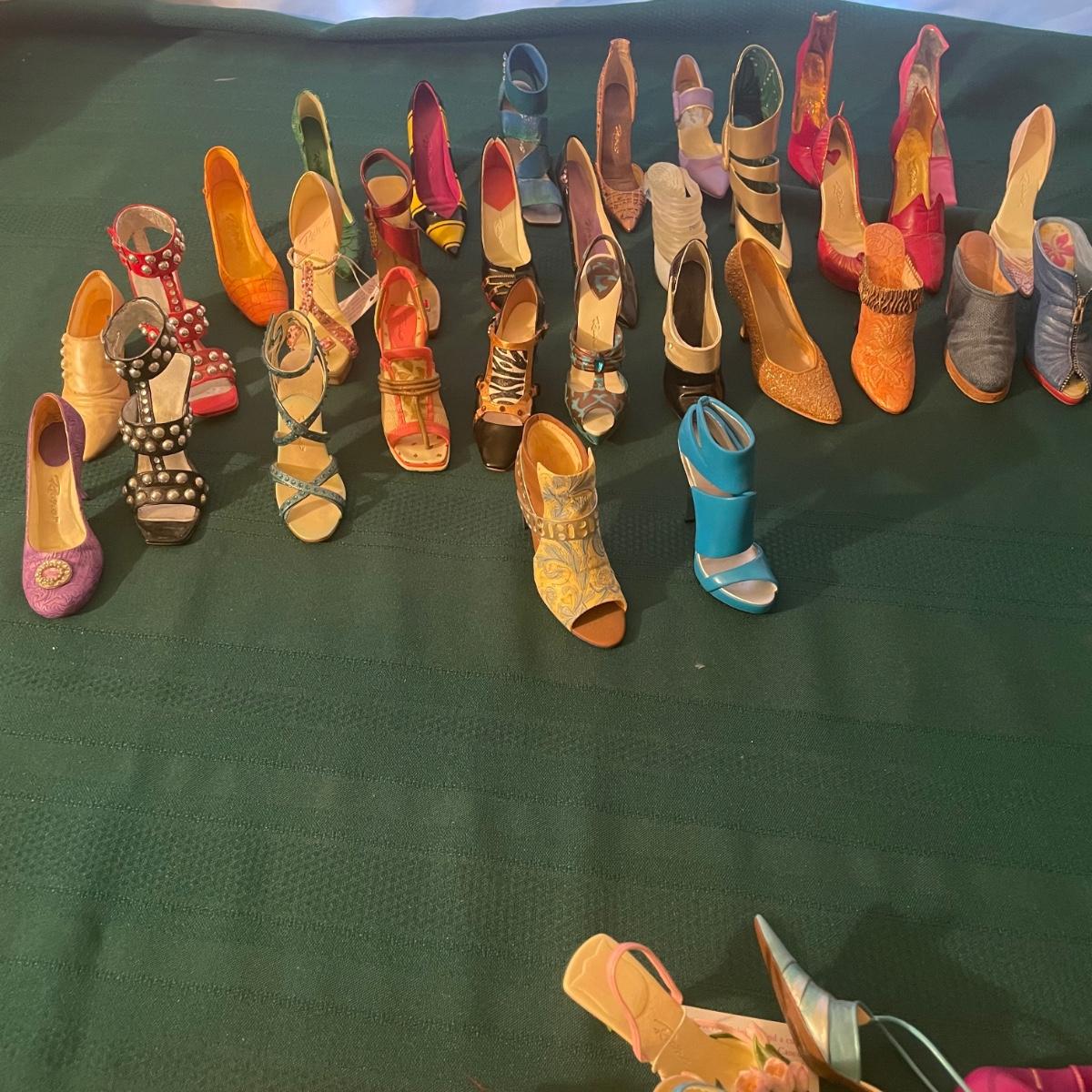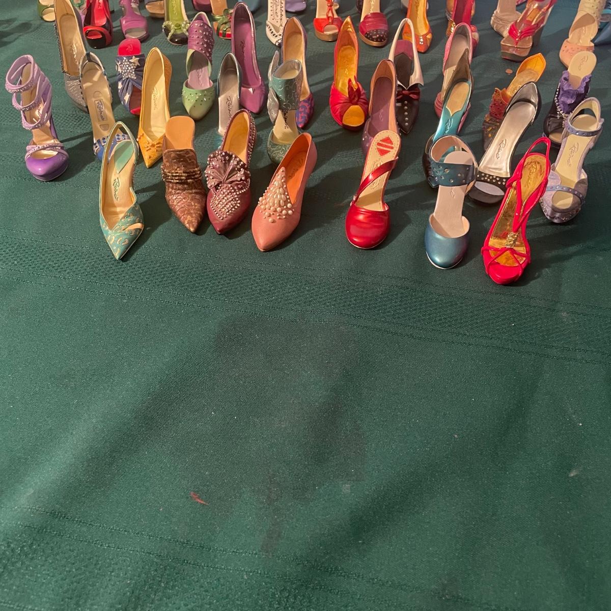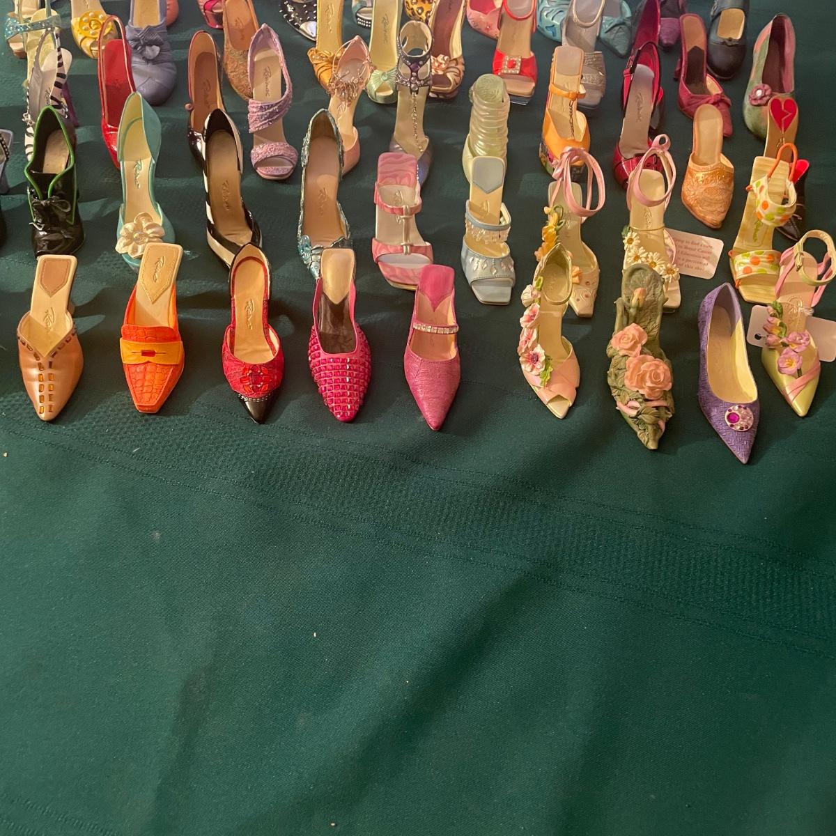 Over 600 collectible miniature shoes from the “˜Just the Right Shoe" collection that includes some rare and hard to find shoes such as three Breast Cancer shoes (Fresia, Sweet Pea & Delicate Daisies). In order to see the shoes more easily in the photos or in person, we have grouped them together with approx 75 in each grouping, but all of these are sold together in this one lot. This lot also includes a large number of original boxes but we were unable to match up with the corresponding shoes. Buy the lot and take the time to match up shoes and boxes and you will add some value! Note that the last two pictures of bags and boxes are all full of the mini shoe boxes.
