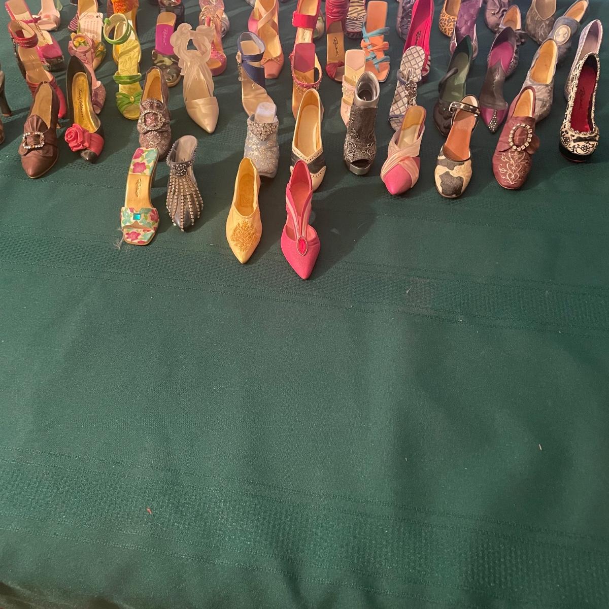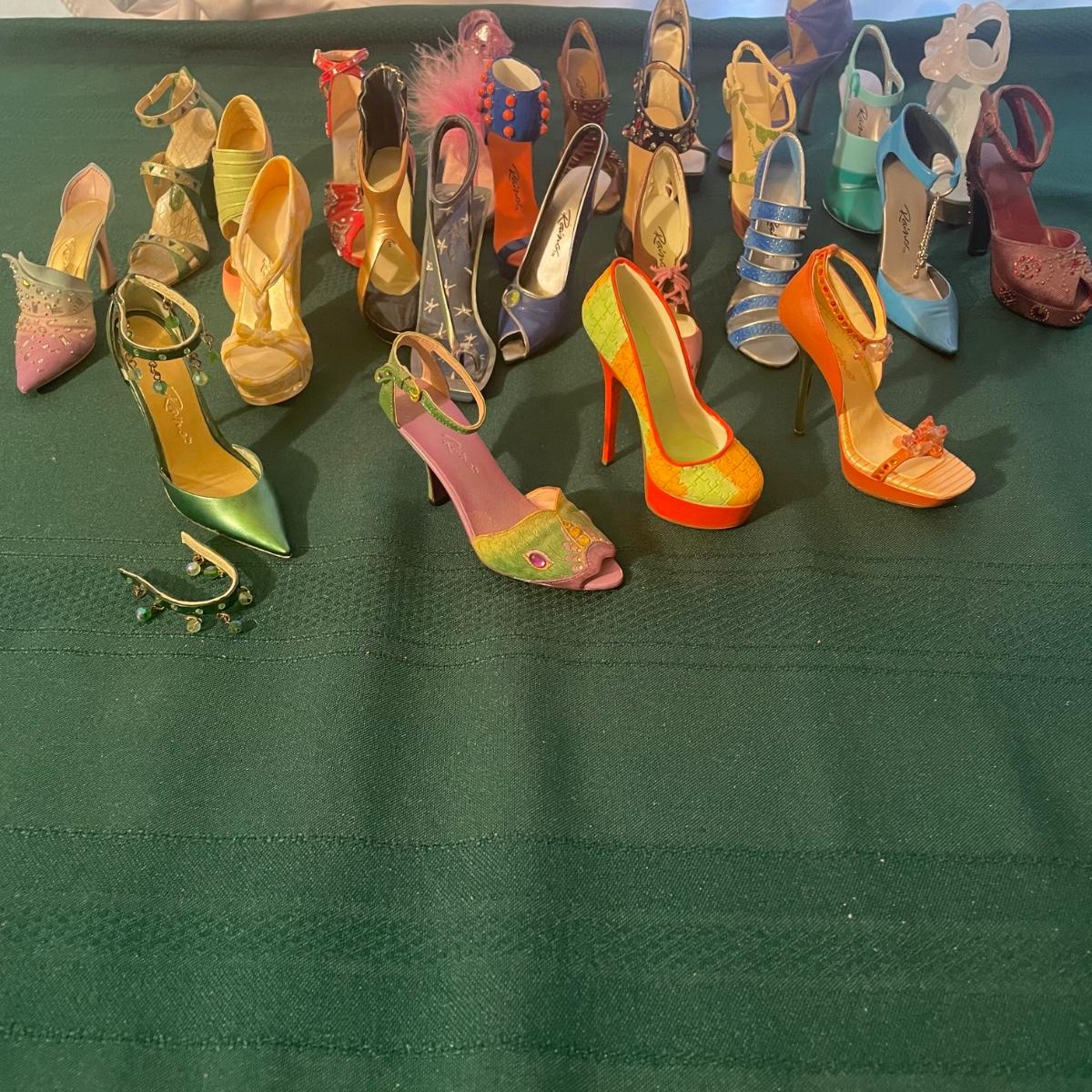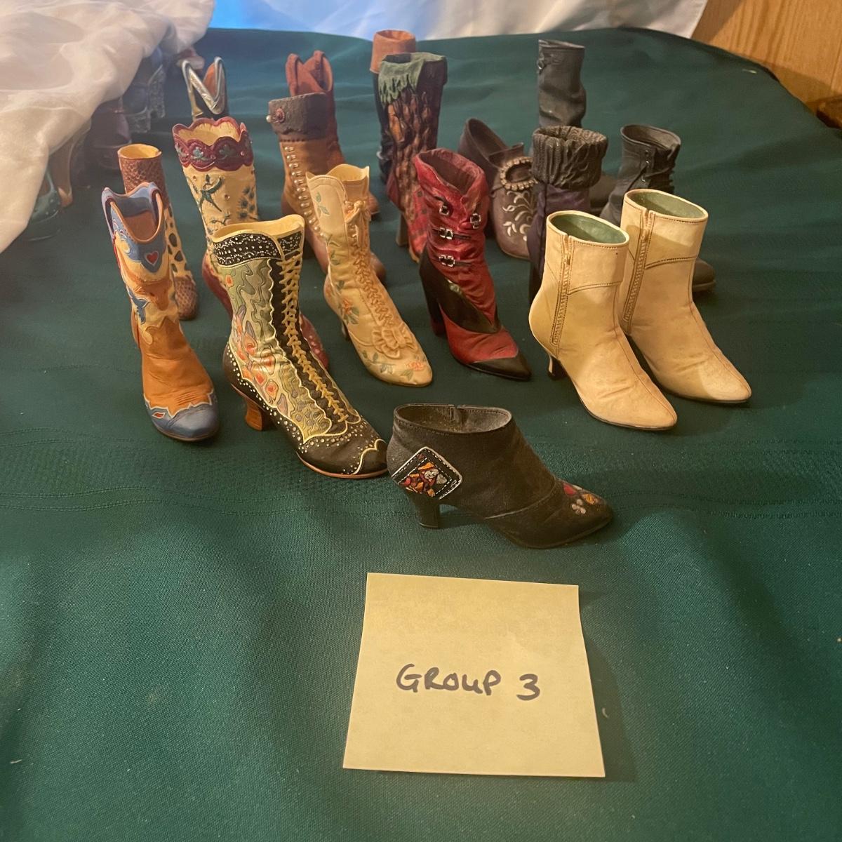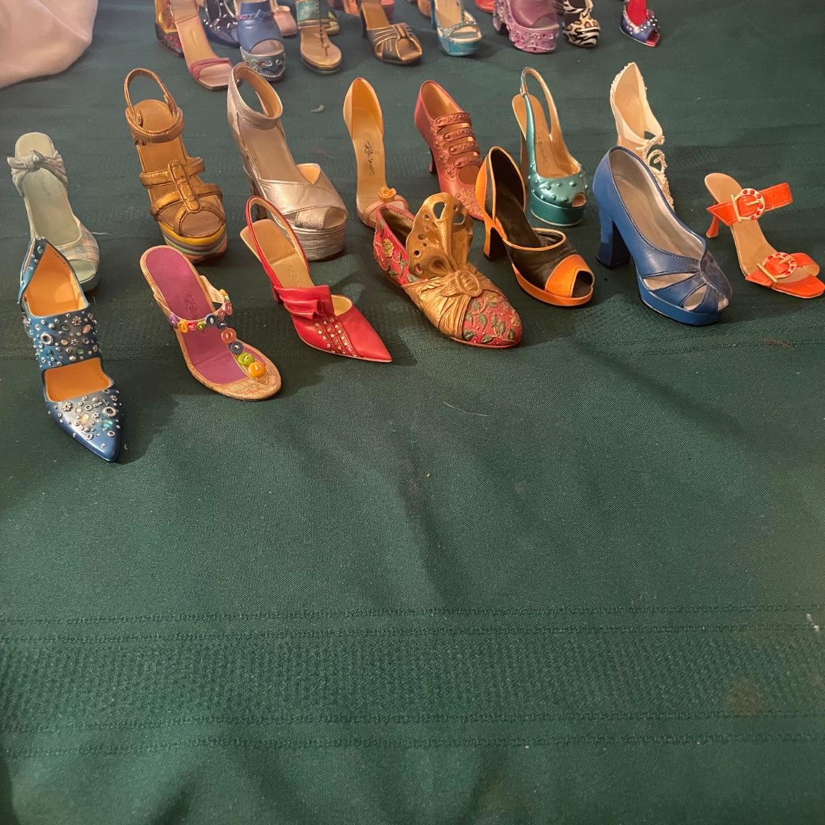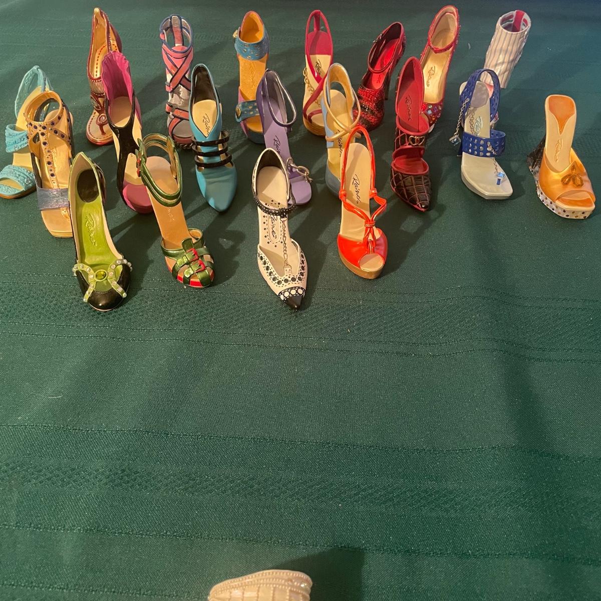 Over 600 collectible miniature shoes from the “˜Just the Right Shoe" collection that includes some rare and hard to find shoes such as three Breast Cancer shoes (Fresia, Sweet Pea & Delicate Daisies). In order to see the shoes more easily in the photos or in person, we have grouped them together with approx 75 in each grouping, but all of these are sold together in this one lot. This lot also includes a large number of original boxes but we were unable to match up with the corresponding shoes. Buy the lot and take the time to match up shoes and boxes and you will add some value! Note that the last two pictures of bags and boxes are all full of the mini shoe boxes.