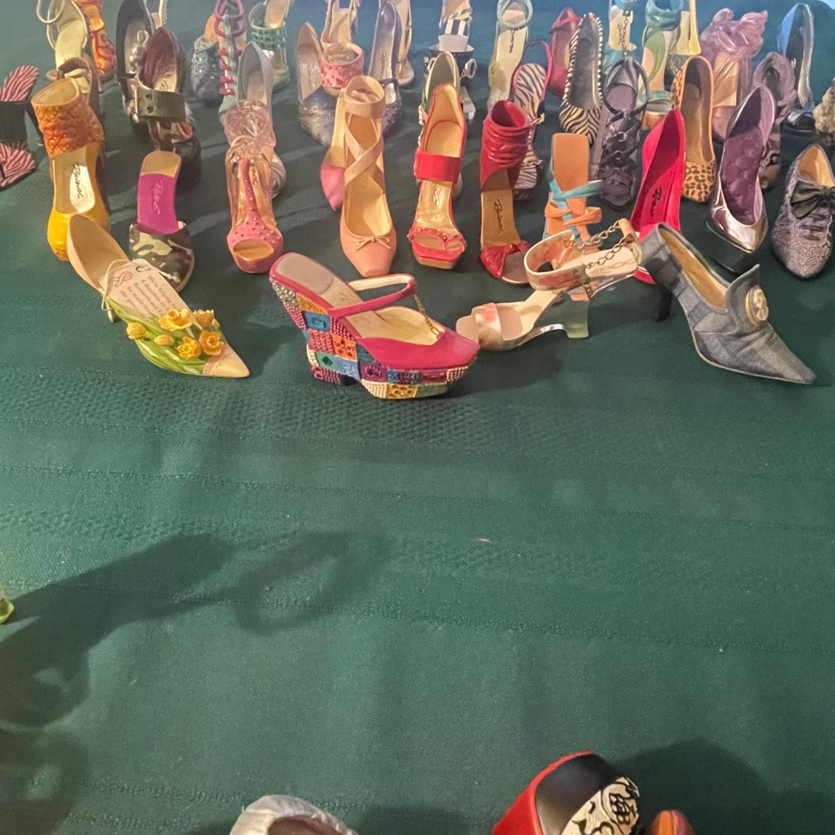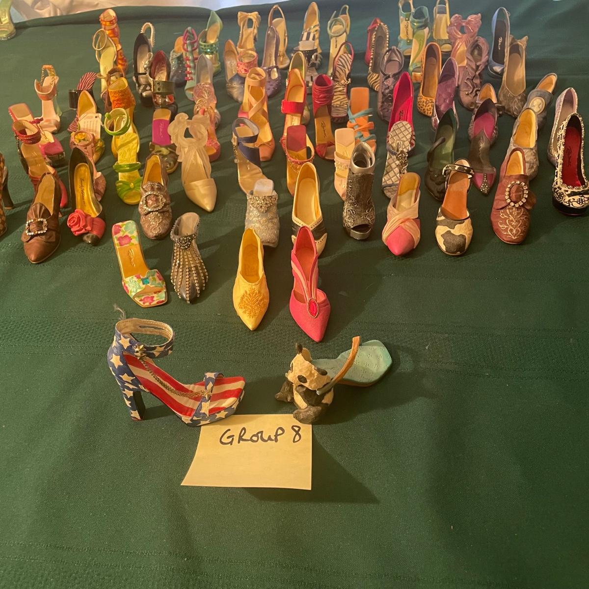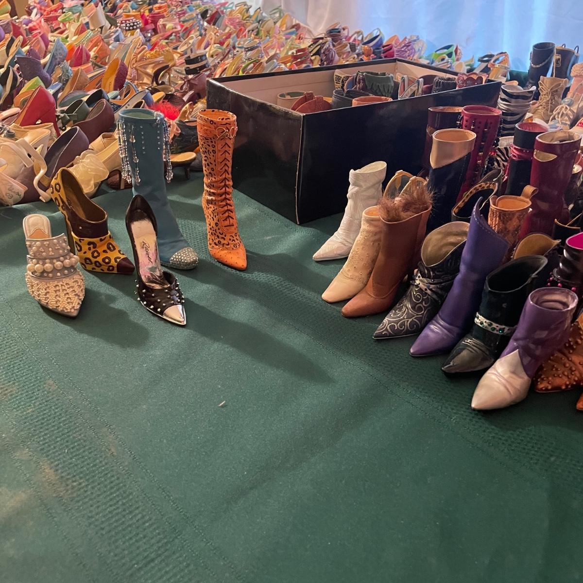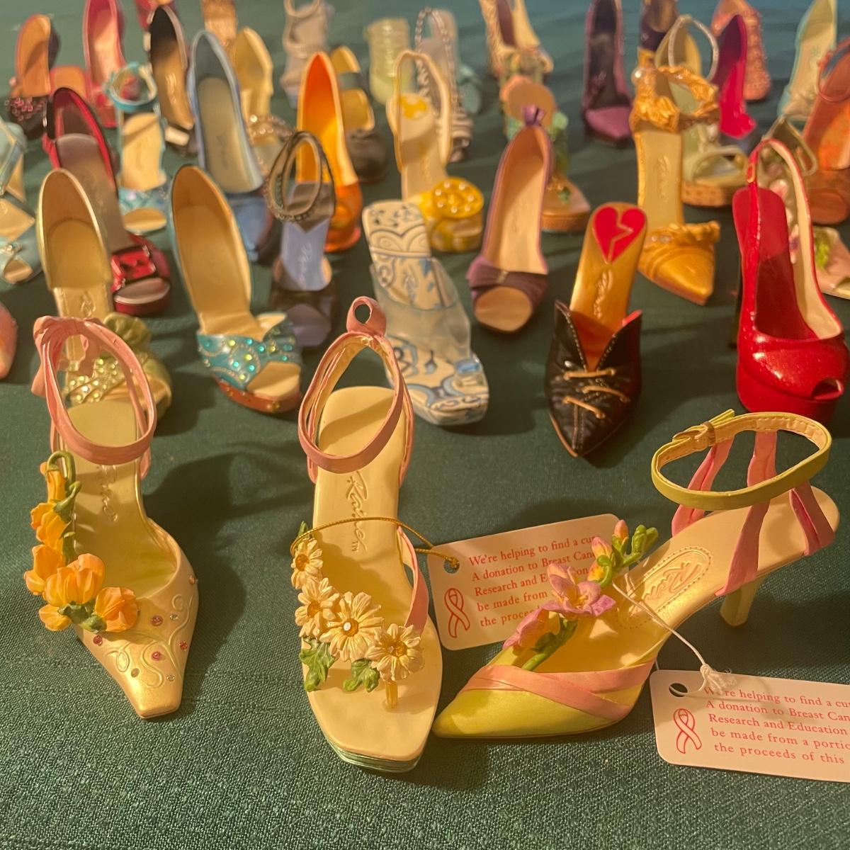 Over 600 collectible miniature shoes from the “˜Just the Right Shoe" collection that includes some rare and hard to find shoes such as three Breast Cancer shoes (Fresia, Sweet Pea & Delicate Daisies). In order to see the shoes more easily in the photos or in person, we have grouped them together with approx 75 in each grouping, but all of these are sold together in this one lot. This lot also includes a large number of original boxes but we were unable to match up with the corresponding shoes. Buy the lot and take the time to match up shoes and boxes and you will add some value! Note that the last two pictures of bags and boxes are all full of the mini shoe boxes.